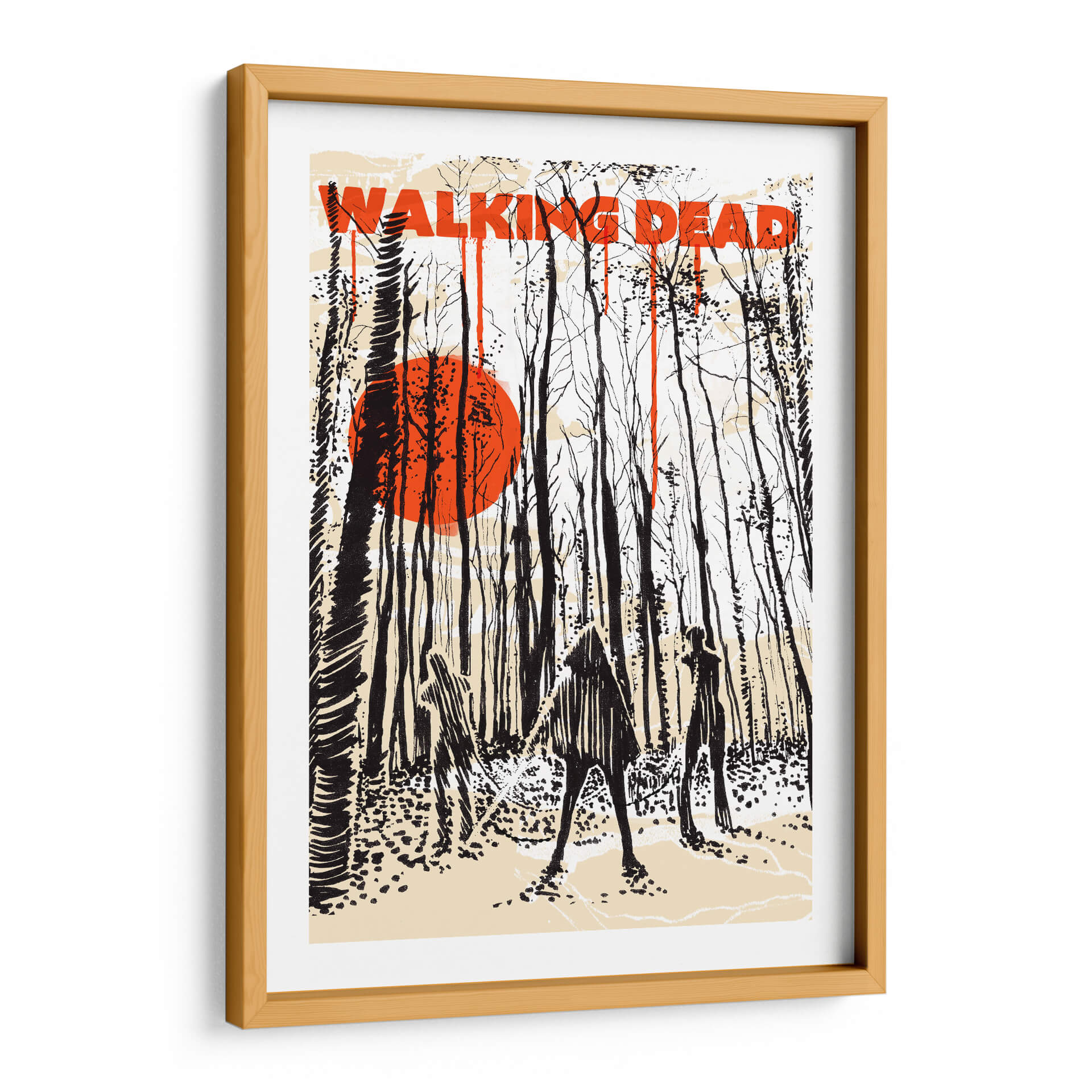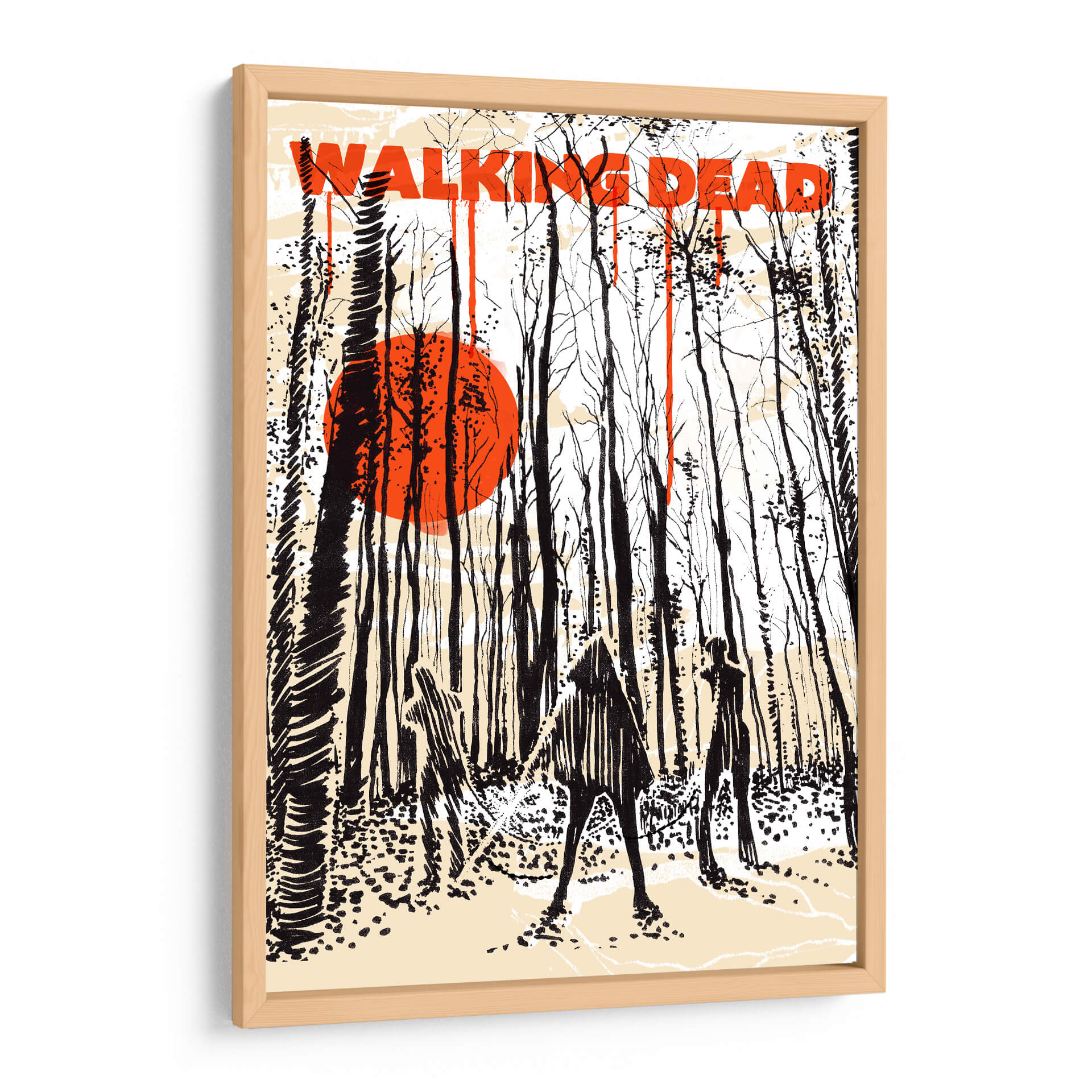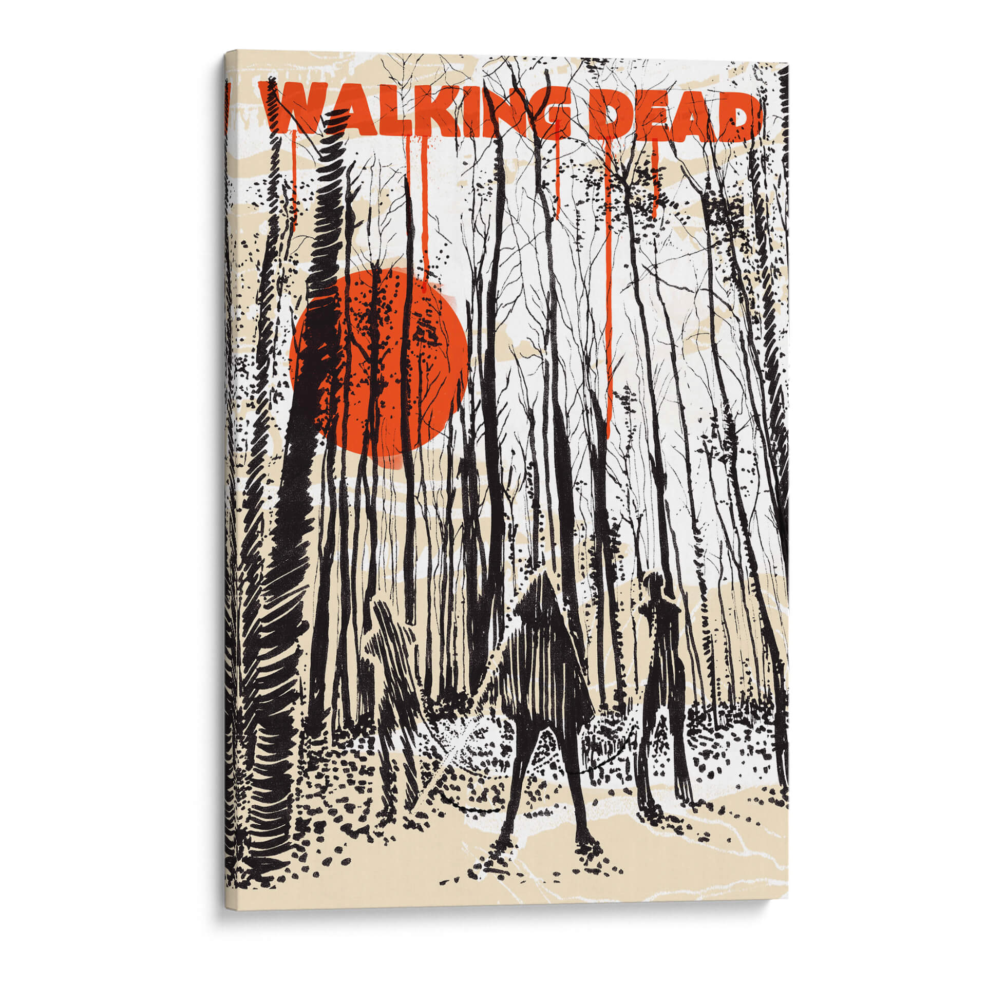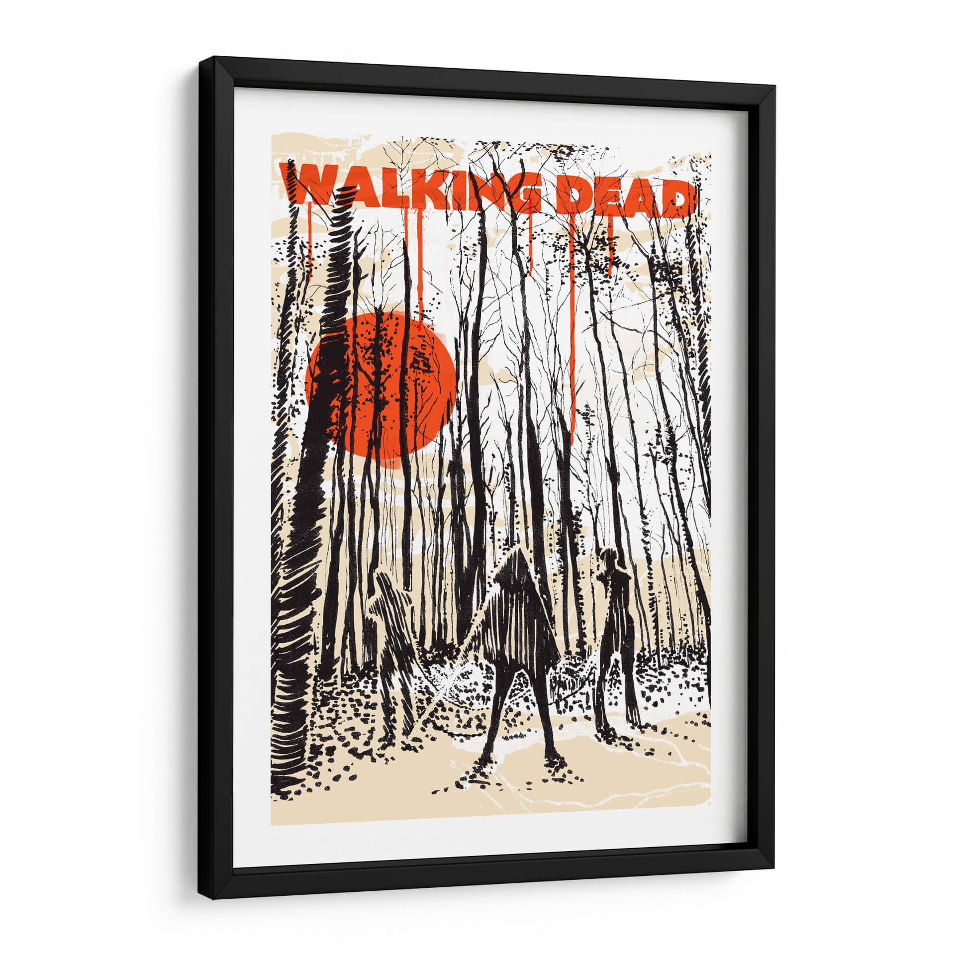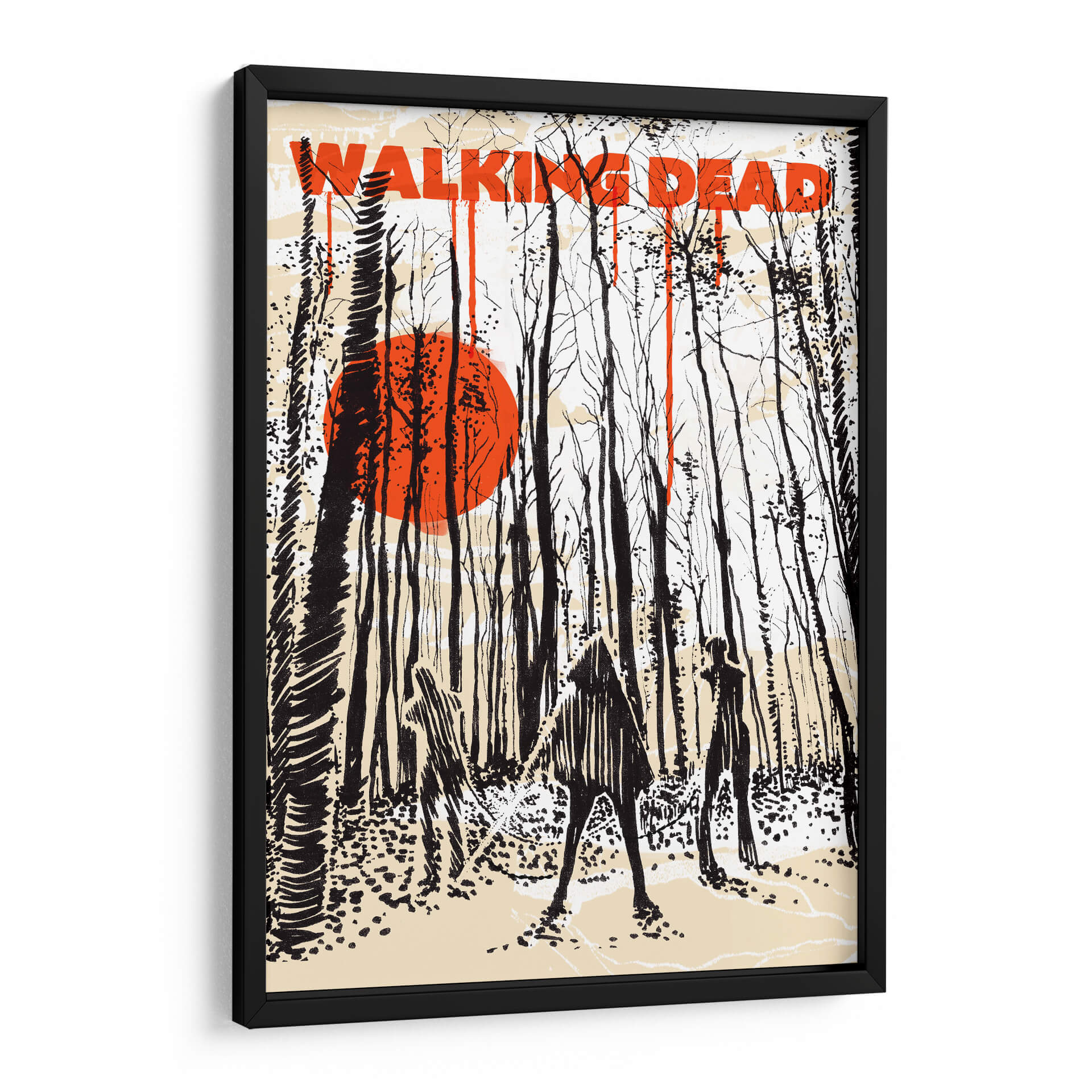 Sumérgete en la atmósfera post-apocalíptica con este impactante cuadro decorativo inspirado en 'The Walking Dead'. La obra presenta una escena inquietante en un bosque sombrío, dominado por siluetas oscuras de árboles de ramas desnudas y figuras solitarias que caminan. Un sol naranja vibrante irrumpe en el cielo, creando un contraste dramático con la paleta de colores apagados y el estilo gráfico distintivo. La técnica de ilustración, con trazos definidos y un uso audaz del blanco y negro junto con toques de naranja, evoca una sensación de suspense y supervivencia. Este cuadro decorativo es perfecto para los aficionados a la serie o para aquellos que buscan añadir un toque de misterio y fuerza a su decoración. Ideal para salones, estudios o cualquier espacio que requiera un punto focal audaz y narrativo. Transforma tu hogar en un santuario de estilo con esta pieza única que evoca la resiliencia en un mundo desolado, añadiendo carácter y conversación a tu ambiente.