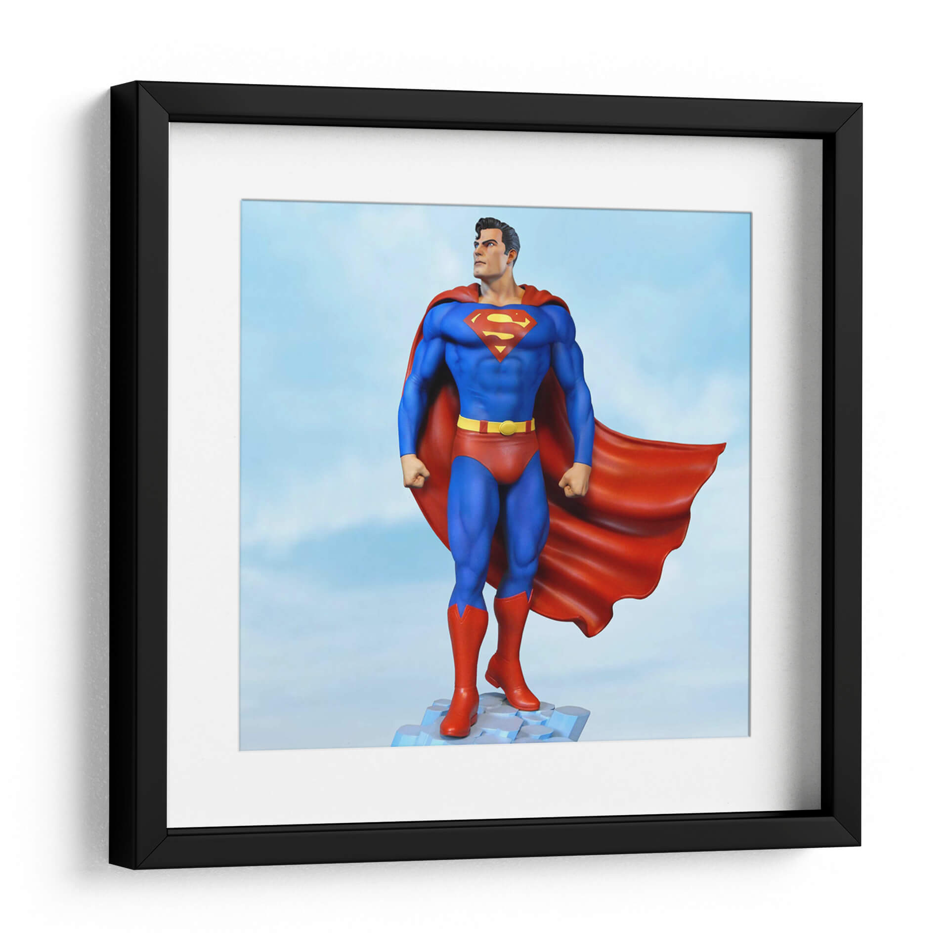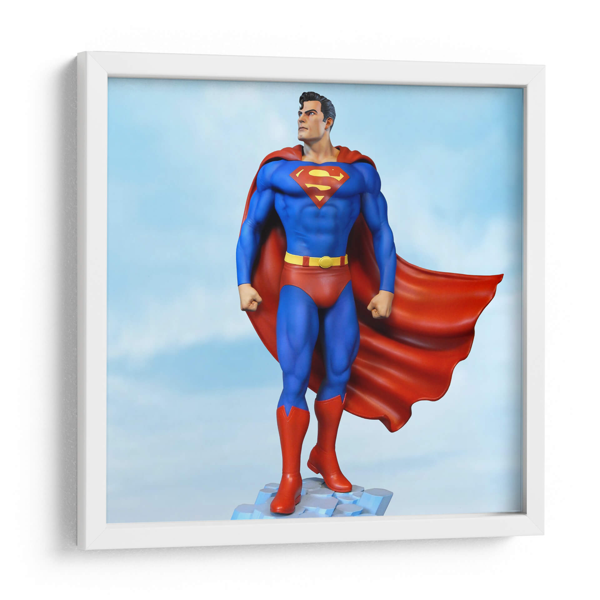 Transmite una fuerza icónica e inquebrantable con este cautivador cuadro decorativo que presenta al legendario Superman. La obra de arte captura al Hombre de Acero en una pose heroica y poderosa, con su distintivo traje azul y rojo, la capa ondeando dramáticamente detrás de él. El fondo de cielo azul, salpicado con nubes etéreas, realza la sensación de vuelo y grandeza. La paleta de colores vibrantes, dominada por los icónicos tonos rojo, azul y amarillo, evoca una sensación de esperanza, justicia y optimismo. La composición, centrada en la imponente figura del superhéroe, crea un punto focal dinámico que atrae la mirada. Este cuadro es una elección perfecta para cualquier aficionado a los cómics o para aquellos que buscan infundir sus espacios con energía positiva y un espíritu de resiliencia. Ideal para salas de estar, estudios u oficinas, este arte de pared añade un toque de inspiración y audacia, sirviendo como un recordatorio constante del poder del bien. Su estilo realista pero estilizado lo convierte en una adición impresionante a cualquier decoración moderna o temática.