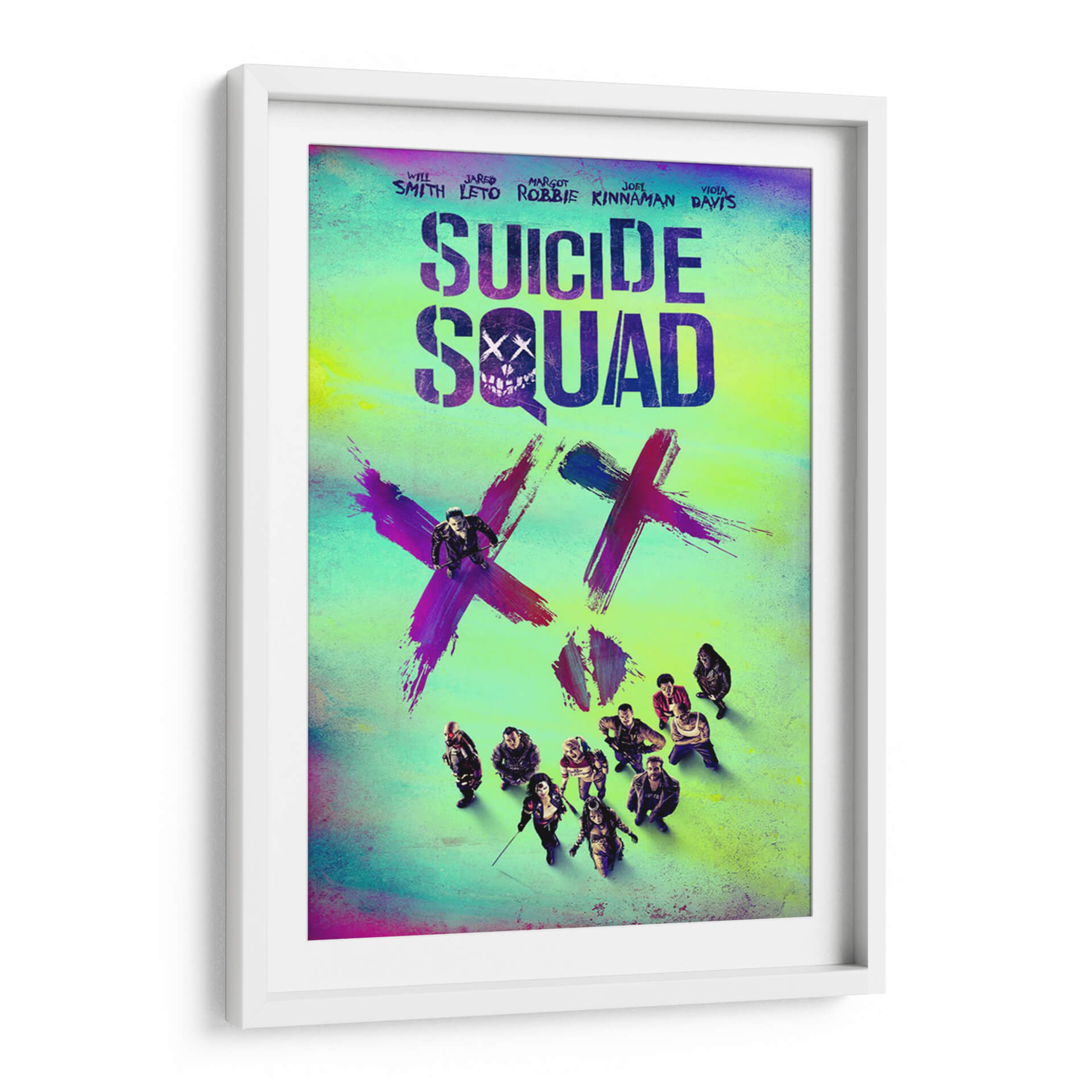 Transforma tu espacio con este llamativo cuadro decorativo inspirado en el universo de Suicide Squad. La obra presenta una vibrante paleta de colores que combina el verde azulado con toques intensos de morado y rosa, creando una atmósfera enérgica y audaz. Destacan las icónicas letras del título y la representación gráfica de "XX", un símbolo de rebeldía y carácter. Debajo, un grupo de personajes eclécticos se agrupa, cada uno con su propia personalidad, transmitiendo una sensación de unidad en la diversidad y un espíritu desafiante. La composición es dinámica y llena de acción, ideal para aquellos que buscan añadir un toque de originalidad y fuerza a su decoración. Este cuadro decorativo es perfecto para salones modernos, salas de juegos o cualquier rincón que necesite un acento de color y carácter. Añade un toque de cultura pop y audacia a tu hogar con esta pieza única que captura la esencia de la anti-heroicidad y la camaradería inesperada.