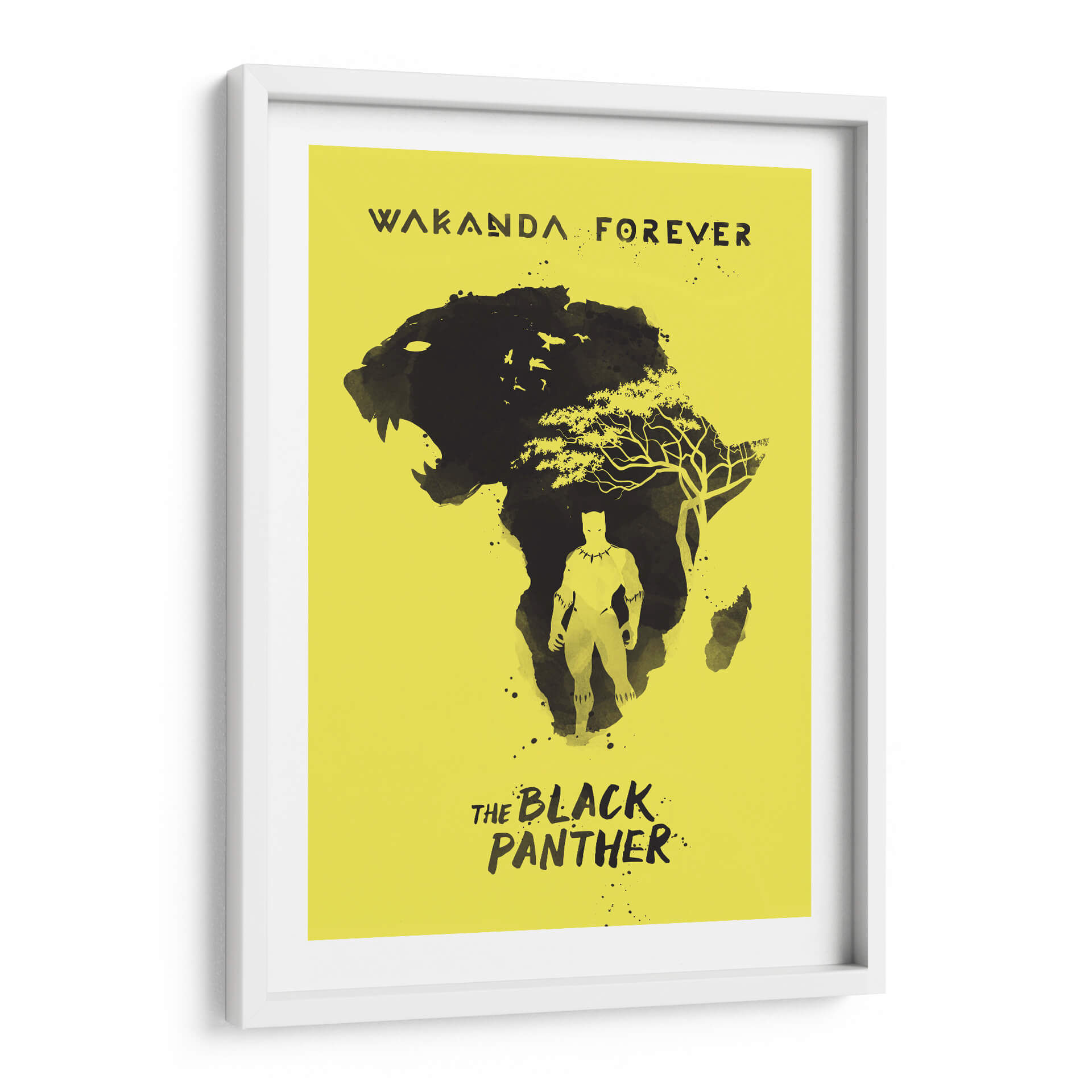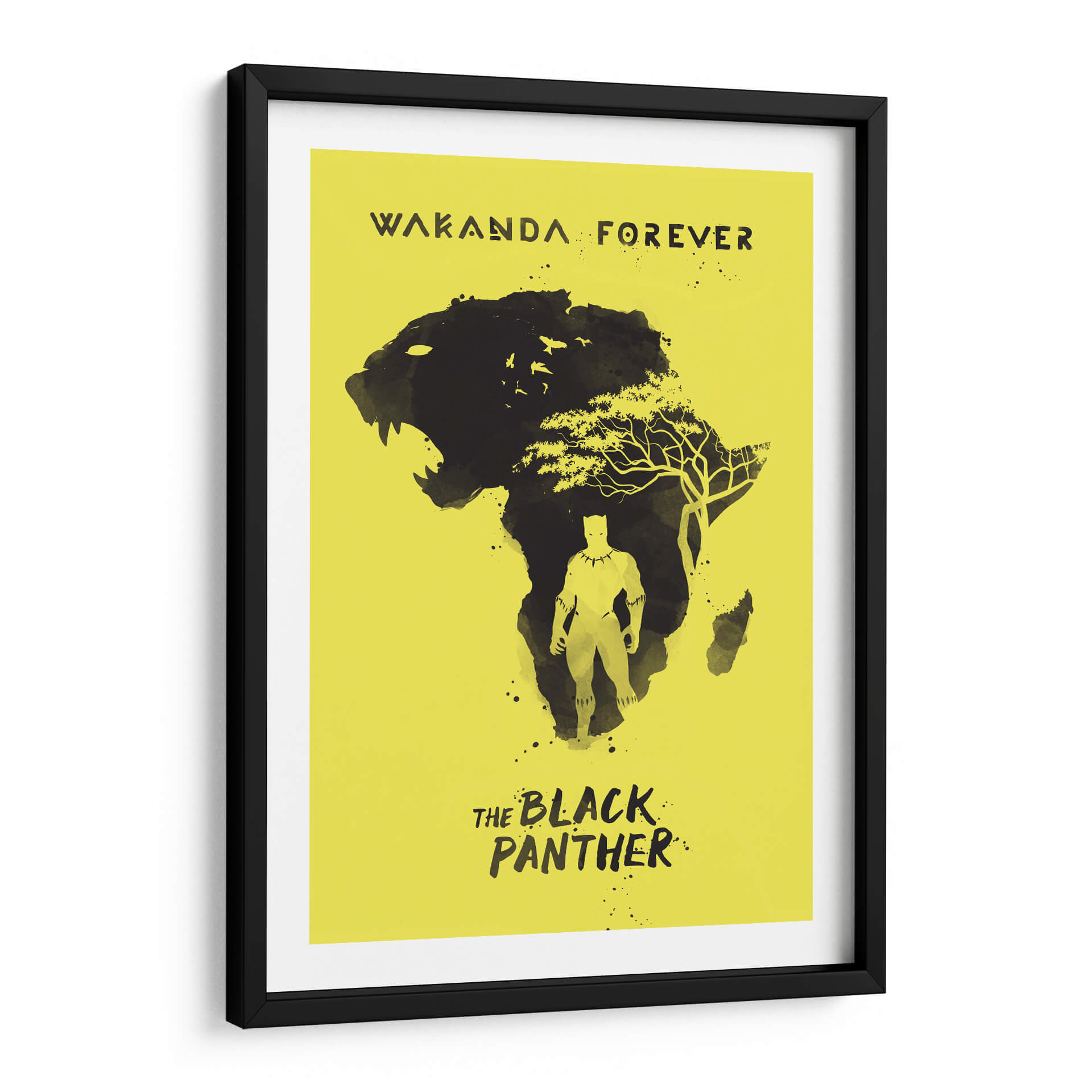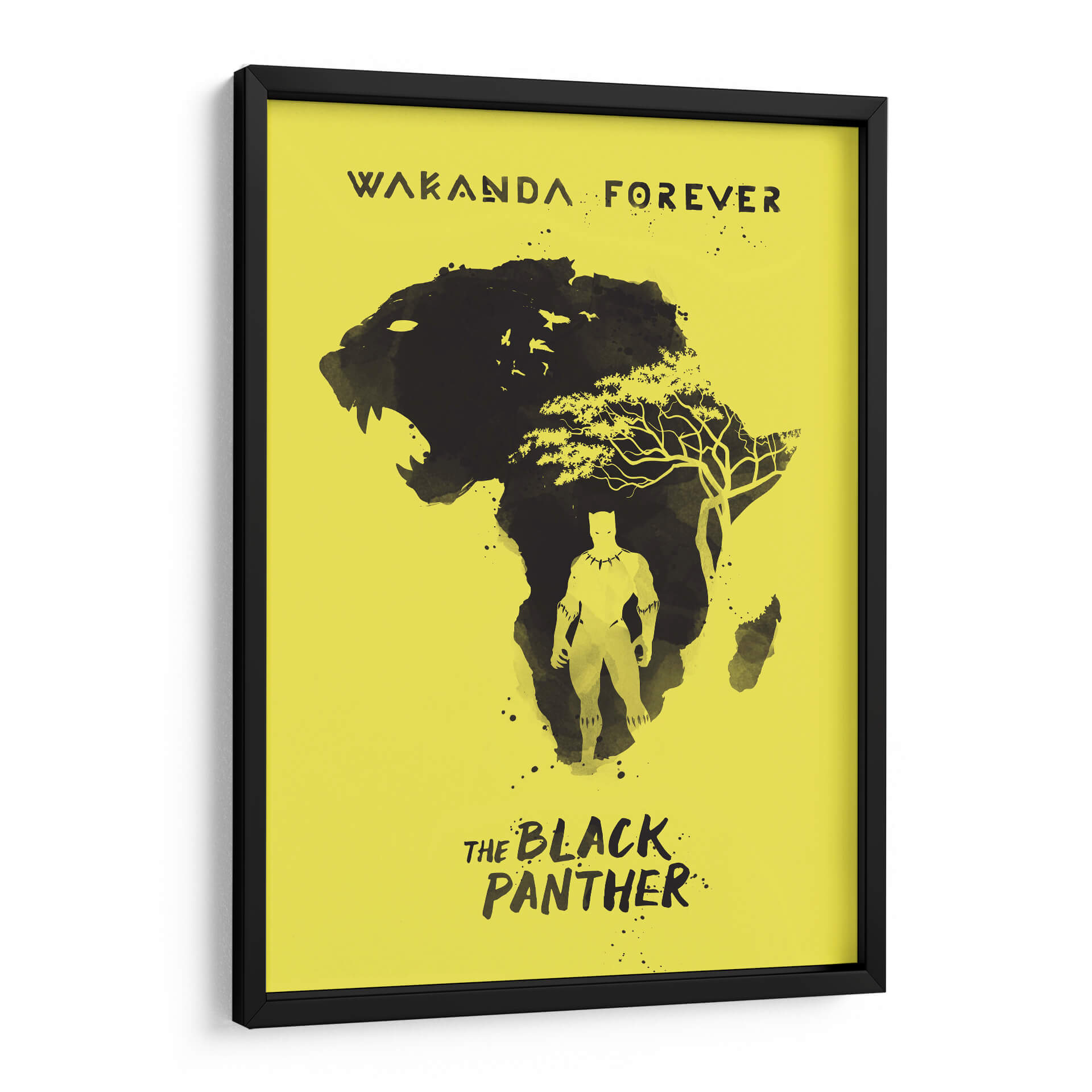 Sumérgete en el poder y la elegancia con este impresionante cuadro decorativo que rinde homenaje a 'Wakanda Forever' y al icónico Black Panther. La obra presenta una audaz silueta de África en negro intenso, superpuesta con la figura estilizada del superhéroe en un tono ocre vibrante. Dentro de la silueta africana, emerge un árbol de ramas intrincadas, sugiriendo la riqueza y la complejidad del continente. La composición, con su paleta de colores limitada a amarillo brillante, negro profundo y toques sutiles de gris, crea un contraste impactante y una atmósfera de fuerza y misterio. La tipografía manuscrita, tanto en 'Wakanda Forever' como en 'The Black Panther', añade un toque personal y enérgico. Este cuadro decorativo es perfecto para aquellos que buscan infundir sus espacios con un sentido de empoderamiento, herencia y cultura. Ideal como pieza central en una sala de estar moderna, una oficina inspiradora o un dormitorio temático, este arte de pared es una declaración de estilo y admiración. Su diseño minimalista pero potente lo convierte en un punto focal que atrae la mirada y fomenta la conversación, celebrando la resiliencia y el legado.