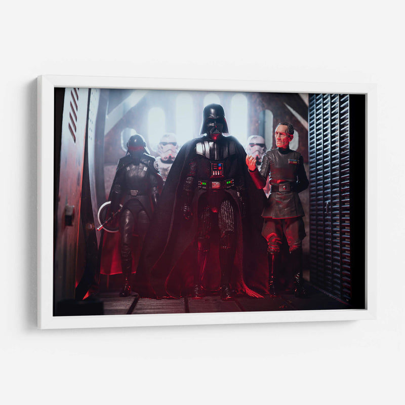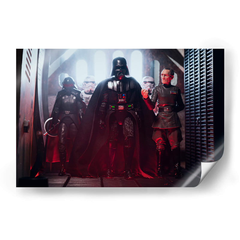 Sumérgete en la icónica saga de Star Wars con este impactante cuadro decorativo de Darth Vader, presentado por Action Geek. Esta obra captura la imponente presencia del Lord Sith, rodeado por sus leales soldados, en una escena cargada de atmósfera y poder. Los intensos tonos rojos y las sombras profundas crean un ambiente de misterio y autoridad, perfecto para añadir un toque de dramatismo a cualquier espacio. La composición, centrada en la figura icónica de Vader, atrae la mirada y evoca la fuerza imparable del Lado Oscuro. Ideal para los entusiastas de la ciencia ficción y los coleccionistas, este cuadro es una pieza de conversación que transformará tu hogar u oficina en un santuario galáctico. Añade esta representación artística de uno de los villanos más legendarios del cine a tu colección y deja que su presencia domine tu decoración.