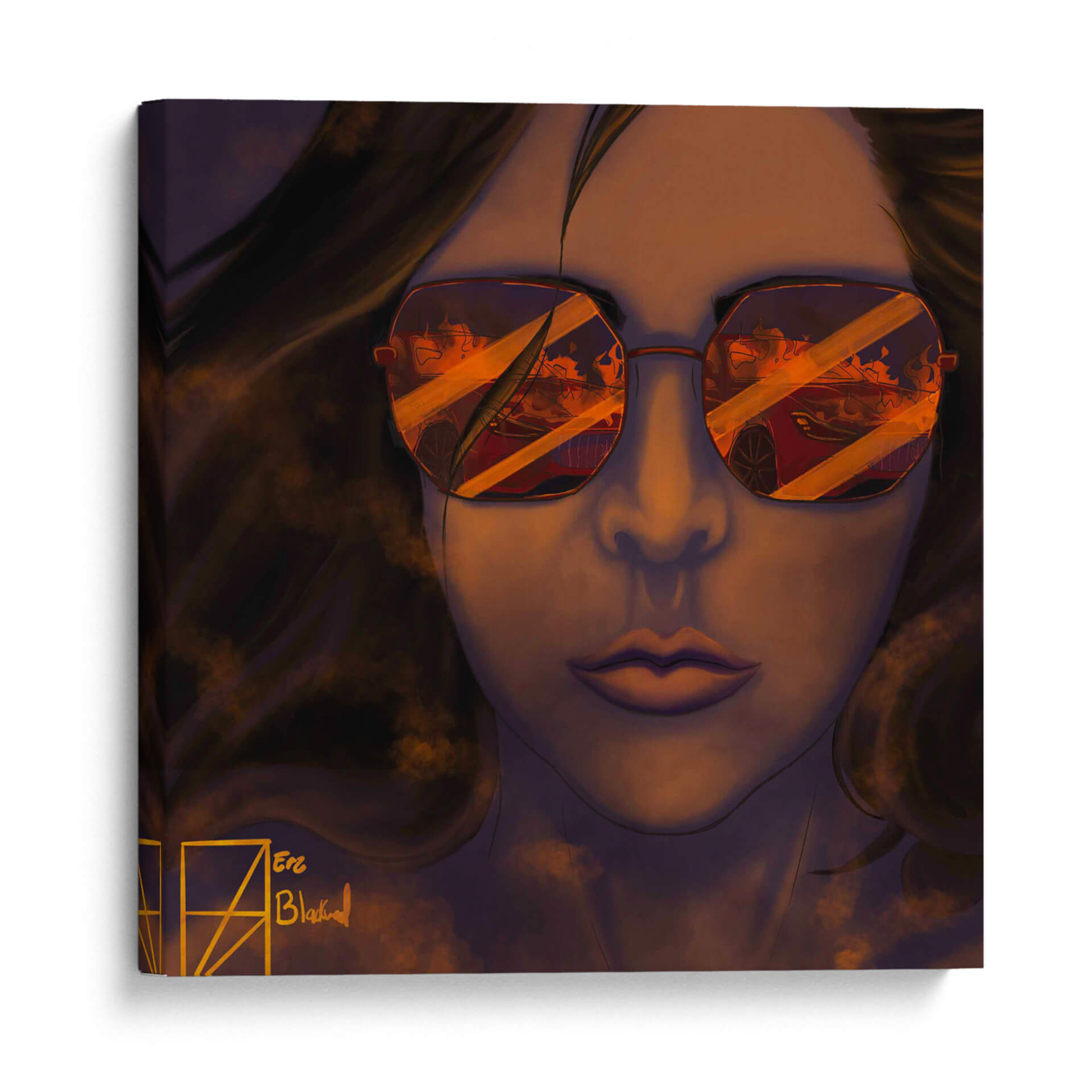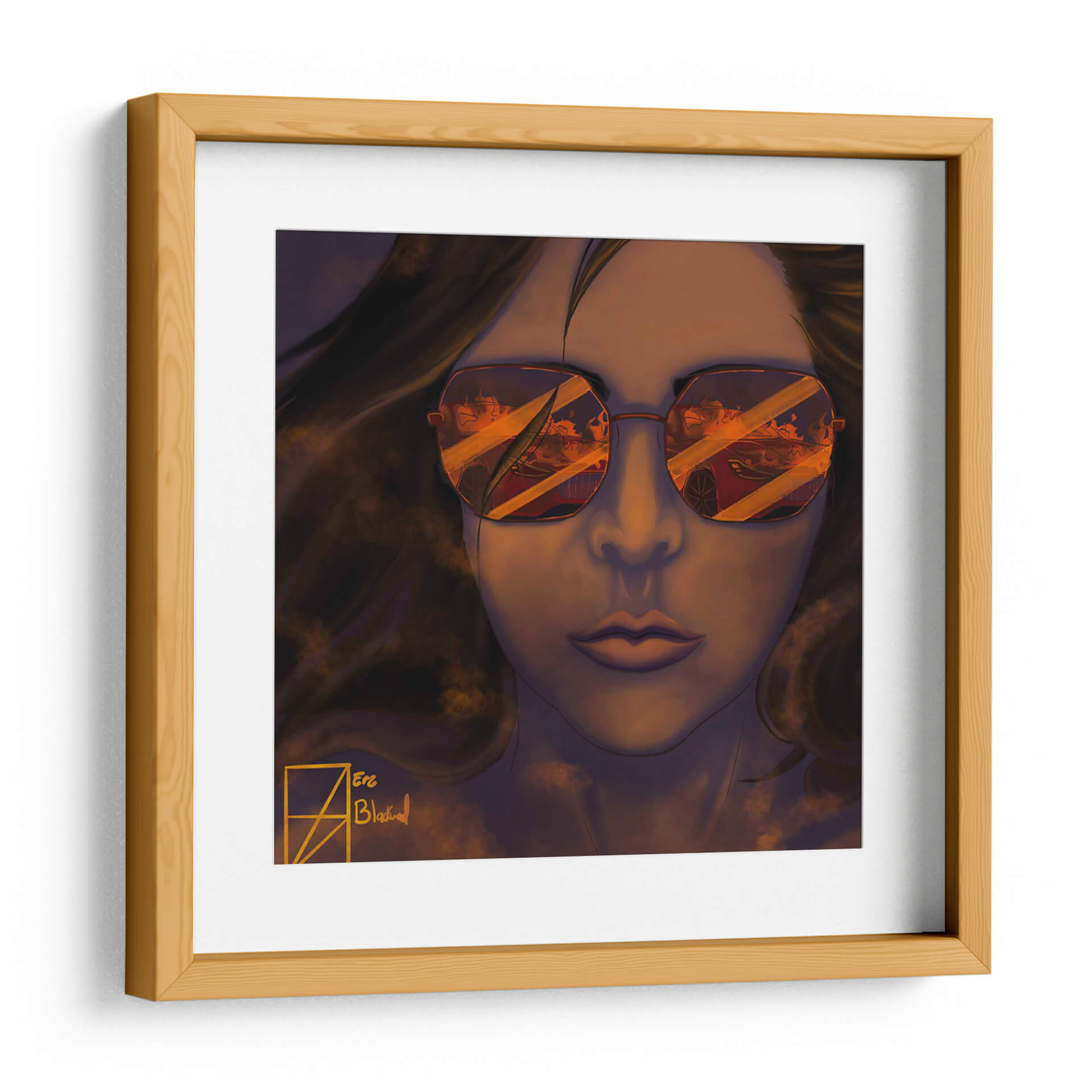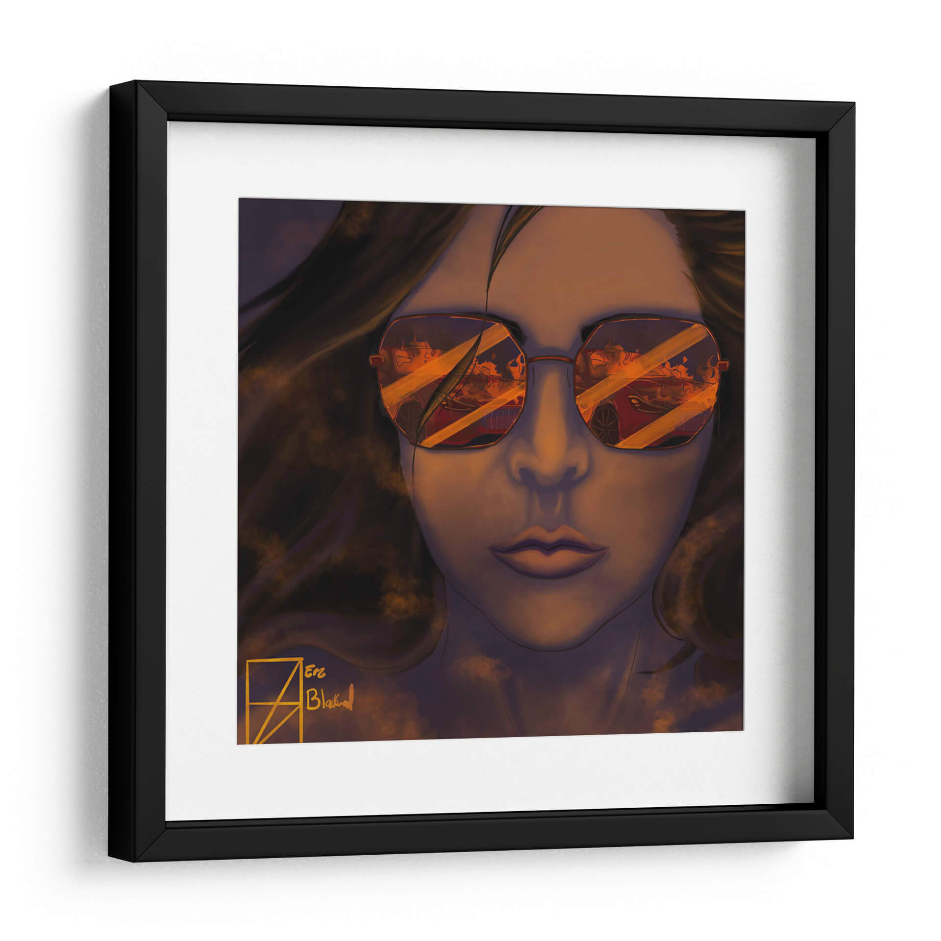 Sumérgete en la intensidad y el misterio con "El Fuego de Quynh", una obra de arte contemporáneo del artista Erz Blackwood. Este cautivador cuadro decorativo presenta un primer plano evocador de un rostro, enmarcado por una paleta de colores cálidos y profundos que oscilan entre naranjas ardientes, dorados intensos y morados sombríos. Las gafas de sol reflejan un paisaje fiery, sugiriendo una dualidad entre la calma exterior y la pasión interior, o quizás el reflejo de un mundo vibrante y en movimiento. La técnica digital, con sus líneas definidas y su atmósfera enigmática, crea una pieza de arte moderno que actúa como un poderoso punto focal. Ideal para añadir un toque de audacia y sofisticación a salas de estar modernas, estudios o espacios de trabajo que buscan inspiración y carácter. "El Fuego de Quynh" no es solo una decoración; es una declaración de estilo, un portal a la imaginación que invita a la reflexión y al diálogo. Transforma tu hogar u oficina con esta pieza única que combina la fuerza de la figura humana con un tratamiento artístico audaz y contemporáneo, capturando la esencia de la mirada a través de un prisma de fuego y sombra. Un cuadro que enciende conversaciones y añade profundidad a cualquier ambiente.