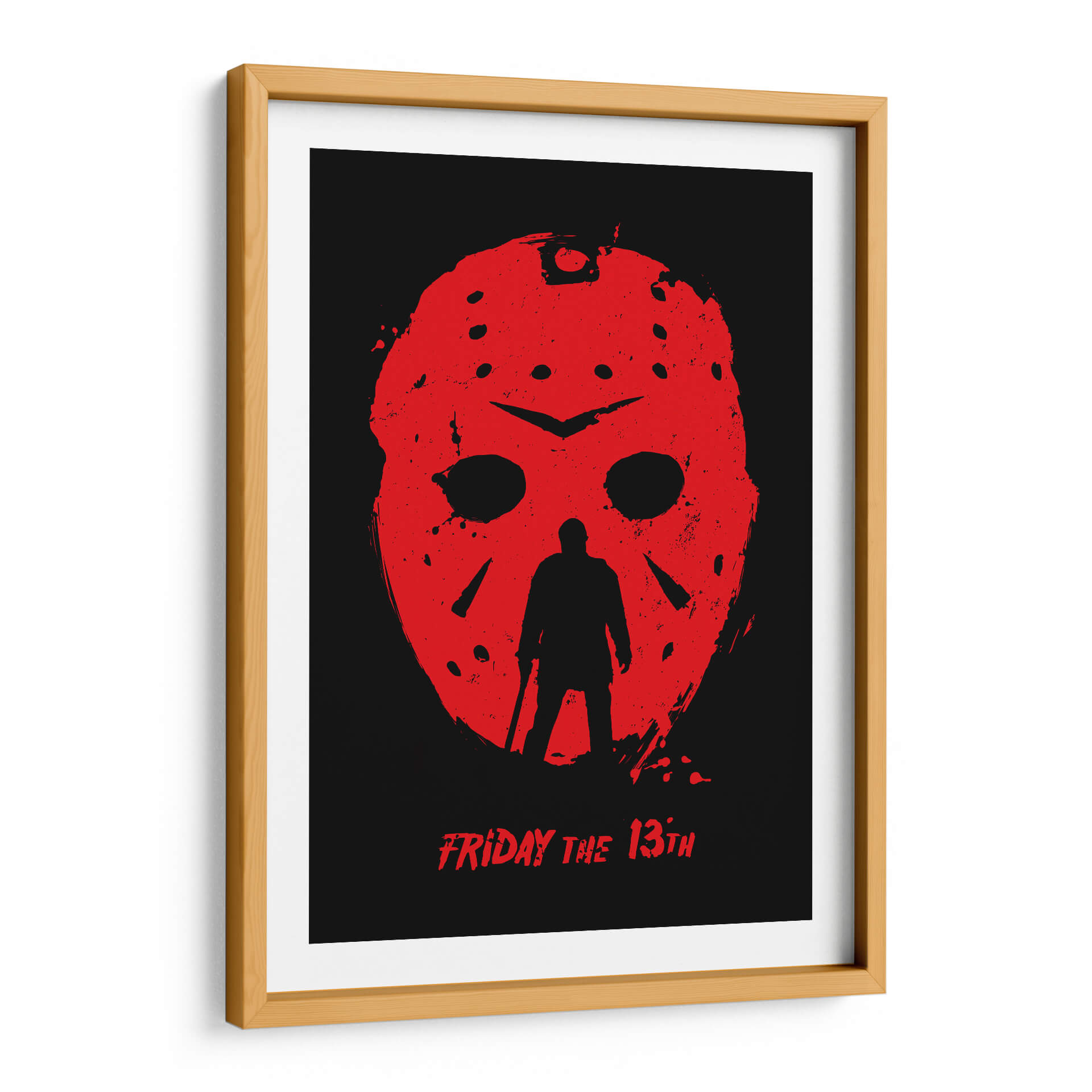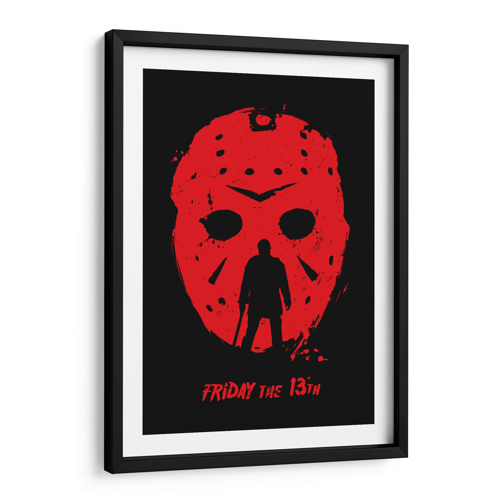 Sumérgete en el universo del terror icónico con este impactante cuadro decorativo inspirado en "Friday the 13th". La obra presenta una silueta audaz y estilizada de la icónica máscara de hockey en un vibrante tono rojo sangre, contrastando dramáticamente con un fondo negro profundo. En el centro, la figura sombría de un personaje, arma en mano, evoca suspense y la tensión característica de la franquicia. Los detalles salpicados y el trazo rústico de la máscara añaden una textura visual que refuerza la atmósfera inquietante y la crudeza del estilo. Este cuadro decorativo es perfecto para los amantes del cine de terror y aquellos que buscan añadir un toque de misterio y audacia a su decoración. Ideal para salones, salas de cine en casa, o incluso como una pieza de conversación intrigante en un espacio de ocio. Su diseño minimalista pero poderoso lo convierte en una adición memorable a cualquier colección de arte moderno que celebre la cultura pop y los iconos del cine. Una forma gráfica y potente de expresar tu pasión por el género de terror.