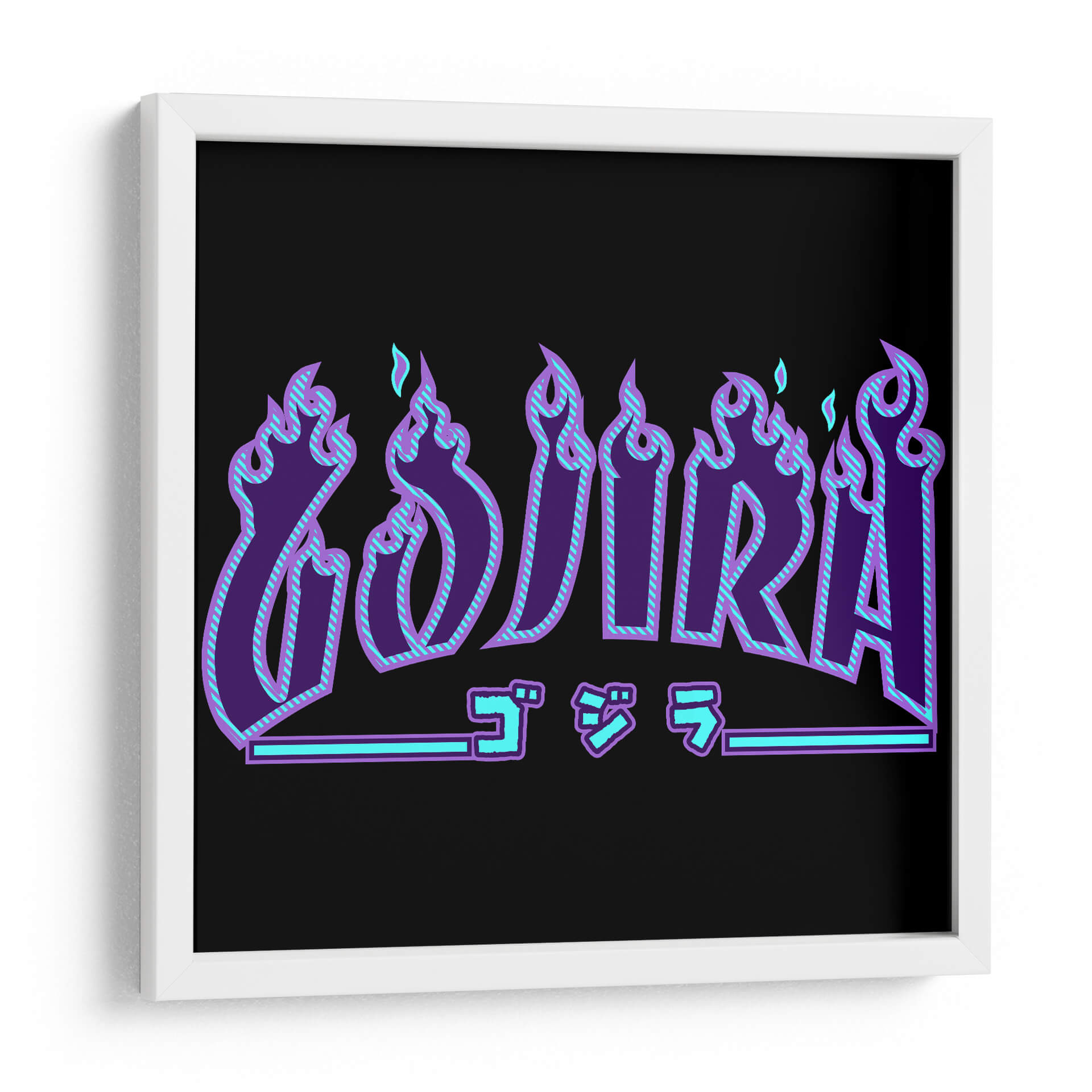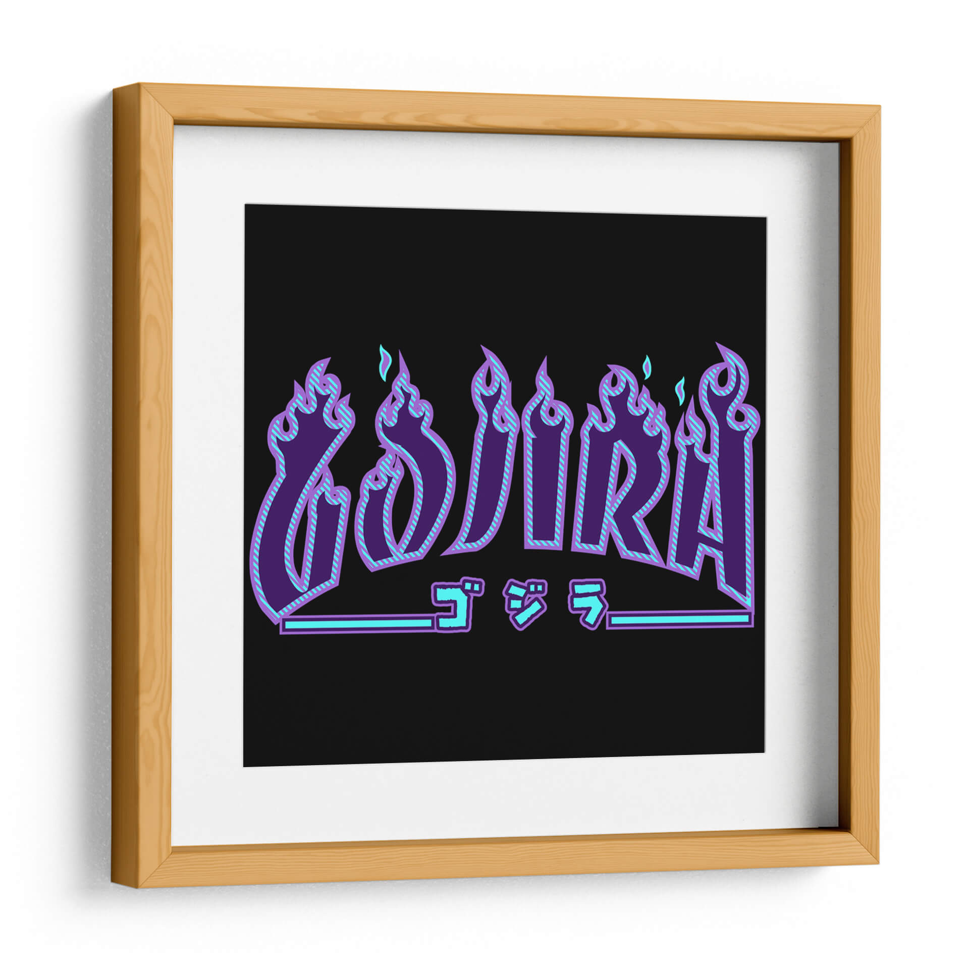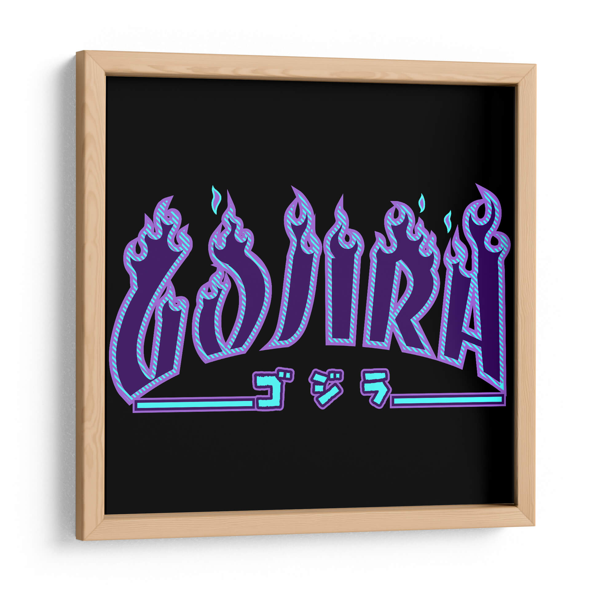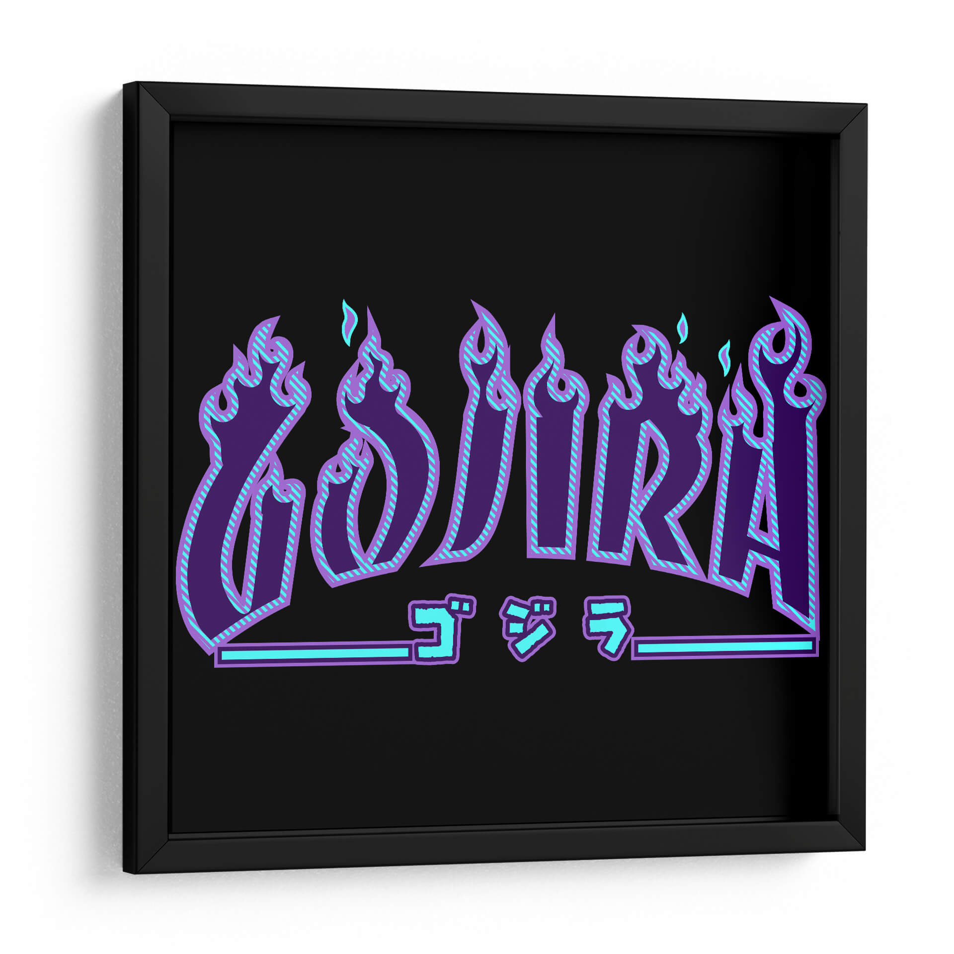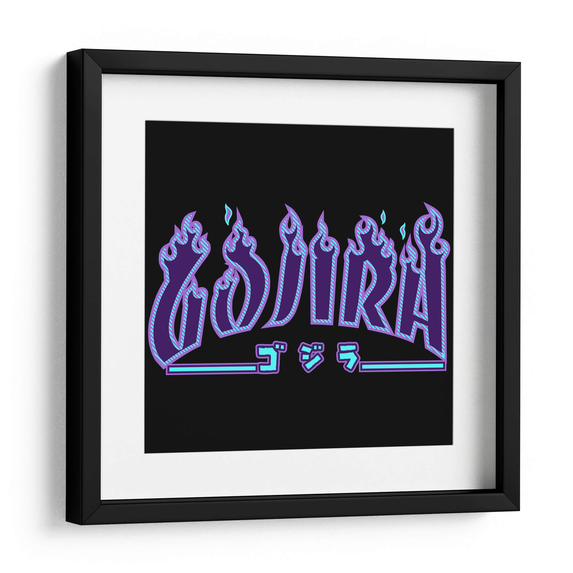 Este impactante cuadro decorativo 'Godzilla' del artista Roge I. Luis es una explosión visual de energía y estilo neón que capturará la atención de cualquier observador. La obra presenta el icónico nombre 'Godzilla' estilizado con llamas vibrantes en tonos púrpuras y turquesas, contrastando audazmente sobre un fondo negro profundo. Las líneas nítidas y el diseño inspirado en la estética retro de los videojuegos y la cultura pop crean una atmósfera de poder y modernidad. Debajo del texto principal, se encuentra una representación en japonés del mismo nombre, añadiendo un toque de autenticidad y misticismo oriental. La combinación de colores neón evoca una sensación de intriga y potencia, perfecta para espacios que buscan un toque vanguardista y lleno de carácter. Este cuadro decorativo es ideal para salones modernos, oficinas de diseño, salas de juego o cualquier habitación donde se desee introducir un elemento de arte urbano y contemporáneo con una fuerte dosis de personalidad. Su diseño llamativo lo convierte en un punto focal, mientras que la referencia cultural universal añade una capa de significado para los aficionados. Un lienzo que no solo decora, sino que también declara.