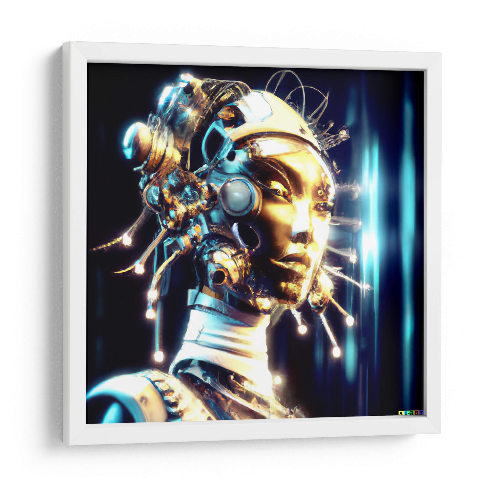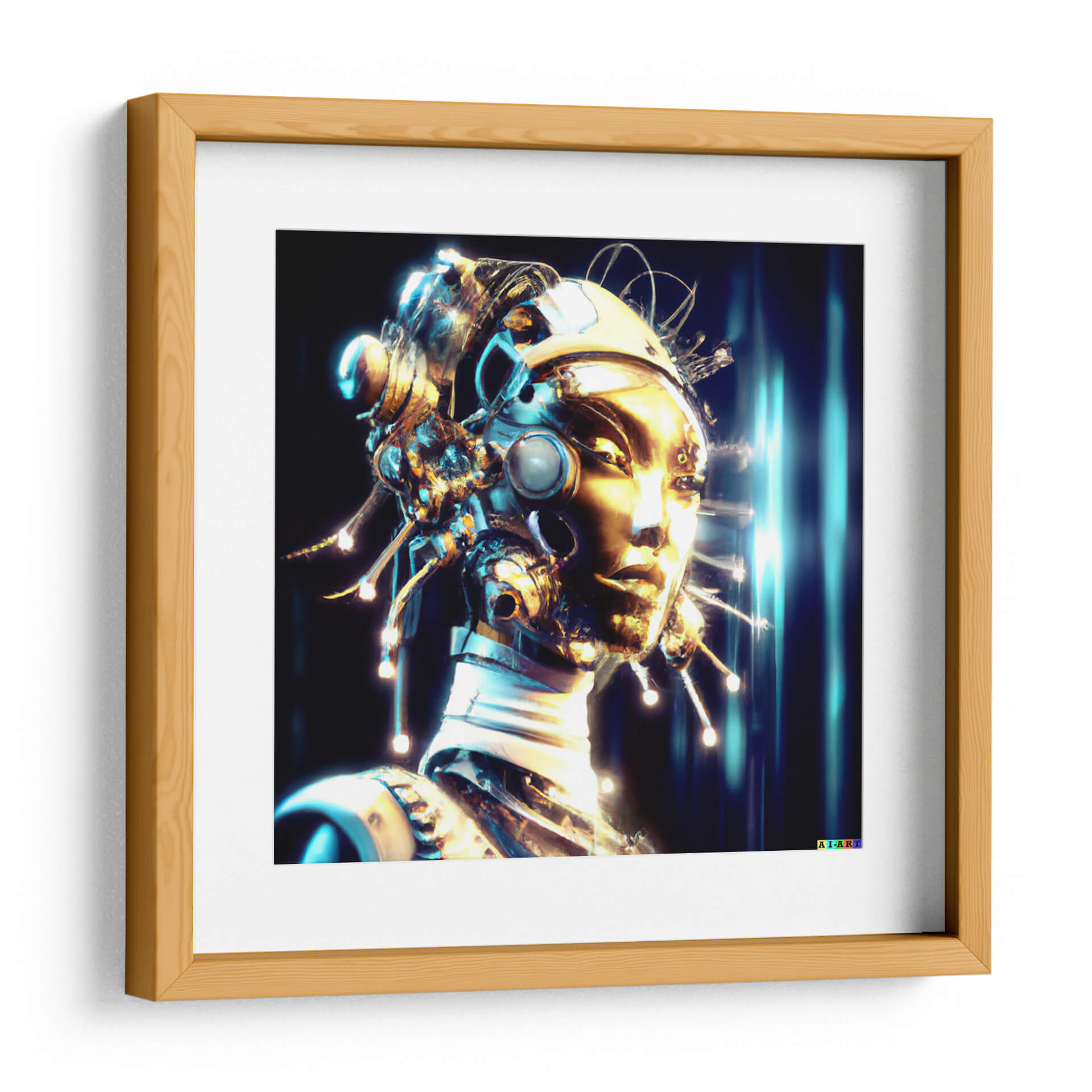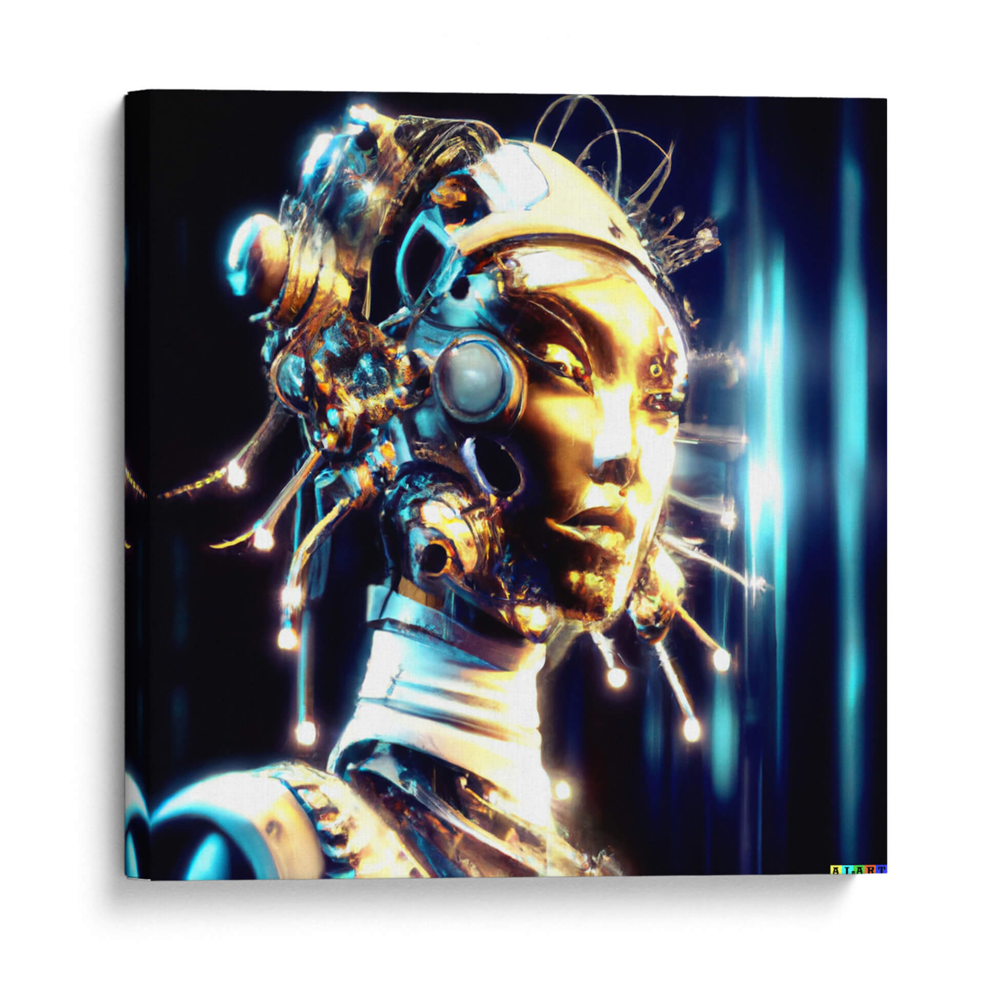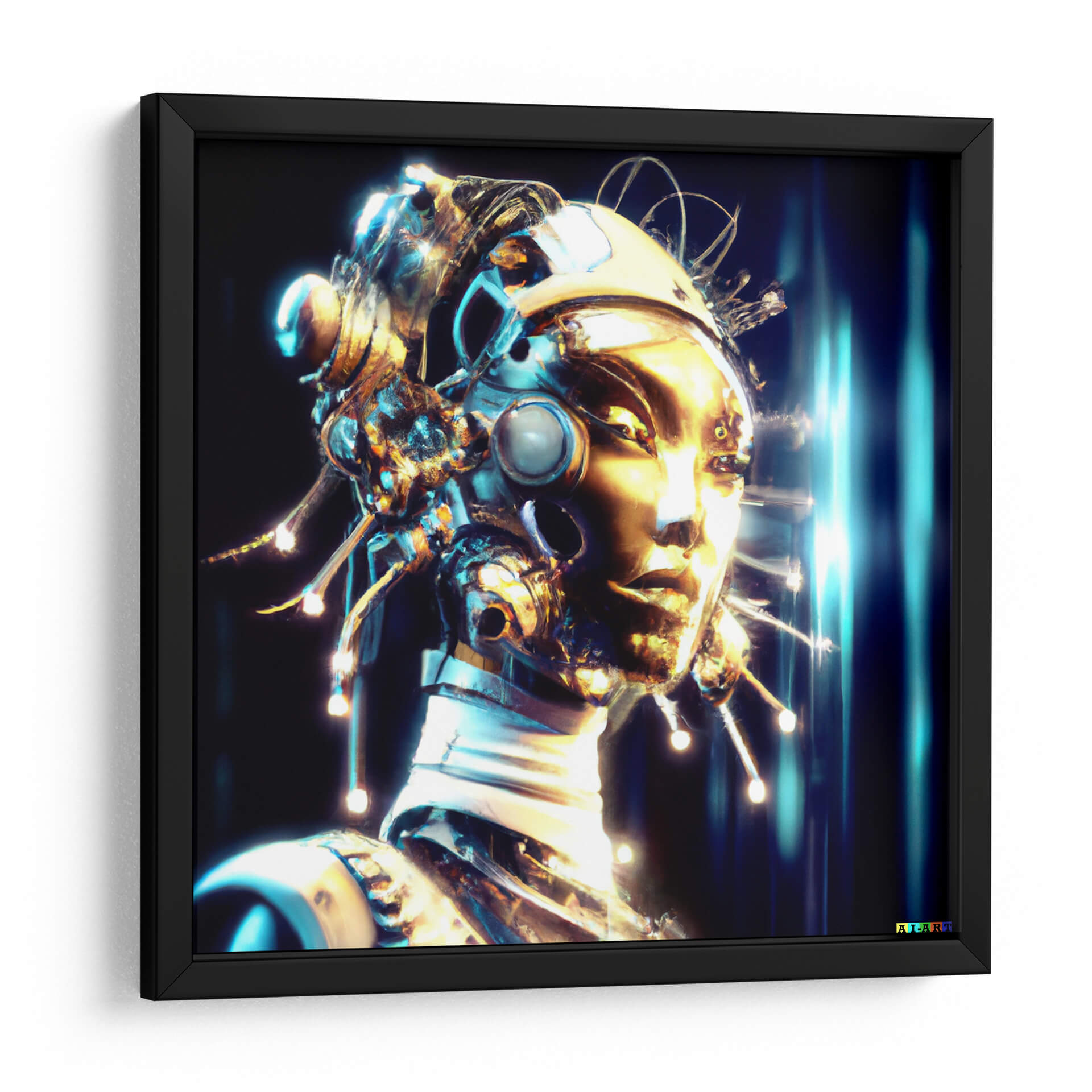 Sumérgete en el fascinante universo de 'Moovianthan Kayphik', una obra de arte digital que redefine la estética futurista. Este cuadro decorativo presenta un retrato enigmático de una figura cibernética, donde la delicadeza de un rostro humano se fusiona con la complejidad de la tecnología. Los tonos dorados y metálicos se entrelazan con vibrantes azules eléctricos y negros profundos, creando una atmósfera de misterio y sofisticación. Las luces de neón, difuminadas y etéreas, añaden un toque de dinamismo y ciencia ficción a la composición, capturando la imaginación y la curiosidad. El estilo abstracto-futurista de la pieza, con sus intrincados detalles mecánicos y la expresividad del rostro, la convierte en un punto focal ideal para espacios modernos y vanguardistas. Perfecta para salas de estar, estudios u oficinas que buscan una declaración de diseño audaz y contemporánea. 'Moovianthan Kayphik' no es solo una decoración; es una invitación a explorar los límites entre lo orgánico y lo artificial, el pasado y el futuro, generando conversación y admiración en cualquier entorno. Añade un toque de arte de vanguardia a tu hogar u oficina con esta pieza única.
