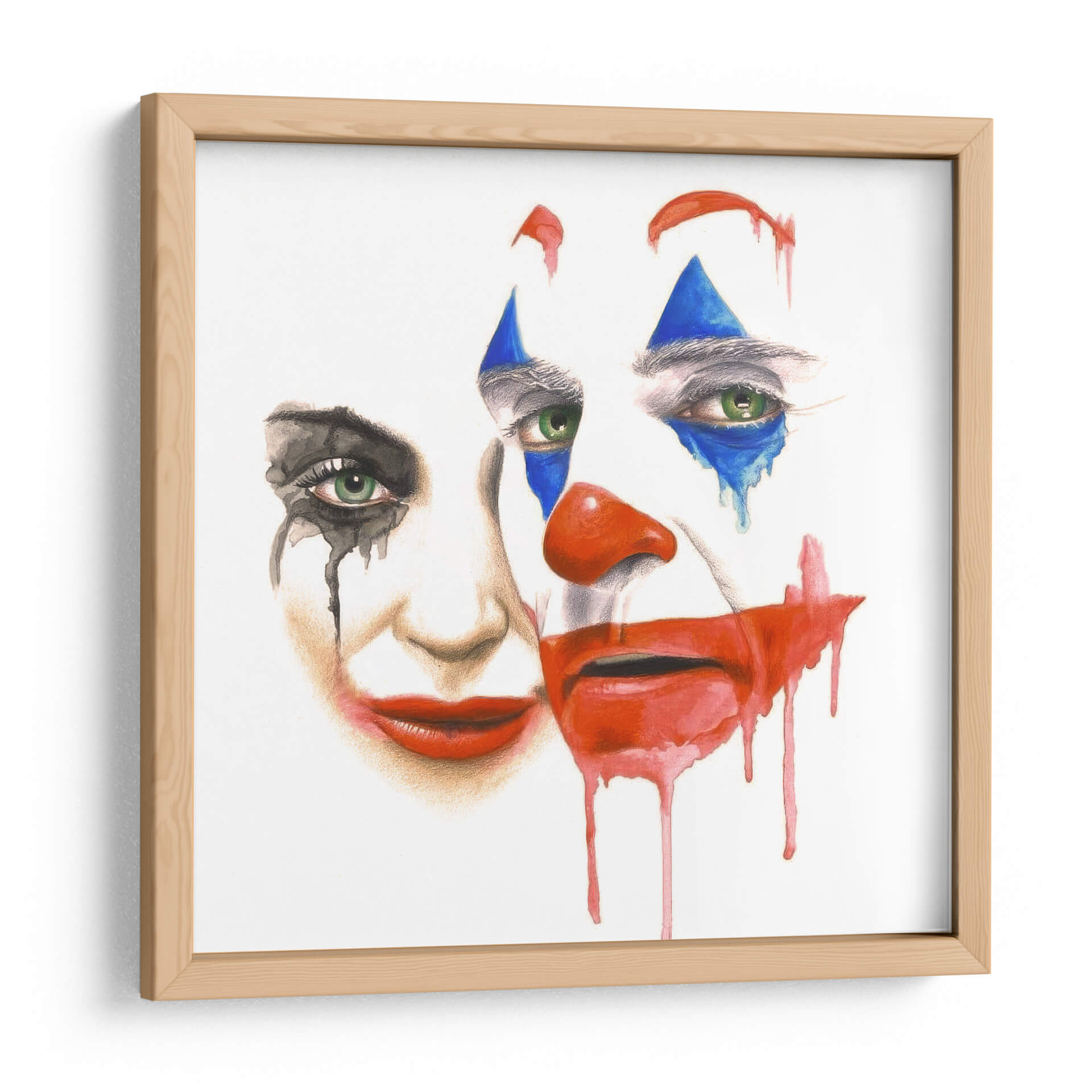 Sumérgete en el enigmático mundo del arte con este cautivador cuadro decorativo titulado 'Payasos', obra del artista Paltik Arte Digital. Esta pieza evoca una profunda dualidad, fusionando la vulnerabilidad de un rostro humano con la icónica y a menudo melancólica representación del payaso. Los intensos ojos verdes, que contrastan con la pintura de payaso que gotea en tonos rojos y azules, transmiten una compleja gama de emociones, desde la alegría forzada hasta la tristeza subyacente. La composición, centrada en los rostros entrelazados, crea un punto focal dramático, ideal para salas de estar modernas, estudios creativos u oficinas que buscan un toque de introspección y originalidad. Los vibrantes rojos de los labios y la nariz del payaso, junto con los penetrantes azules y el negro de los ojos maquillados, forman una paleta de colores audaz que no pasará desapercibida. Este cuadro decorativo no es solo una adición estética, sino una invitación a la reflexión sobre las máscaras que llevamos y las emociones que ocultamos. Añade profundidad y carácter a tu espacio con esta obra de arte contemporánea que dialoga con la complejidad de la condición humana. Una pieza única para coleccionistas y amantes del arte que aprecian la expresión artística audaz.
