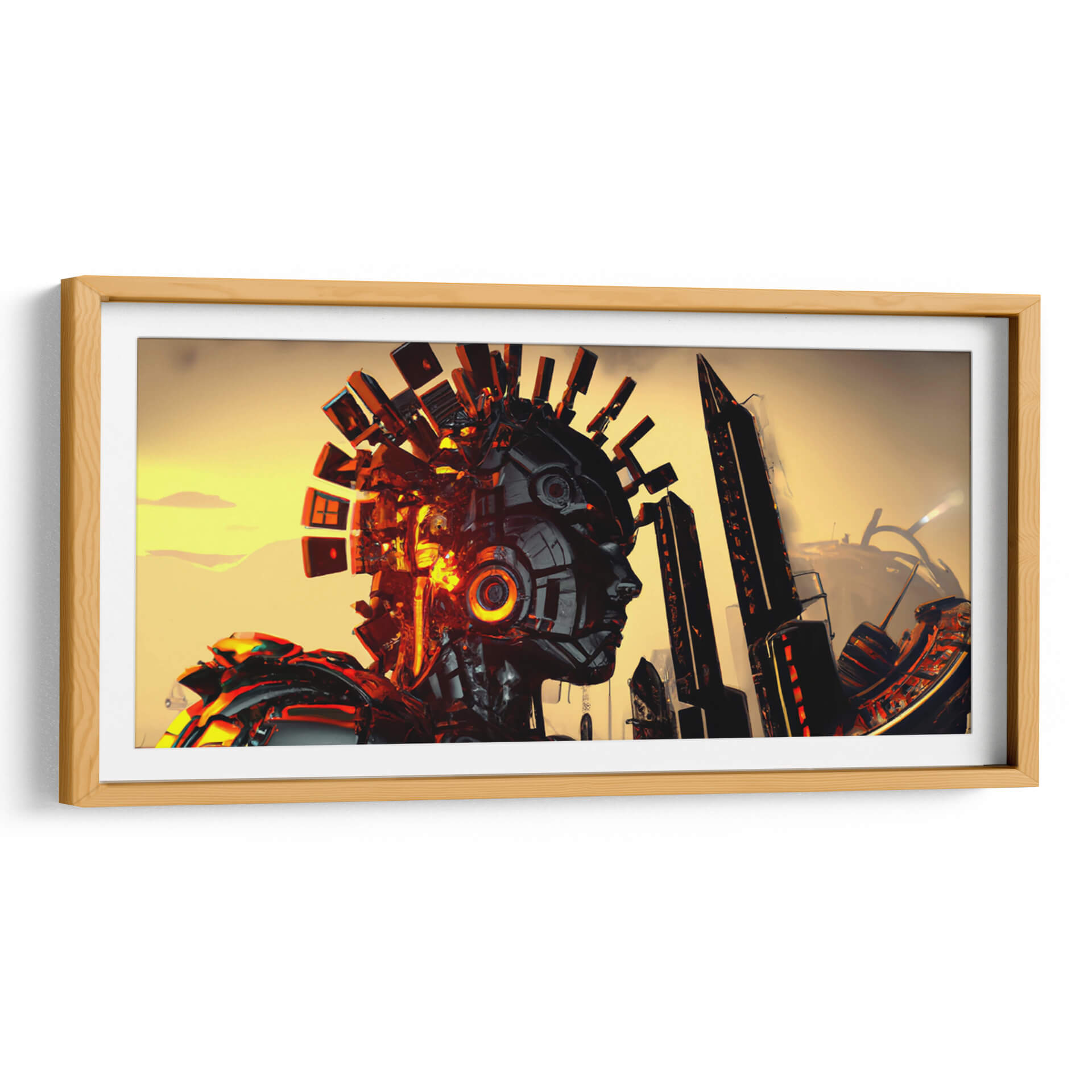 Sumérgete en el futurismo y la fascinación por la tecnología con "Shaturn NGC7009", una obra de arte digital que evoca la majestuosidad de un paisaje urbano de ciencia ficción. Esta pieza presenta un intrincado retrato de una figura robótica o cibernética, con detalles mecánicos y una estética que fusiona lo orgánico con lo artificial. Los colores predominantes son los tonos oscuros de negro y gris metálico, contrastados vibrantes por el rojo ardiente y el amarillo dorado que emanan de los componentes internos y las luces de la ciudad. La composición, con su silueta icónica y edificios estilizados que se elevan hacia un cielo difuminado en tonos cálidos, crea una atmósfera de misterio y poder. "Shaturn NGC7009" es perfecta para añadir un toque de vanguardia y profundidad a tu sala de estar, estudio u oficina, inspirando conversaciones y capturando la imaginación de quienes la contemplan. Este cuadro decorativo moderno es una declaración audaz, ideal para amantes de la ciencia ficción, el arte digital y el diseño contemporáneo, transportándote a un universo de posibilidades ilimitadas.