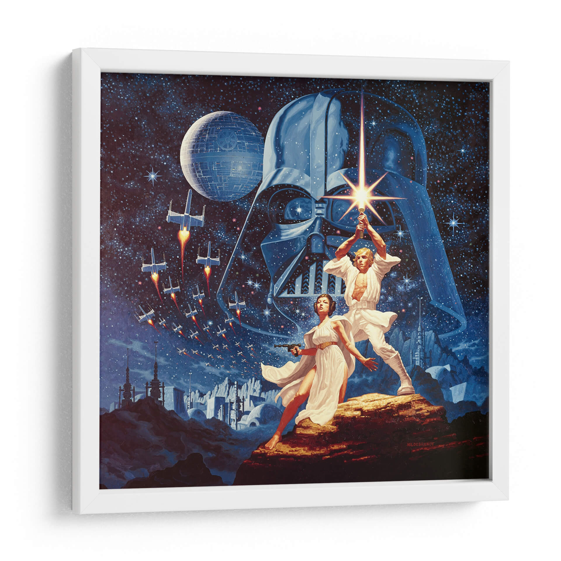 Sumérgete en una galaxia muy, muy lejana con este impactante cuadro decorativo 'Star Wars moment'. La obra captura la icónica batalla entre el bien y el mal, con Darth Vader emergiendo de las sombras como una amenaza inminente, mientras Luke Skywalker y la Princesa Leia se alzan en un acto de valentía. El profundo azul del espacio, salpicado de estrellas brillantes y la ominosa Estrella de la Muerte, crea un telón de fondo dramático para esta escena épica. Los detalles intrincados de las naves espaciales y el paisaje alienígena añaden profundidad y realismo a la composición. Los tonos vibrantes y contrastantes, desde el blanco luminoso de los sables de luz y los trajes de los héroes hasta los azules intensos y los negros profundos del cosmos, generan una atmósfera de acción y aventura. Este cuadro decorativo es perfecto para los fanáticos de la saga y para aquellos que buscan añadir un toque de fantasía y heroísmo a su hogar u oficina. Ideal para una sala de estar, un cine en casa o un estudio, este cuadro evoca nostalgia y emoción, convirtiéndose en un punto focal inolvidable.
