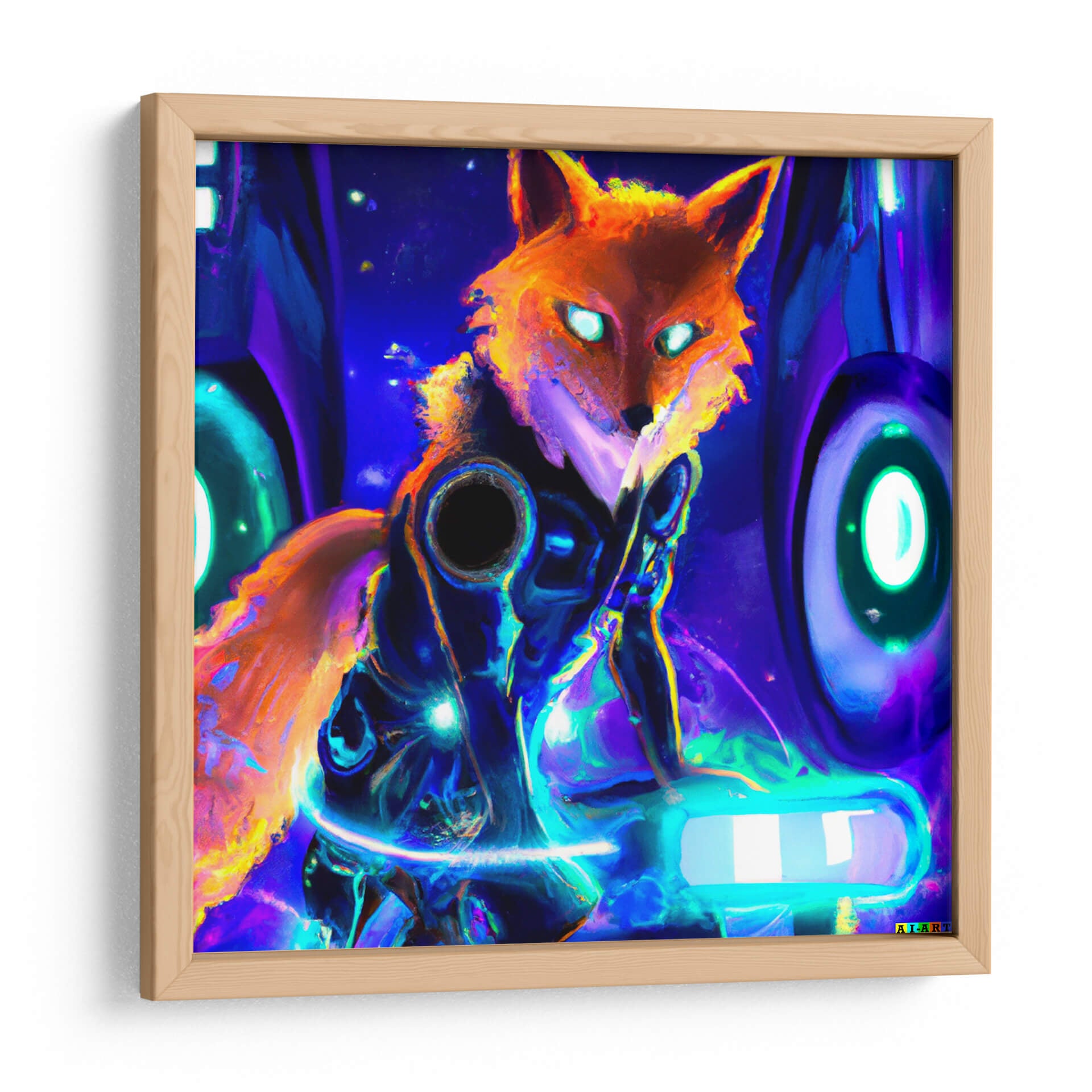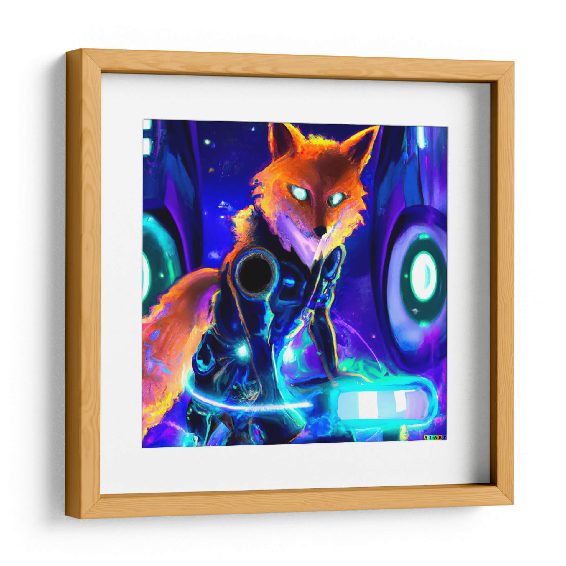 Sumérgete en un universo futurista con "The Cyber Fox 4", una obra de arte digital que redefine la estética contemporánea. Este cautivador cuadro decorativo presenta un zorro antropomórfico, envuelto en un aura de misterio y tecnología. Sus penetrantes ojos azul eléctrico contrastan vívidamente con el vibrante pelaje anaranjado, creando un punto focal hipnótico. La composición se desarrolla en un entorno cibernético, dominado por profundos tonos azules y púrpuras, salpicados de luces de neón y elementos que sugieren una galaxia lejana o una ciudad futurista. La energía cruda de la pieza se manifiesta a través de pinceladas audaces y texturas digitales que le otorgan una profundidad inigualable. "The Cyber Fox 4" es más que una simple decoración; es una declaración de estilo, perfecta para espacios modernos, oficinas vanguardistas o cualquier rincón que busque un toque de audacia y originalidad. Ideal para amantes del arte digital, la ciencia ficción y la estética cyberpunk, este cuadro aportará una dosis de intriga y conversación a tu hogar u oficina. Transforma tu pared en una ventana a lo desconocido y deja que la singularidad de este zorro cibernético inspire tu día a día.