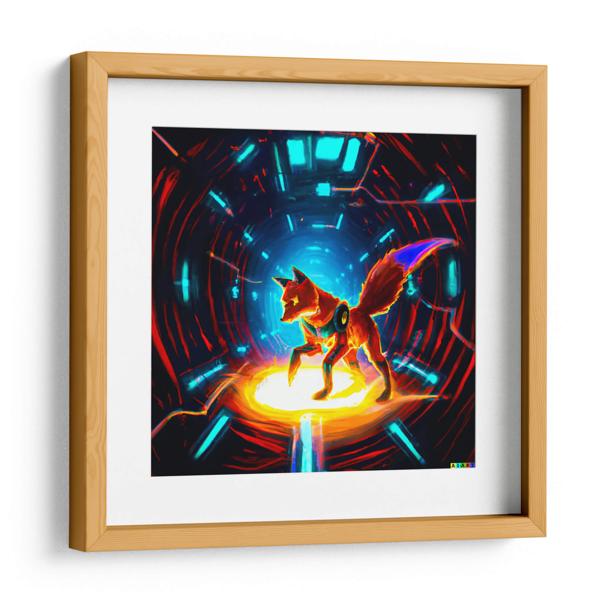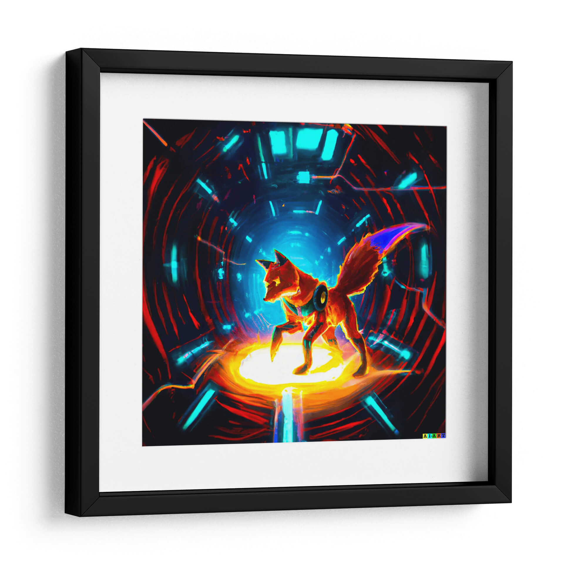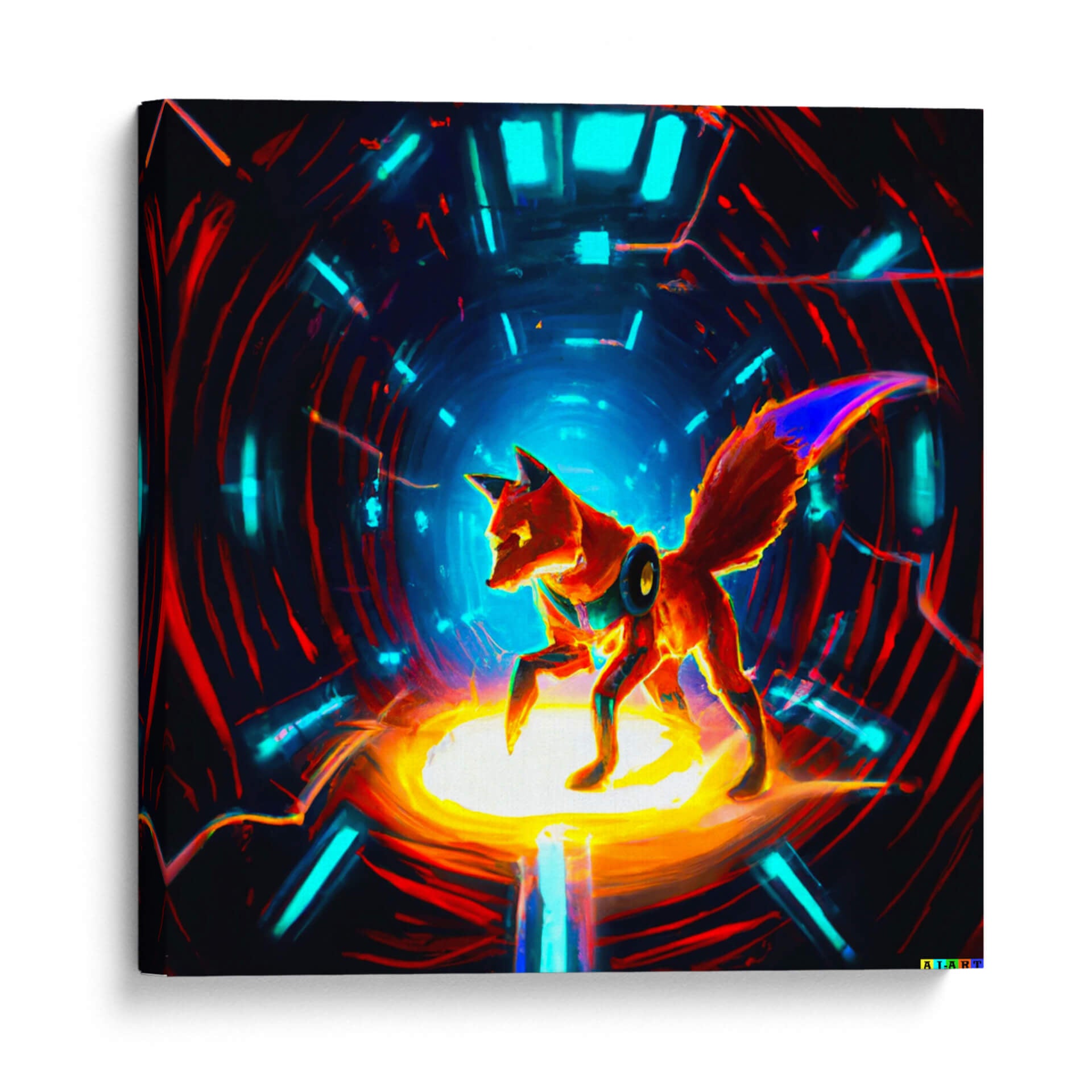 Sumérgete en el futuro con "The Cyber Fox 6", una obra de arte digital que fusiona la mística de la naturaleza con la estética cibernética. Este cuadro decorativo presenta una figura de zorro estilizada, en tonos cálidos anaranjados y rojizos, emergiendo de un portal de luz brillante. El entorno circundante está compuesto por túneles y formas geométricas en tonos azules eléctricos y negros profundos, creando un contraste vibrante que evoca la energía y el misterio de la tecnología avanzada. La composición dinámica y el uso audaz del color hacen de esta pieza un punto focal cautivador para cualquier espacio moderno o vanguardista. Ideal para salones, oficinas o cualquier habitación donde se desee añadir un toque de originalidad y un aire de ciencia ficción. "The Cyber Fox 6" es más que una simple decoración; es una ventana a un universo de posibilidades, perfecta para inspirar y estimular la imaginación. Añade este impactante cuadro decorativo a tu colección y transforma tu ambiente con su energía futurista y su diseño único, que seguramente generará conversación.