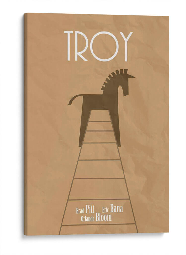 Transforma tu espacio con este evocador cuadro decorativo inspirado en la épica historia de "Troy". La obra presenta una silueta estilizada y minimalista de un caballo de Troya sobre una estructura que asemeja una escalera o rampa, todo sobre un fondo texturizado que evoca papel artesanal en tonos cálidos y terrosos. La simplicidad de la composición, junto con la paleta de colores neutros y marrones, crea una atmósfera de misterio, estrategia y poder latente. Es una pieza ideal para quienes aprecian el arte conceptual y buscan añadir un toque de intriga y profundidad a su decoración. Este diseño es perfecto para salas de estar, estudios u oficinas, aportando un punto focal sofisticado y conversacional. Integra elementos de la historia antigua y la mitología de una manera moderna y artística, haciendo de este cuadro una adición única a cualquier colección de arte de pared. Su estilo minimalista se adapta fácilmente a diversas estéticas decorativas, desde la moderna hasta la más tradicional, ofreciendo versatilidad y un impacto visual memorable. Una elección inteligente para amantes del cine y el arte.