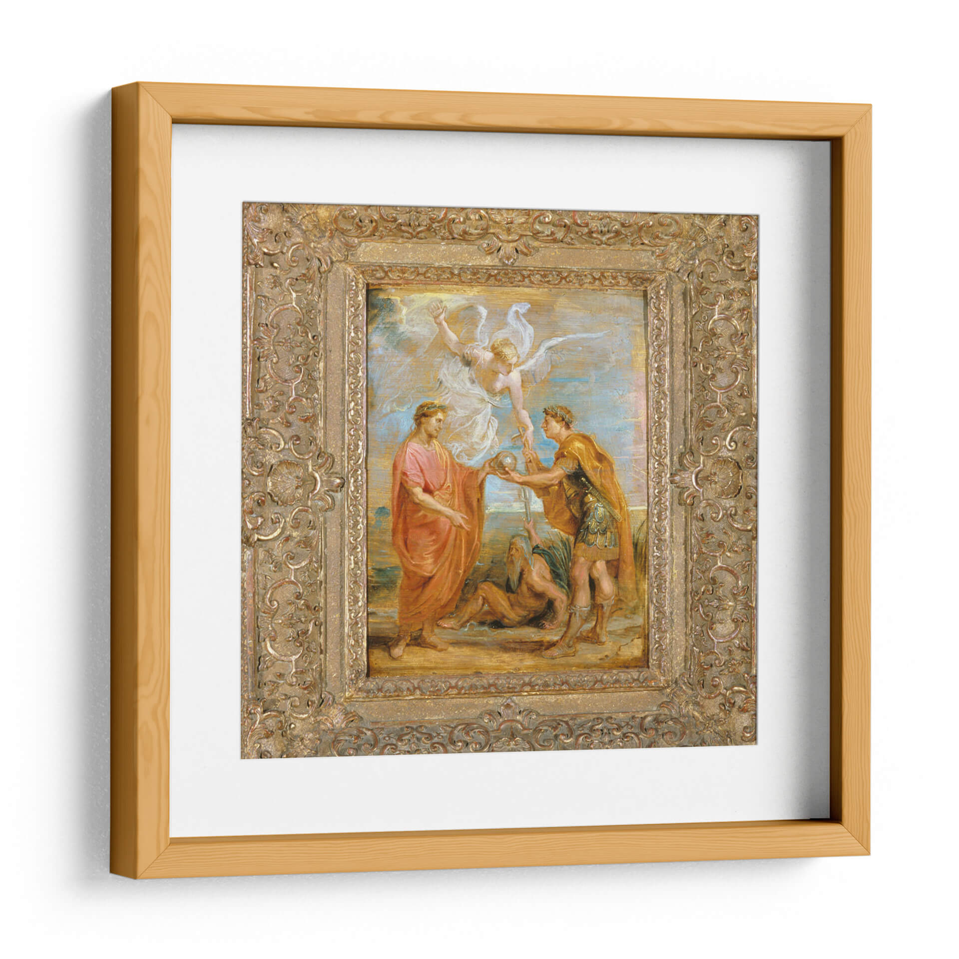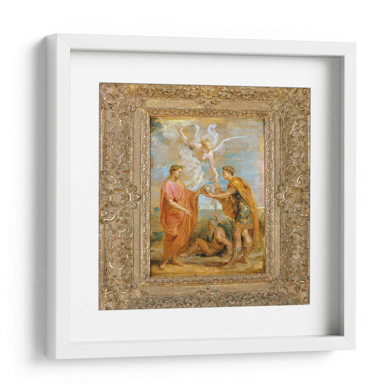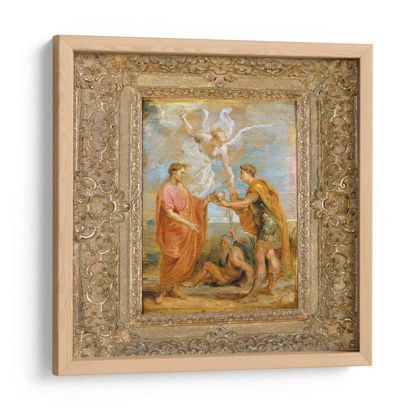 Embárcate en un viaje a través de la historia con este cautivador cuadro decorativo, "Constancio nombra a Constantino como su sucesor", inspirado en la obra maestra de Peter Paul Rubens. Esta pieza evoca una atmósfera de solemnidad y transición, presentando figuras dramáticas en un paisaje evocador. La rica paleta de colores, dominada por tonos cálidos y terrosos complementados por el vibrante naranja de las túnicas y el azul celestial del cielo, crea una sensación de profundidad y urgencia. Observamos una escena de traspaso de poder, con figuras alegóricas y humanas interactuando bajo una luz divina que sugiere aprobación celestial. La composición dinámica y el detallado trabajo en las vestimentas y expresiones capturan la esencia del Barroco, invitando a la contemplación. Este cuadro decorativo es ideal para un estudio, biblioteca o sala de estar, aportando un toque de grandeza clásica y un punto de conversación fascinante. Transforma tu espacio con esta representación artística de un momento crucial, fusionando historia, arte y emoción en una obra que trasciende el tiempo. Una elección perfecta para los amantes del arte clásico y la decoración con carácter.