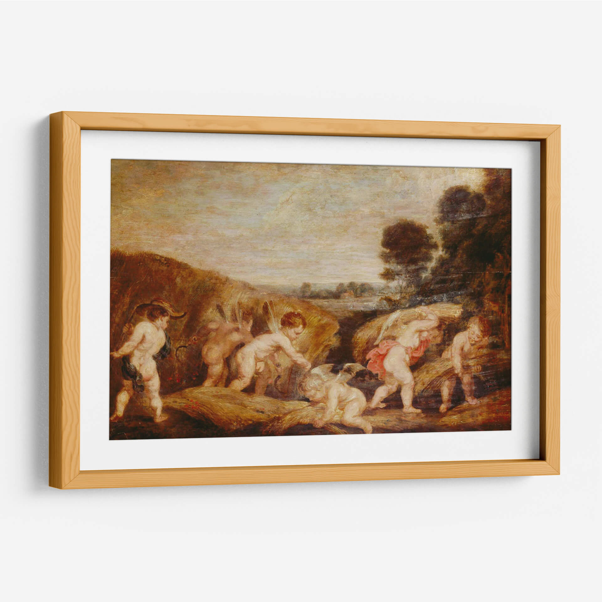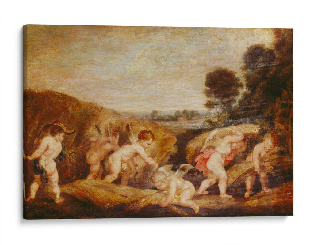 Sumérgete en la opulencia barroca con este cuadro decorativo "Cupidos cosechando", inspirado en la obra maestra de Peter Paul Rubens. La escena cobra vida con una vibrante representación de querubines laboriosos en un paisaje rural, evocando una sensación de vitalidad y abundancia. Los colores cálidos, dominados por tonos tierra, ocres y dorados, se mezclan con toques de rojo y verdes profundos, creando una atmósfera rica y envolvente. Las figuras juguetonas de los cupidos, capturadas en movimiento, transmiten una energía contagiosa, mientras que la composición dinámica y el uso magistral del claroscuro añaden profundidad y realismo a la escena. Este cuadro decorativo es ideal para añadir un toque de clasicismo y alegría a salones, comedores o estudios, convirtiéndose en un punto focal que estimula la conversación y la admiración. Transforma tu espacio con la maestría artística de Rubens y la representación lúdica de la cosecha, una pieza que celebra la vida y el trabajo con una gracia inigualable.