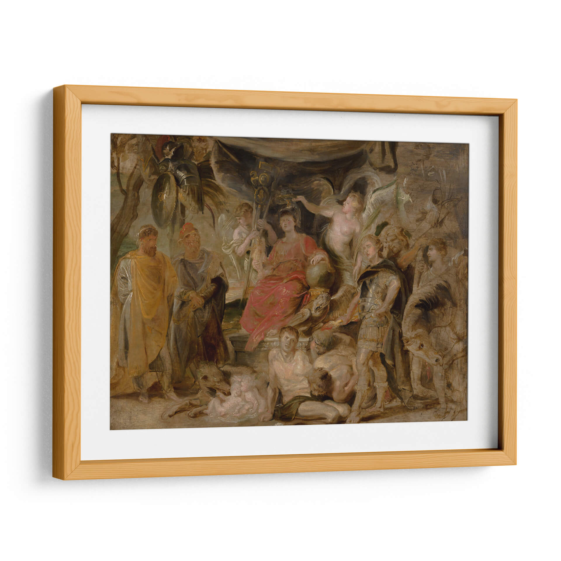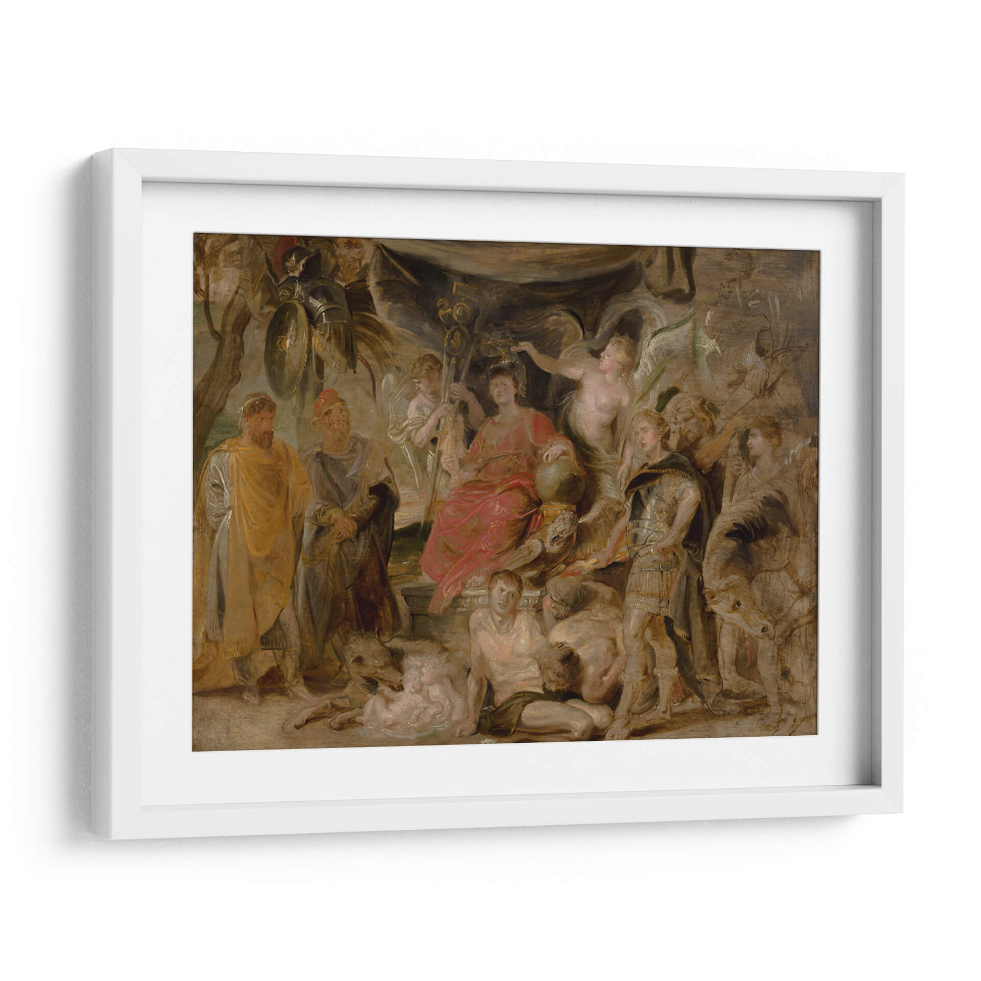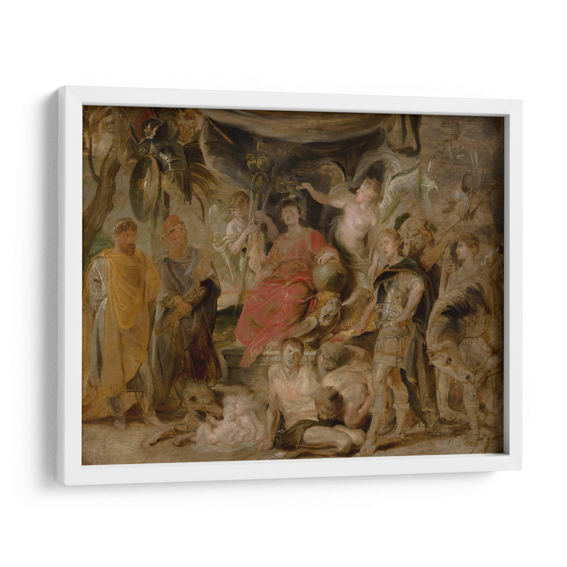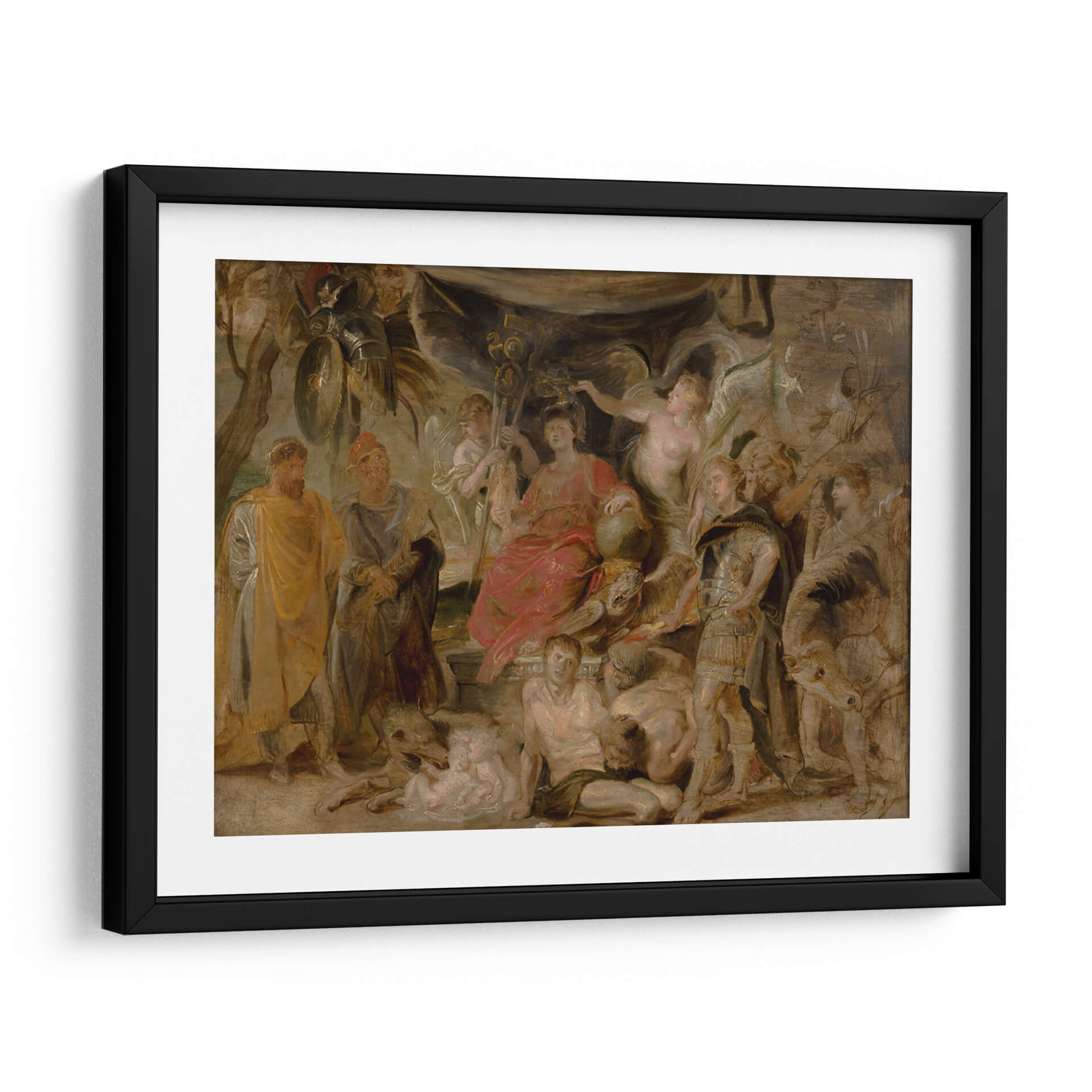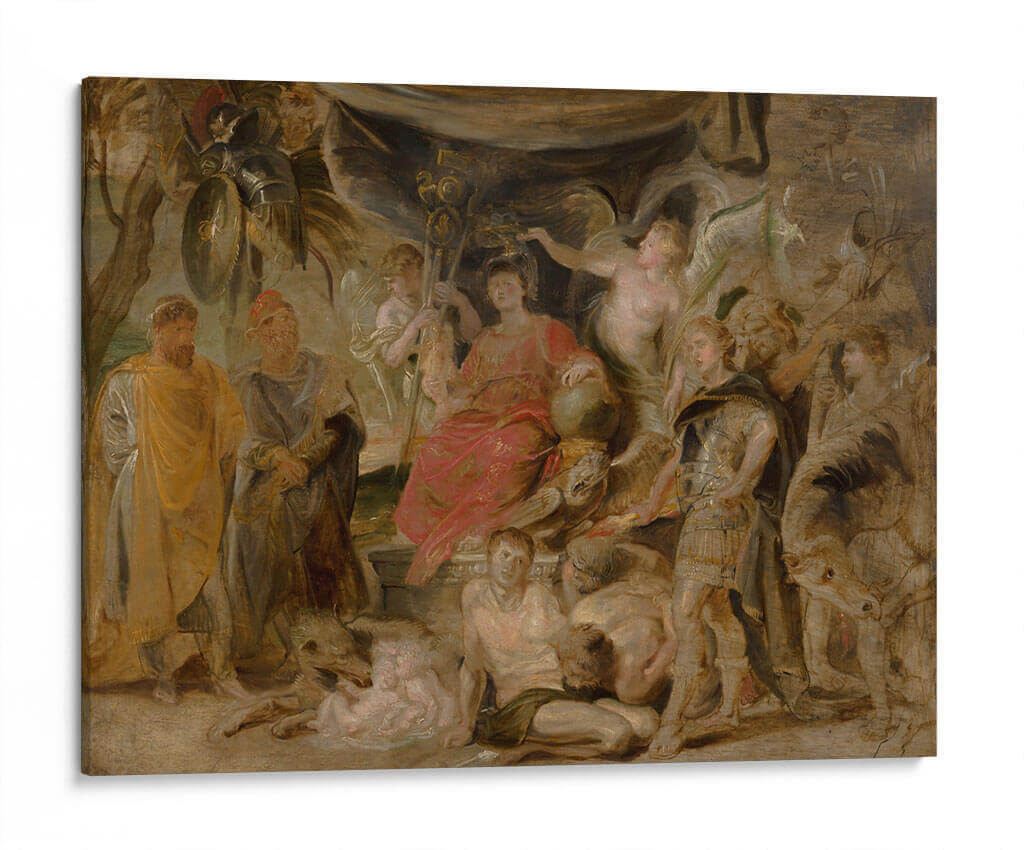 Sumérgete en la magnificencia histórica con este impactante cuadro decorativo, una representación del 'Triunfo de Roma del joven emperador Constantino honrando a Roma' del maestro Peter Paul Rubens. La obra, cargada de dramatismo y detalle, transporta al espectador a una escena de poder y gloria, evocando la grandeza del Imperio Romano. La paleta de colores, rica en tonos cálidos y terrosos, realzada por sutiles toques de rojo vibrante y armaduras doradas, crea una atmósfera de solemnidad y triunfo. La composición dinámica, con figuras heroicas y alegóricas entrelazadas, guía la mirada a través de la narrativa visual, invitando a la contemplación. Este cuadro decorativo es ideal para añadir un punto focal de carácter e historia a salones, estudios o comedores, aportando un toque de elegancia clásica y sofisticación. Perfecto para amantes del arte barroco, la historia y las piezas que cuentan una historia poderosa. Transforma tu espacio con esta obra maestra que inspira respeto y admiración.