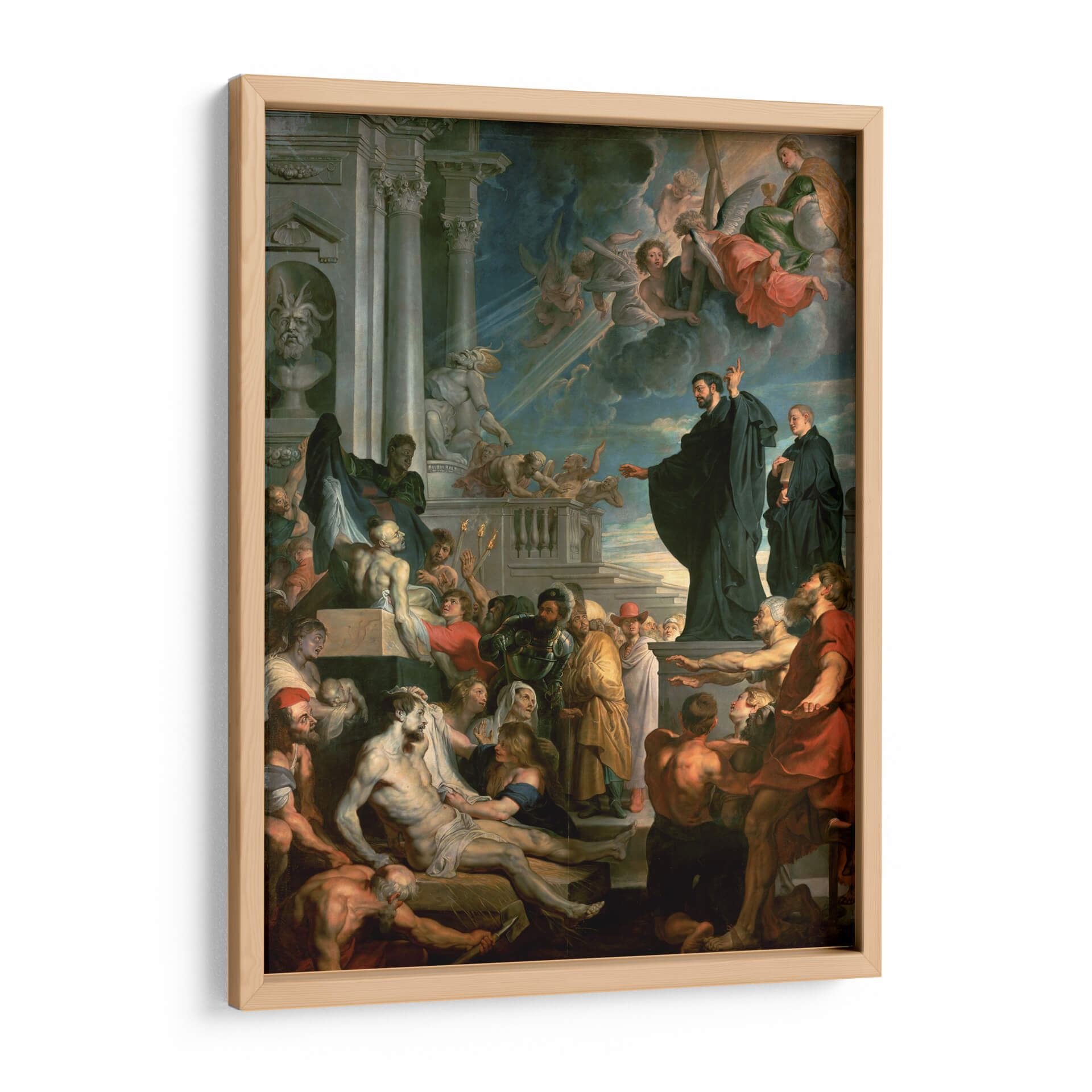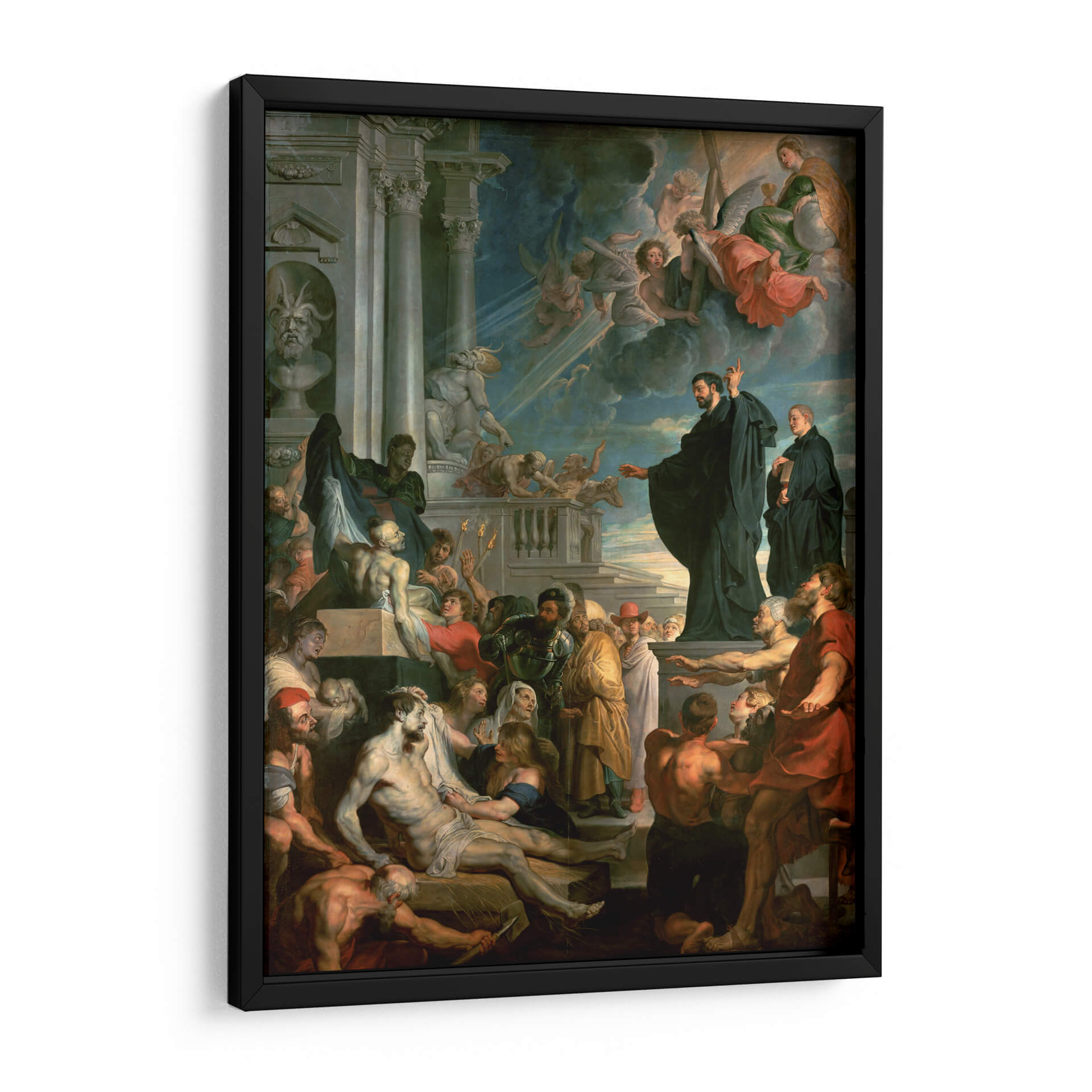 Sumérgete en la opulencia visual y la profunda narrativa de "Los milagros de San Francisco Javier", una obra maestra de Peter Paul Rubens. Este cuadro decorativo captura un momento de intensa devoción y milagros divinos, presentando una composición dinámica llena de figuras emotivas y gestos dramáticos. La paleta de colores, rica en tonos cálidos y contrastes de luz y sombra, añade una atmósfera de solemnidad y asombro, típica del barroco. La obra evoca sentimientos de fe, esperanza y la intervención divina, haciéndola ideal para espacios que buscan transmitir grandeza y espiritualidad, como un estudio, una sala de estar formal o un comedor. Las figuras, representadas con gran realismo y vitalidad, interactúan en una escena que parece cobrar vida ante tus ojos. Integra este impresionante cuadro decorativo en tu hogar u oficina para añadir un toque de arte clásico y una pieza de conversación que inspira admiración y reflexión. La majestuosidad de la composición y la maestría de Rubens transformarán cualquier ambiente, aportando profundidad histórica y una poderosa presencia visual.