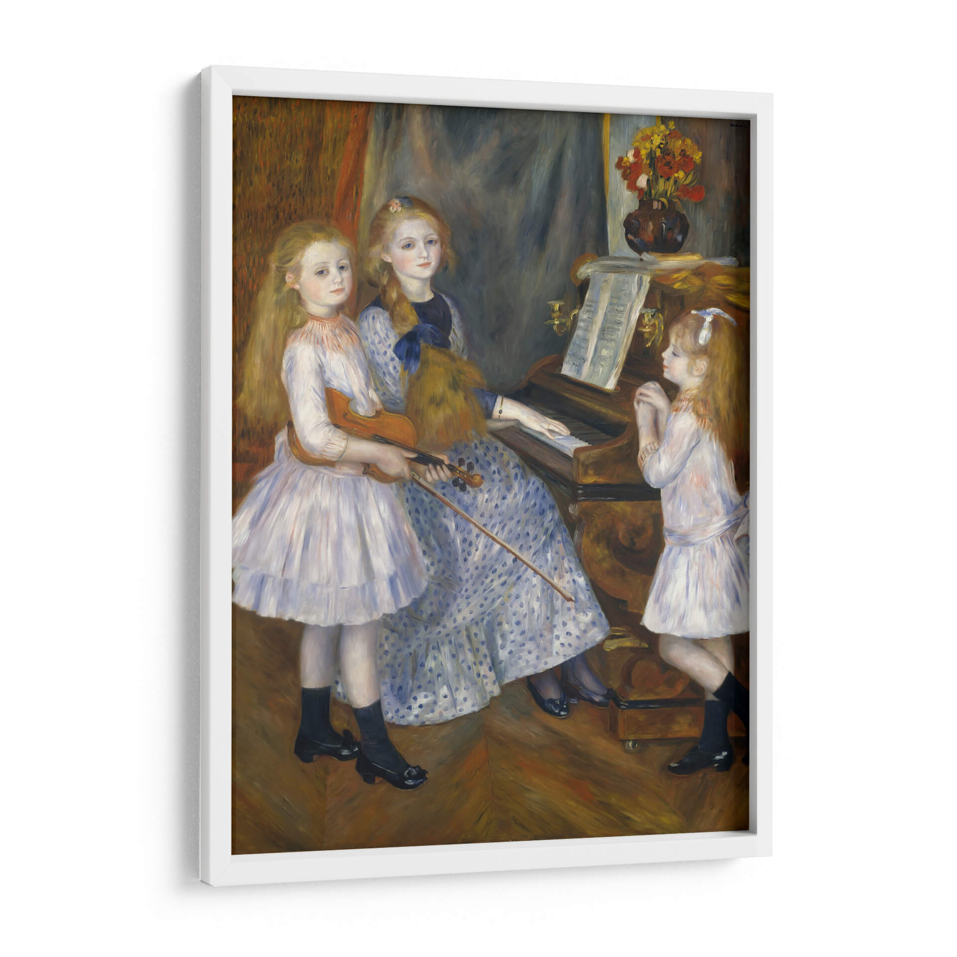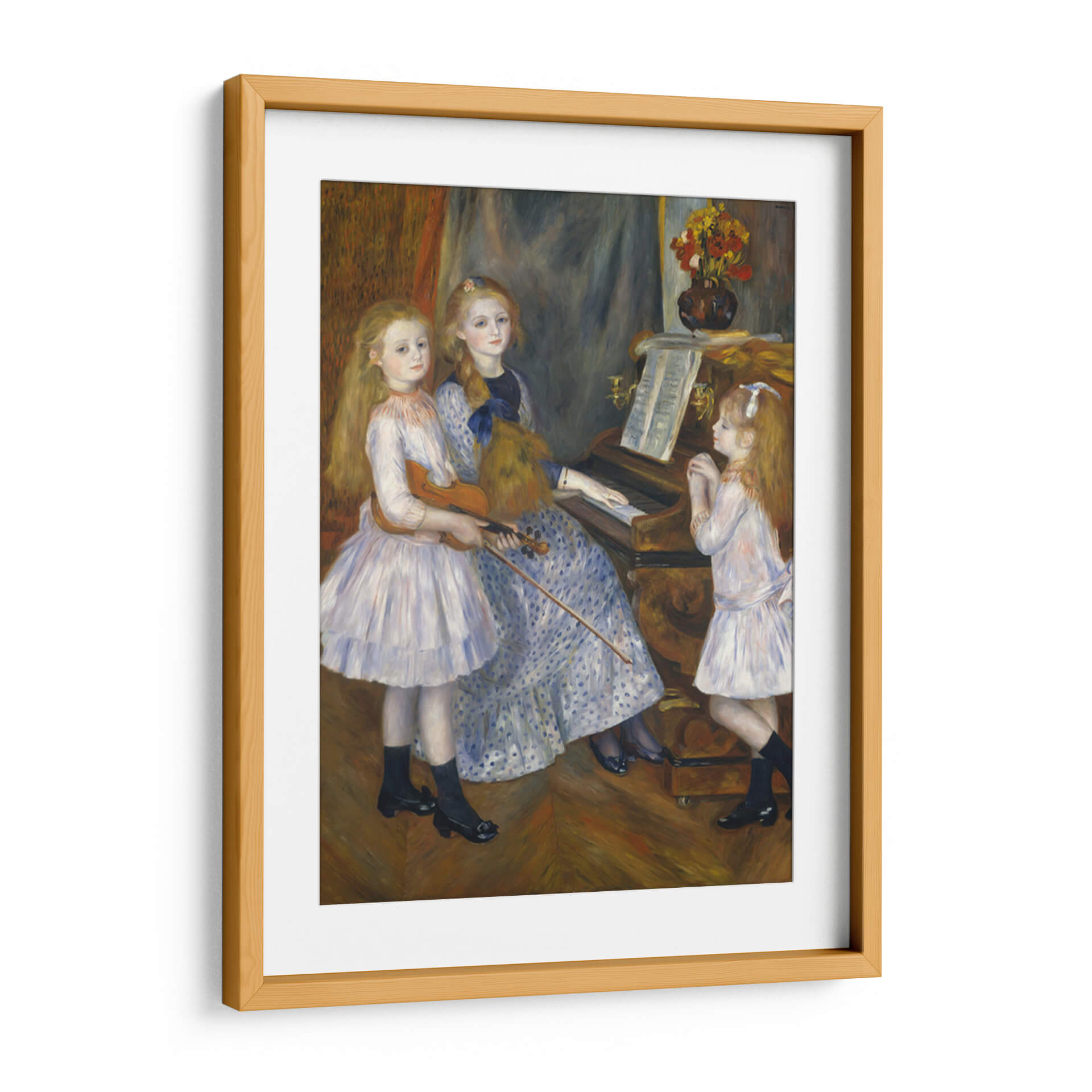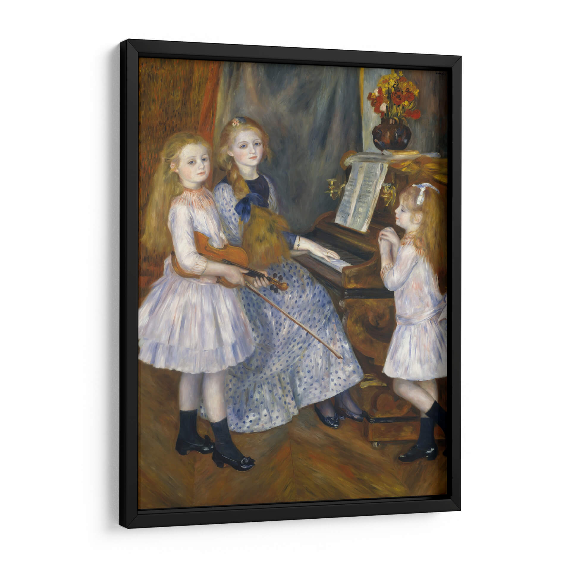 Sumérgete en la ternura y la armonía musical con "Las hijas de Catulle Mendès", una obra maestra de Pierre-Auguste Renoir que captura un instante íntimo de aprendizaje y conexión familiar. Este cuadro decorativo, impregnado del estilo impresionista característico de Renoir, presenta a tres jóvenes con vestidos etéreos, rodeadas por la calidez de un piano de madera. La paleta de colores, dominada por tonos suaves y luminosos, crea una atmósfera serena y nostálgica, ideal para transformar cualquier espacio en un refugio de paz y belleza. La niña de la izquierda, con su violín en mano, irradia una inocencia cautivadora, mientras que la figura central, con su mirada serena, parece guiar la melodía. La más pequeña, a la derecha, observa con devoción, completando una escena que evoca la dulzura de la infancia y el placer de la música. "Las hijas de Catulle Mendès" es más que una simple imagen; es una invitación a revivir momentos de calidez y afecto, añadiendo un toque de clasicismo y elegancia a tu hogar u oficina. Perfecto para salas de estar, dormitorios o estudios, este lienzo decorativo aportará una sensación de refinamiento y serenidad a tu decoración.