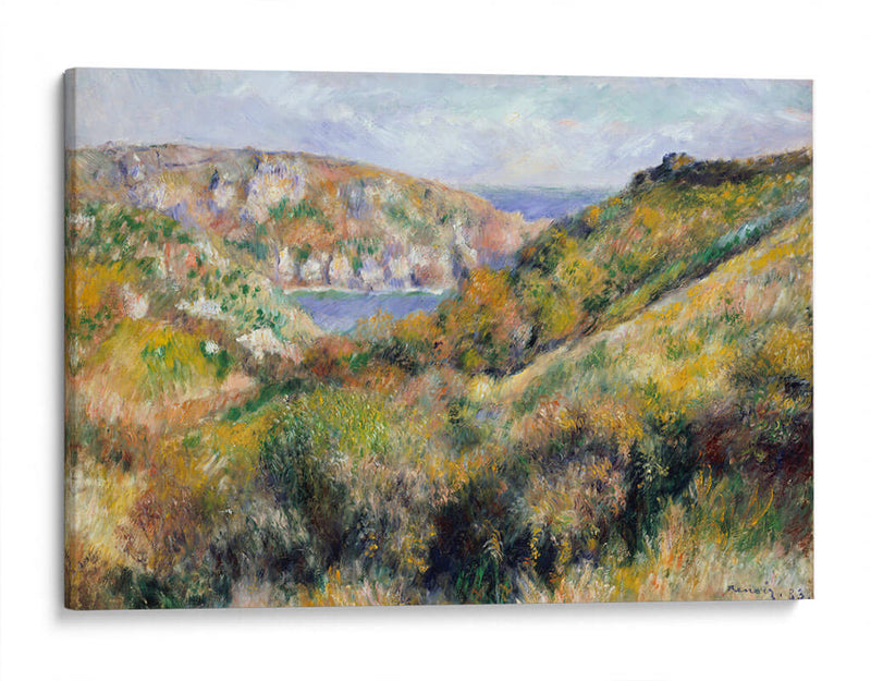 Sumérgete en la vibrante obra maestra 'Paisaje' de Pierre-Auguste Renoir, una representación impresionista que captura la belleza efímera de la naturaleza. Este cuadro decorativo transporta al espectador a una escena costera bañada por la luz del sol, donde las colinas escarpadas se funden con el azul sereno del mar. La paleta de colores, dominada por verdes exuberantes, ocres cálidos y toques de púrpura y azul, evoca una sensación de vitalidad y tranquilidad a la vez. El estilo distintivo de Renoir, con pinceladas sueltas y un enfoque en la atmósfera lumínica, confiere a la pieza una textura rica y una profundidad cautivadora. Ideal para añadir un toque de arte clásico y luminosidad a cualquier estancia, este paisaje impresionista es perfecto para salones, comedores o estudios que buscan una conexión con la naturaleza y el arte atemporal. Imagina la brisa marina y la calidez del sol en tu hogar con este evocador paisaje.