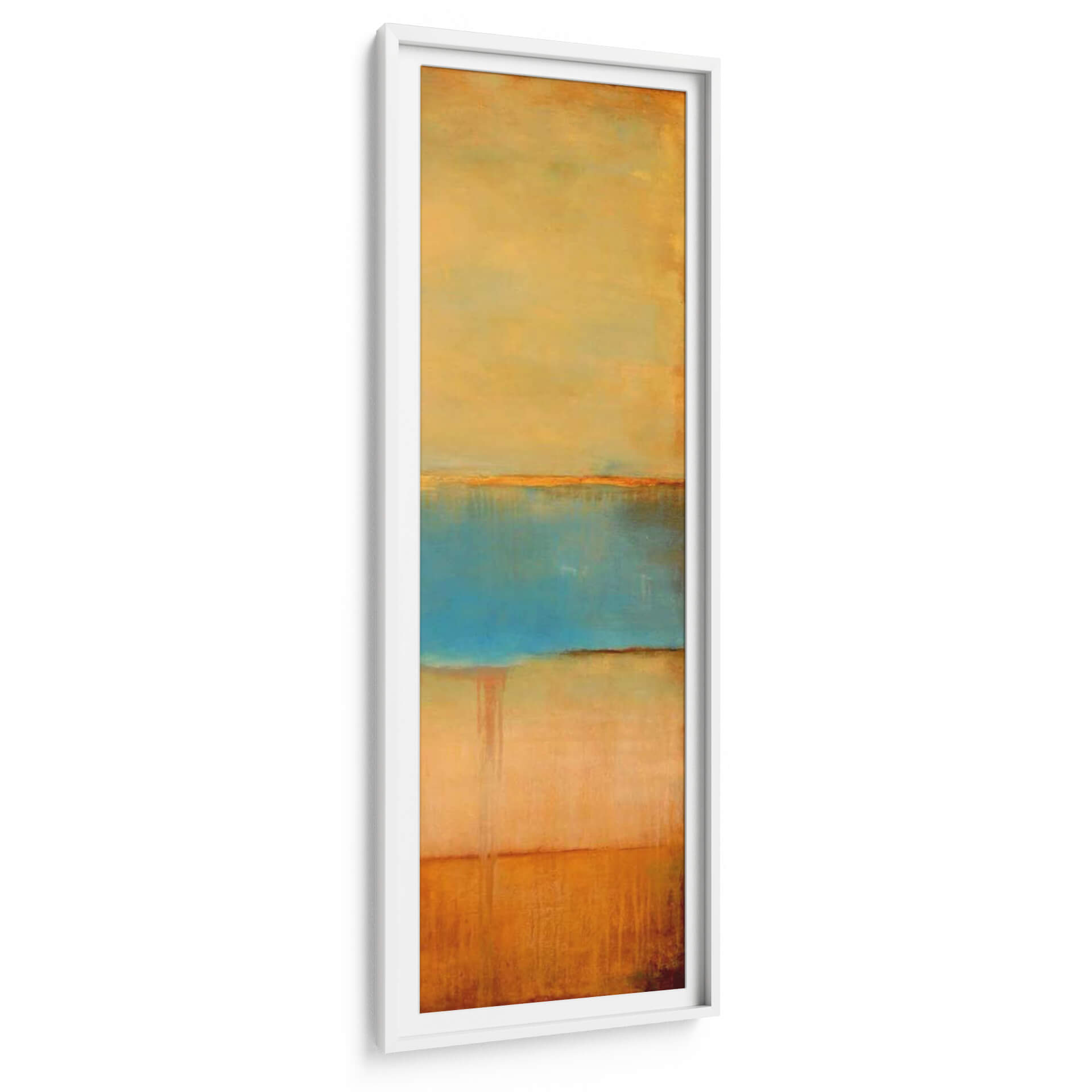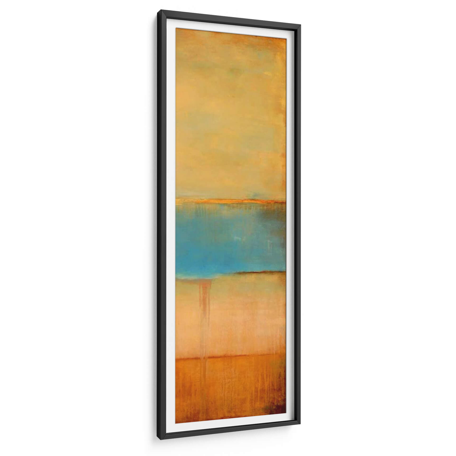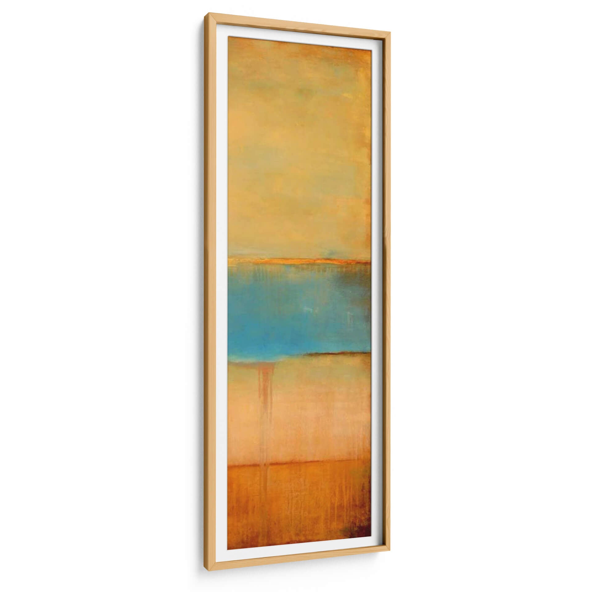 Sumérgete en la serena y cautivadora obra de arte abstracto 'Allure Of The Seas II' de Erin Ashley. Esta pieza evoca la tranquilidad de un paisaje marino bañado por el sol, con una paleta de colores cálidos y terrosos que se funden suavemente con vibrantes tonos de azul océano. Las capas sutiles y las texturas ricas invitan a la contemplación, creando una atmósfera de calma y sofisticación. La composición horizontal, con una distintiva línea que separa el cielo y el mar, aporta una sensación de equilibrio y profundidad, mientras que las sutiles caídas de color añaden un toque orgánico y etéreo. Este cuadro decorativo es perfecto para añadir un punto de interés visual y una dosis de serenidad a cualquier espacio, ya sea una sala de estar moderna, un dormitorio acogedor o una oficina que busca inspiración. Su estilo abstracto contemporáneo permite una integración fluida con diversas decoraciones, convirtiéndolo en una elección versátil y atemporal. Ideal para quienes buscan una pieza que transmita paz y belleza natural, 'Allure Of The Seas II' es una invitación a la introspección y al disfrute estético.