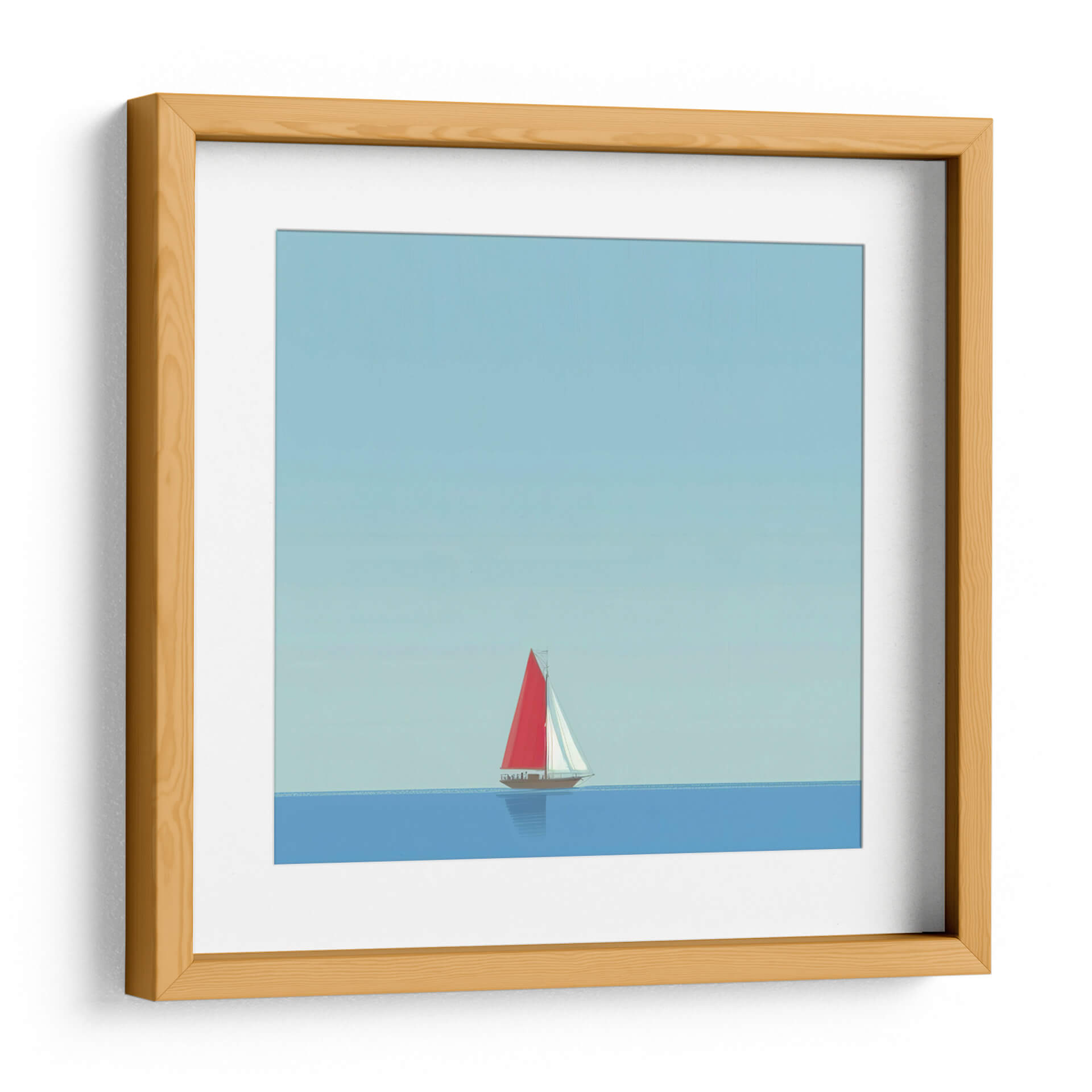 Sumérgete en la serenidad del mar con este evocador cuadro decorativo titulado "Barco Rojo 2", una obra de la artista Cecilia Flores. La pieza presenta un velero solitario navegando en un vasto océano azul bajo un cielo despejado de tonalidades celestes. La vela principal de color rojo vibrante contrasta sutilmente con la vela blanca auxiliar y el casco marrón del barco, creando un punto focal dinámico en una composición minimalista y equilibrada. El reflejo del velero sobre las aguas tranquilas añade una capa de profundidad y realismo a la escena, invitando a la contemplación. Los tonos predominantemente azules y celestes de la obra transmiten una sensación de calma, paz y libertad, ideal para espacios que buscan un oasis de tranquilidad. Este cuadro decorativo es perfecto para añadir un toque de elegancia costera a tu sala de estar, dormitorio o estudio, evocando la belleza del viaje y la serenidad de la navegación. Su estilo contemporáneo y su paleta de colores refrescante lo convierten en una pieza versátil que complementará diversos estilos de decoración, desde la moderna hasta la escandinava o costera. Transforma tu hogar en un refugio de paz con esta cautivadora obra de arte marítimo.