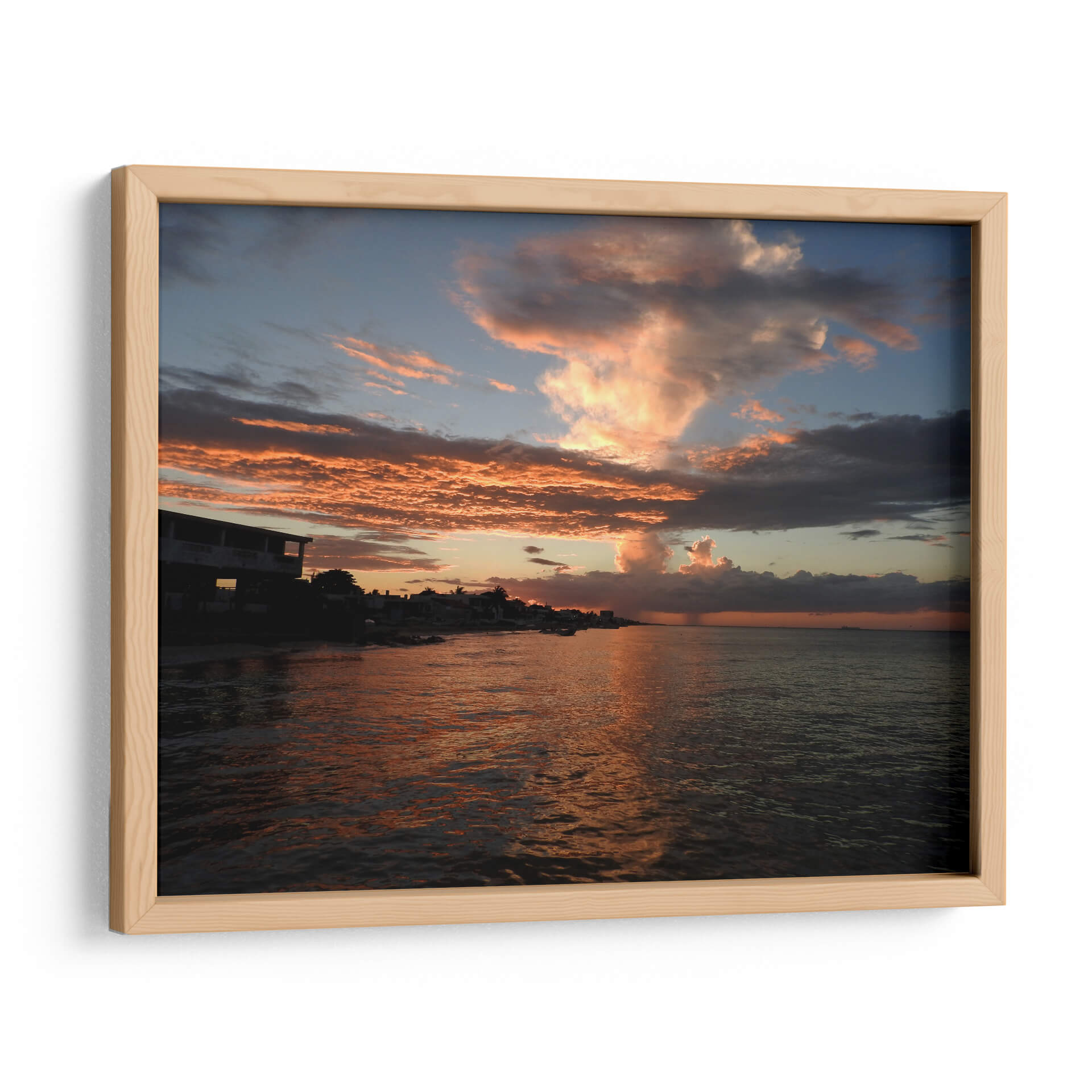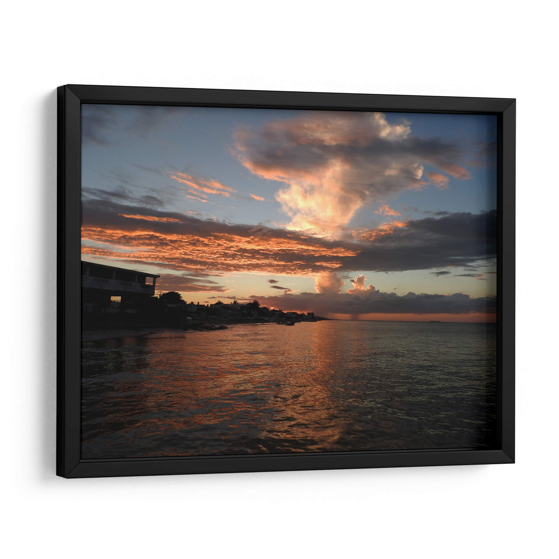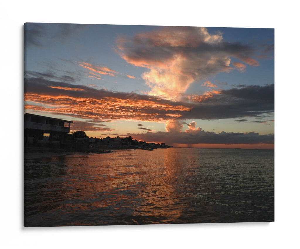 Captura la serenidad y la majestuosidad del atardecer con este evocador cuadro decorativo titulado 'El cielo, el mar y tú', obra del artista Hugo Segura. La imagen te transporta a una costa donde el cielo se tiñe de naranjas intensos y rosas vibrantes, contrastando con las sombras profundas del mar y la silueta de construcciones a lo lejos. Las nubes, iluminadas por el sol poniente, crean un espectáculo de luz y textura que invita a la contemplación. El reflejo del cielo en el agua calma añade una capa de profundidad y realismo a la escena, generando una atmósfera de paz y tranquilidad. Este paisaje marino es ideal para añadir un toque de calidez y sofisticación a cualquier espacio, ya sea una sala de estar, un dormitorio o una oficina, convirtiéndose en un punto focal que evoca recuerdos de vacaciones o sueños de escapar. La obra es una invitación a detenerse y apreciar la belleza efímera del momento, perfecta para quienes buscan una conexión emocional con su entorno. Decora tu hogar con la magia de un atardecer inolvidable y permite que esta pieza inspire calma y belleza en tu día a día.