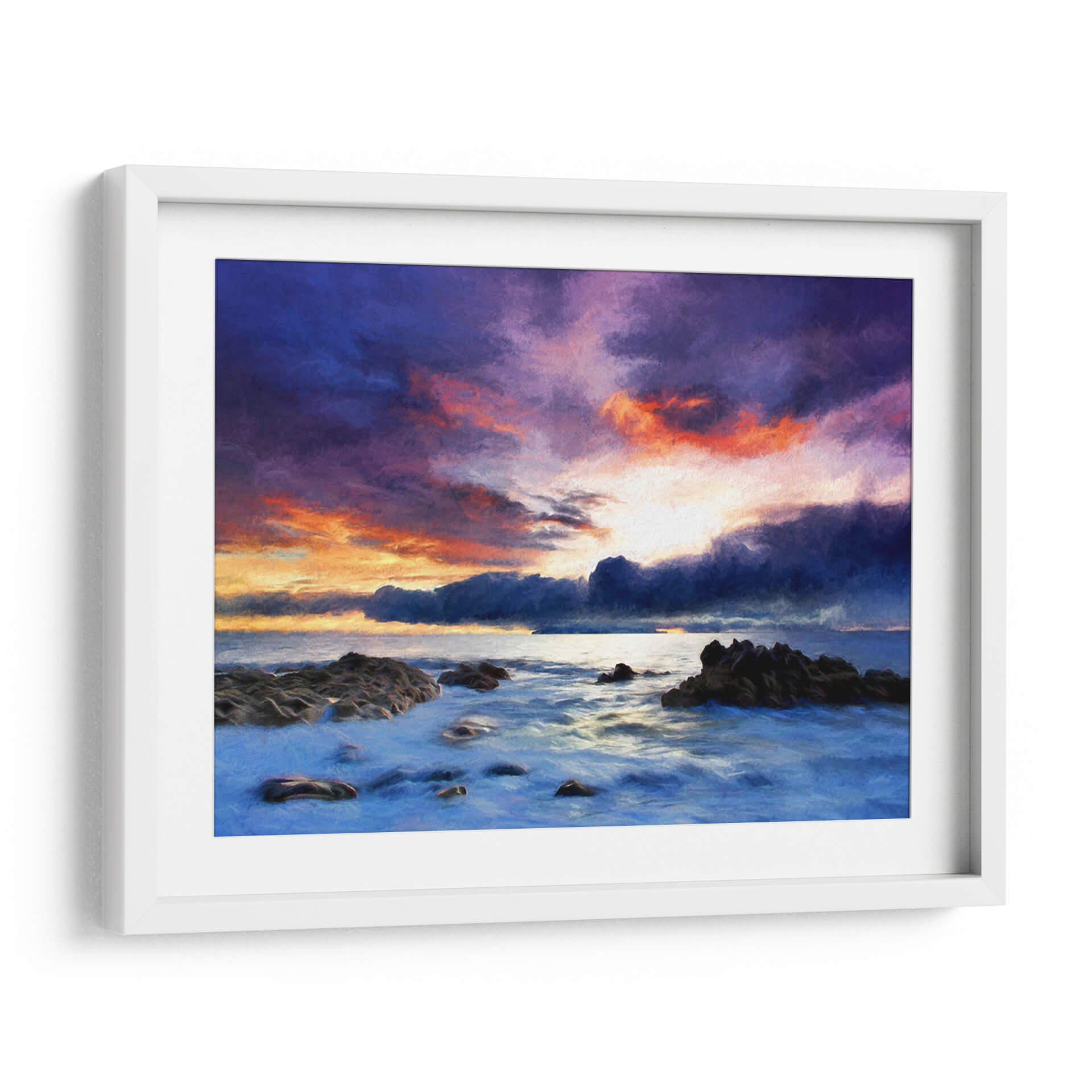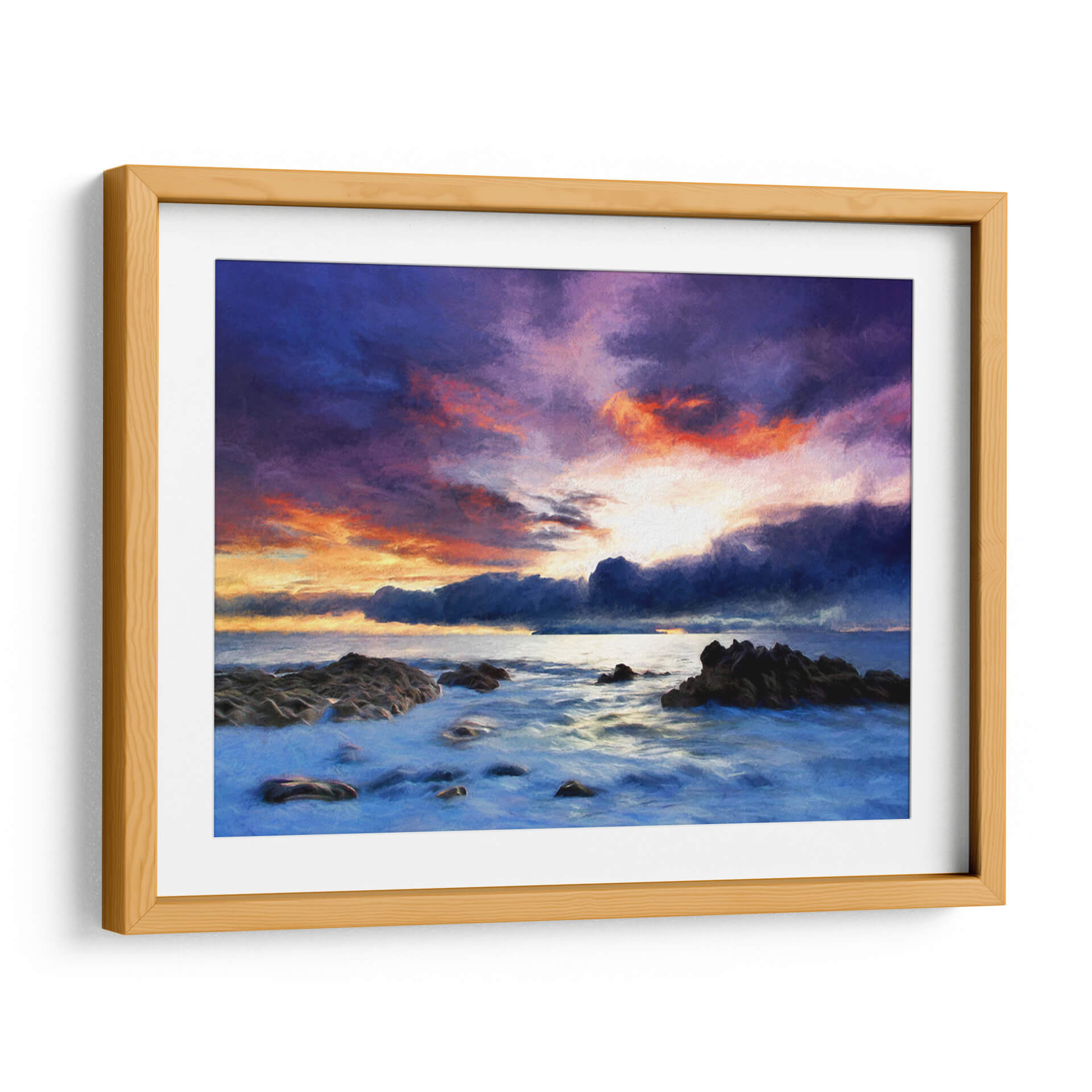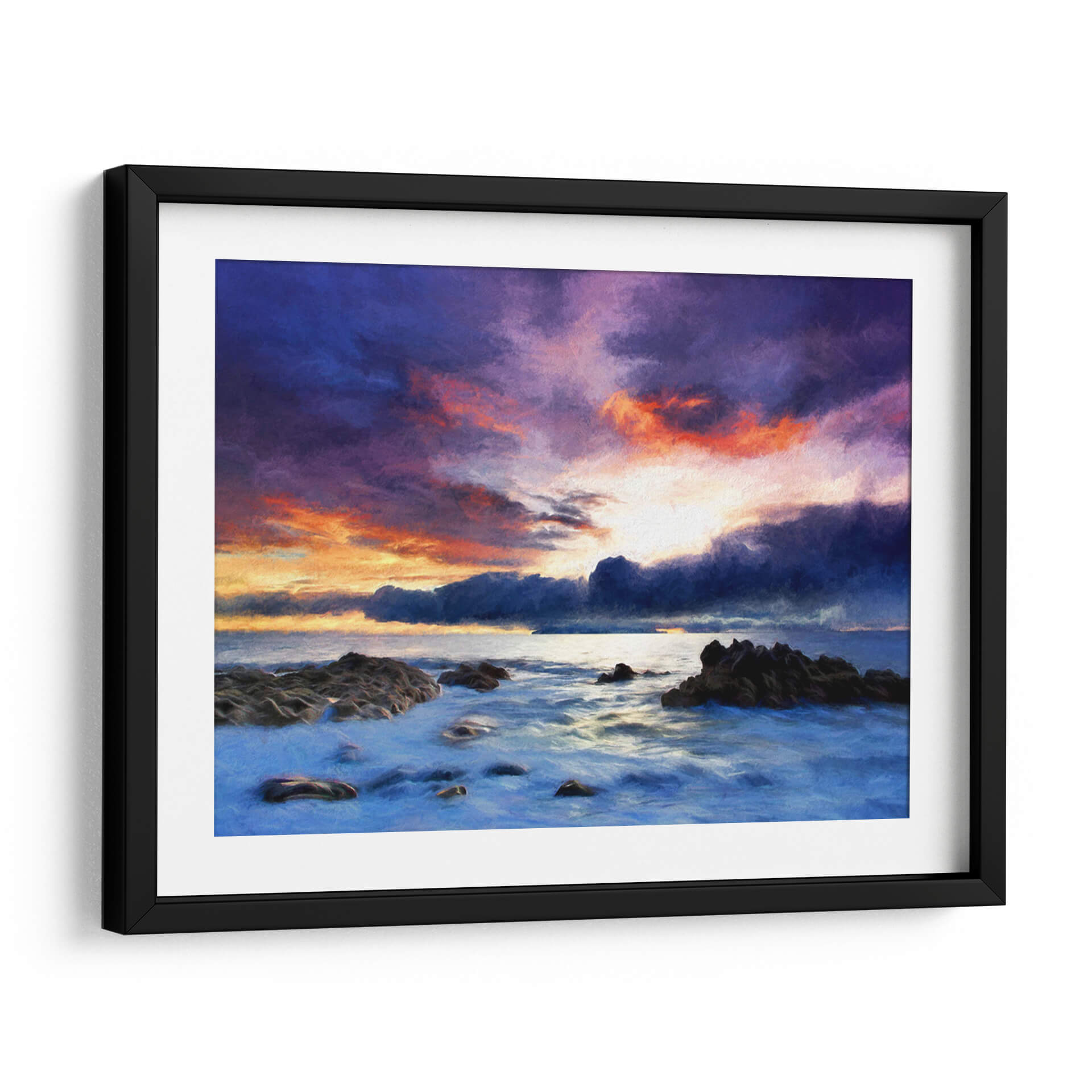 Sumérgete en la atmósfera cautivadora de "El Mar 11", una obra de arte que captura la dramática belleza de un atardecer sobre el océano. El artista Marcos Rodríguez nos transporta a una escena donde el cielo se tiñe de intensos púrpuras y naranjas vibrantes, contrastando con las nubes oscuras y densas que presagian la noche. Las olas, representadas con pinceladas expresivas, rompen suavemente contra rocas volcánicas sumergidas, creando un juego de luces y sombras que añade profundidad y movimiento a la composición. La paleta de colores, rica y emotiva, evoca una sensación de calma y poder de la naturaleza, perfecta para aquellos que buscan infundir serenidad y un toque de drama en su espacio vital. Este cuadro decorativo es ideal para salones modernos, dormitorios que buscan un refugio de paz, o incluso oficinas que desean un punto focal inspirador. "El Mar 11" no es solo una pieza decorativa, sino una ventana a la fuerza y la belleza del mundo natural, invitando a la reflexión y la contemplación. Su estilo pictórico, que recuerda a una interpretación contemporánea del impresionismo, permite que cada detalle sea apreciado, desde la textura del agua hasta el juego cromático del cielo. Añade esta obra maestra a tu colección y transforma tu entorno en un oasis de tranquilidad y arte.
