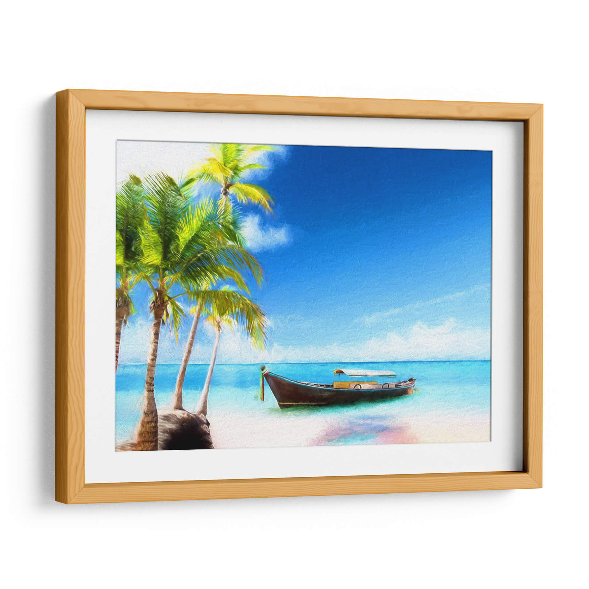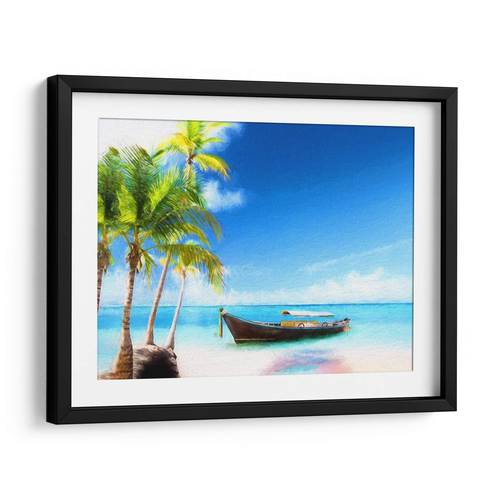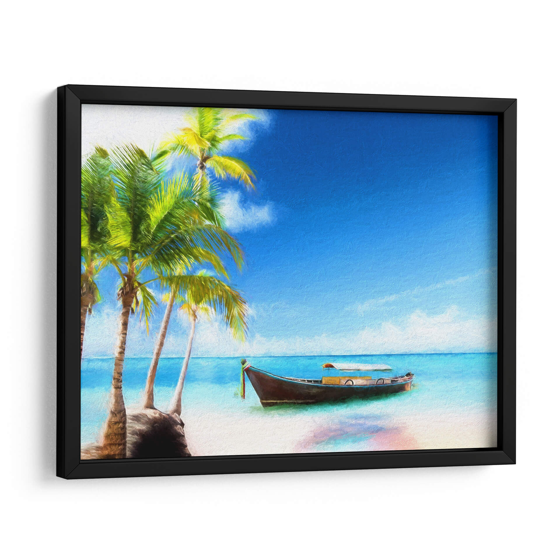 Sumérgete en la serenidad del trópico con "El Mar 13", una obra de arte cautivadora del artista Marcos Rodríguez. Este cuadro decorativo transporta al espectador a una playa paradisíaca, donde vibrantes palmeras se alzan majestuosamente contra un cielo azul intenso y despejado, salpicado por tenues nubes blancas. Las aguas cristalinas, de un turquesa translúcido, invitan a la contemplación, reflejando sutiles toques de color en la arena blanca y limpia. En el centro de la composición, una embarcación tradicional descansa plácidamente sobre el mar, evocando una sensación de calma y escapismo. La técnica pictórica utilizada, con pinceladas que recuerdan al óleo, añade una textura rica y una profundidad visual que da vida a la escena. "El Mar 13" es ideal para aquellos que buscan infundir en su hogar u oficina una atmósfera de paz, vacaciones y conexión con la naturaleza. Este lienzo es perfecto para crear un rincón de relajación en tu sala de estar, dormitorio o cualquier espacio que necesite un toque de frescura y vitalidad, transformando tu entorno en un oasis de tranquilidad y belleza natural, un verdadero escape visual.
