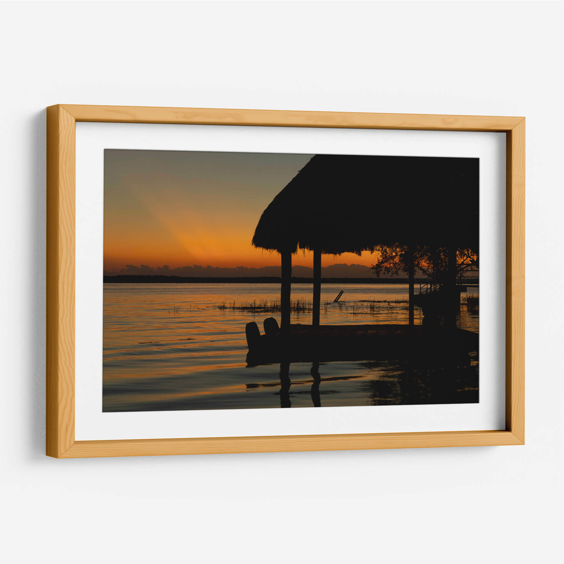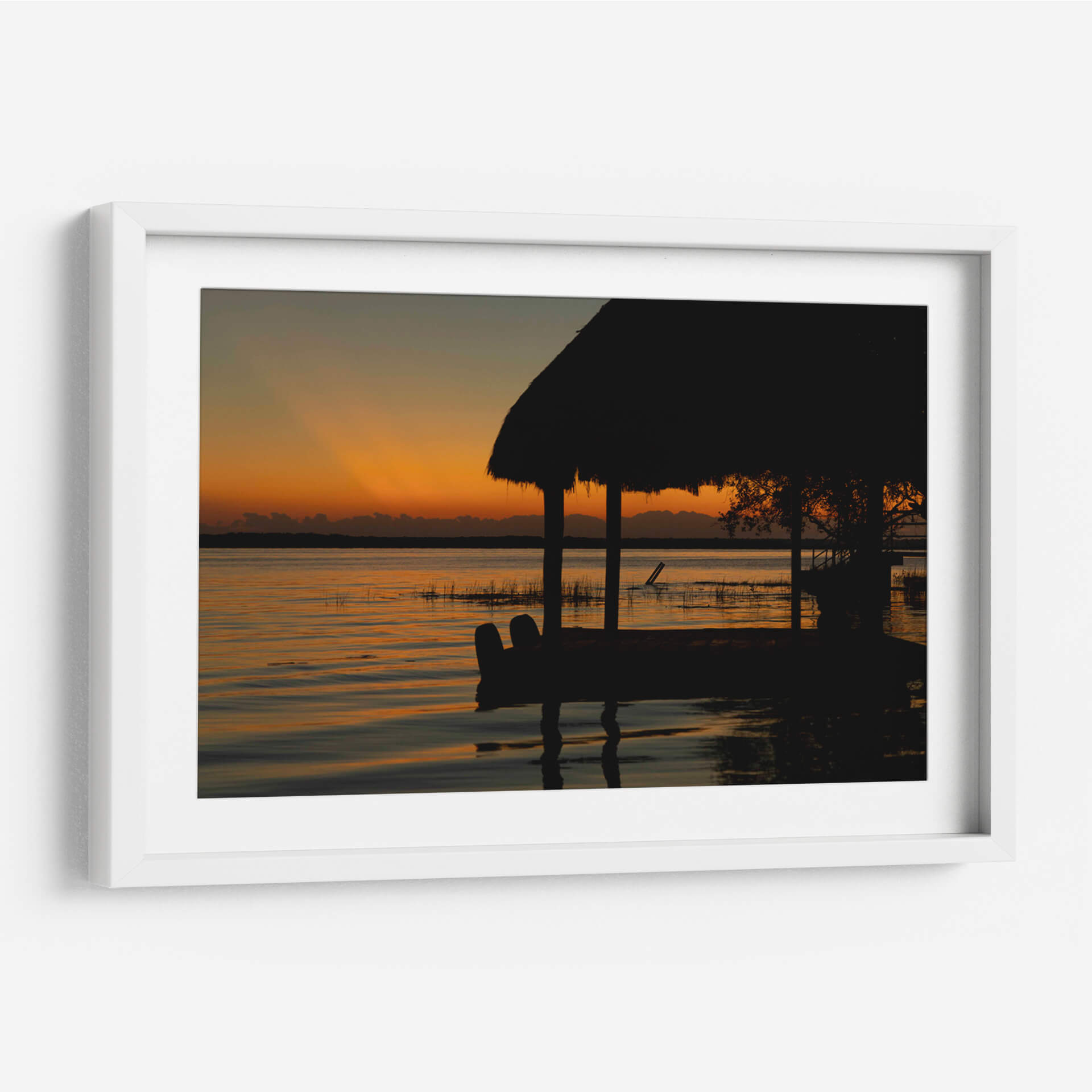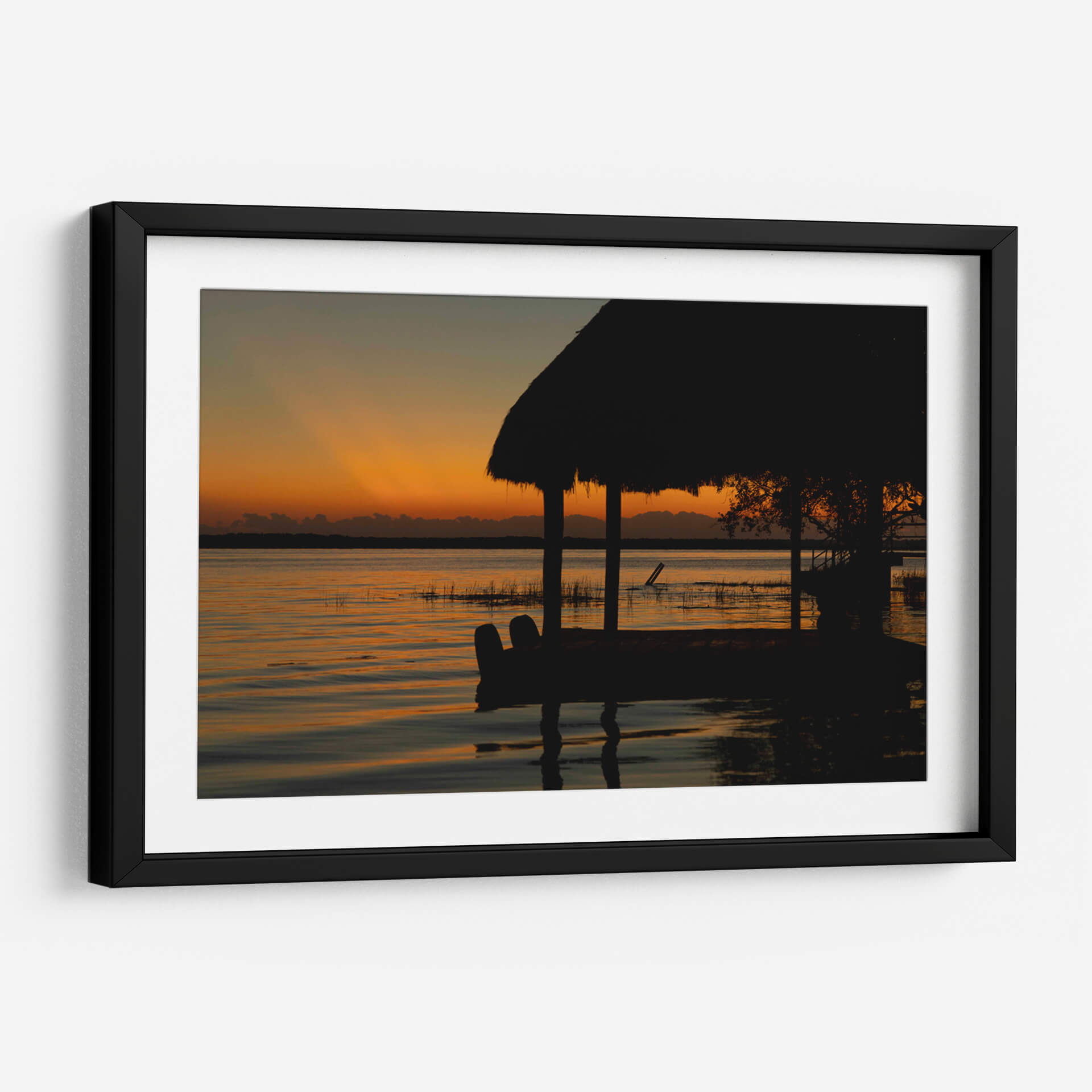 Captura la serenidad y la belleza efímera de un amanecer tropical con este evocador cuadro decorativo 'Laguna de Bacalar al amanecer'. La obra maestra de Wandering Pixels Co. te transporta a las tranquilas aguas de una laguna al despuntar el día, donde el cielo se tiñe de cálidos tonos anaranjados y dorados que se reflejan en la superficie del agua. La silueta de un muelle rústico con techo de paja añade un toque de encanto y nostalgia, invitando a la contemplación y al descanso. Observa cómo la luz suave del amanecer acaricia el paisaje, creando un ambiente de paz profunda y relajación. Los sutiles matices de azul y gris en el cielo y el agua contrastan delicadamente con los vibrantes ocres y naranjas, aportando profundidad y realismo a la escena. Este cuadro es la pieza perfecta para infundir calma y un sentido de escapismo en tu hogar u oficina. Imagina comenzar cada día contemplando esta vista inspiradora, ideal para salones que buscan un toque de naturaleza y tranquilidad, dormitorios que anhelan serenidad, o espacios de trabajo que necesitan un recordatorio de la belleza del mundo natural. Su atmósfera pacífica lo convierte en un elemento decorativo versátil que aporta calidez y sofisticación a cualquier ambiente.