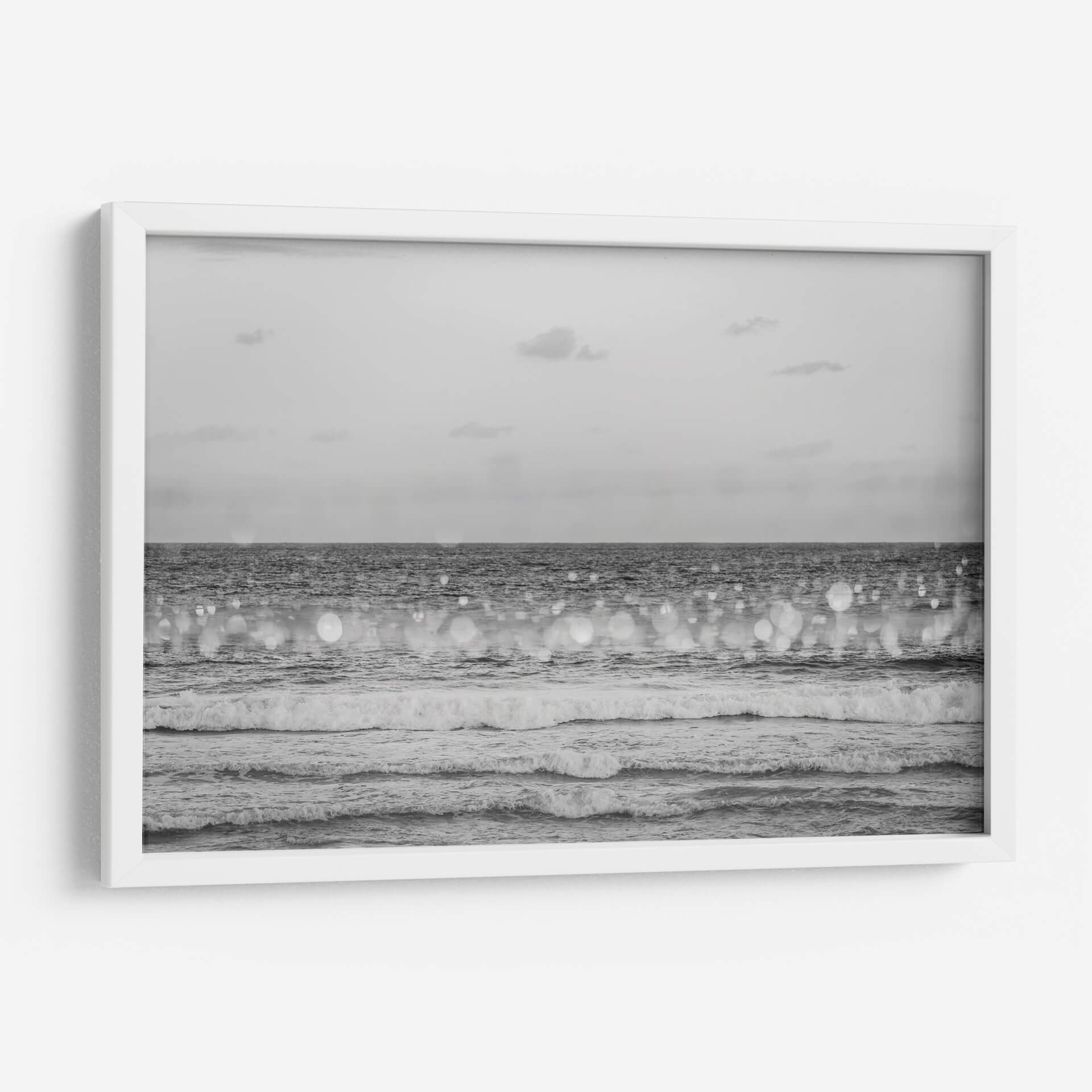 Sumérgete en la serenidad del mar con "Luces Caribeñas #2", una obra de Emilio Santamaria que captura la esencia de un paisaje costero con un toque etéreo. Esta pieza se caracteriza por su paleta de grises y blancos, que evoca una atmósfera de calma y tranquilidad, ideal para cualquier espacio que busque un respiro visual. Las olas rompiendo suavemente en la orilla y las sutiles luces bokeh que flotan sobre el agua crean una sensación de ensueño, transportando al espectador a un momento de paz y contemplación. El estilo fotográfico, con un tratamiento artístico que difumina los contornos y añade un efecto mágico, lo convierte en un cuadro decorativo moderno y sofisticado. "Luces Caribeñas #2" es perfecto para dar un toque de elegancia minimalista a tu sala de estar, dormitorio o incluso oficina, creando un punto focal sereno que invita a la relajación. Descubre la belleza sutil de la naturaleza reinterpretada por el arte contemporáneo.