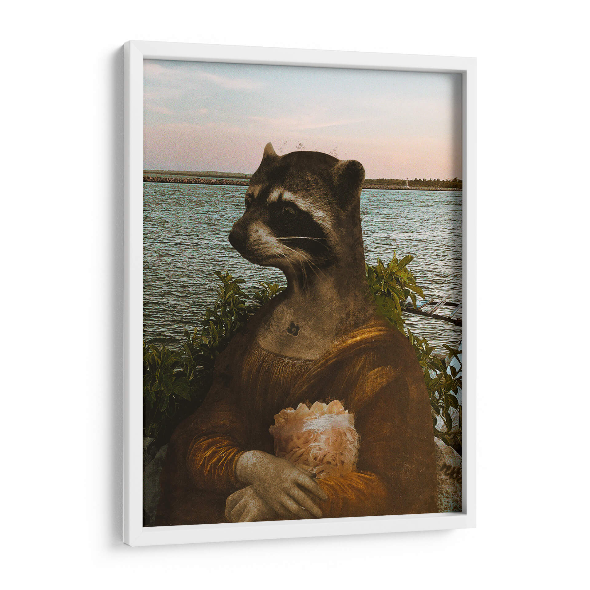 Transforma tu espacio con "Mapache Lisa Escolleras", una obra de arte intrigante y llena de carácter. Esta pieza visualmente cautivadora fusiona elementos clásicos con un toque contemporáneo, presentando un mapache con la pose icónica de la Mona Lisa, enmarcado por un sereno paisaje acuático al atardecer. La paleta de colores, dominada por tonos cálidos y terrosos que se complementan con el azul verdoso del agua y el cielo crepuscular, crea una atmósfera evocadora y ligeramente enigmática. El estilo detallado en la vestimenta y la delicadeza de las manos contrastan con la naturaleza salvaje del mapache, generando una tensión visual única que invita a la contemplación. Ideal para salones, estudios o cualquier rincón que busque un punto focal con personalidad y un aire de sofisticación lúdica. Este cuadro decorativo es perfecto para aquellos que aprecian el arte con un giro inesperado, añadiendo una pieza de conversación que estimula la imaginación y aporta un toque de originalidad a la decoración de interiores. Descubre la magia de "Mapache Lisa Escolleras" y haz de tu hogar un reflejo de tu estilo audaz y tu aprecio por el arte que desafía lo convencional.