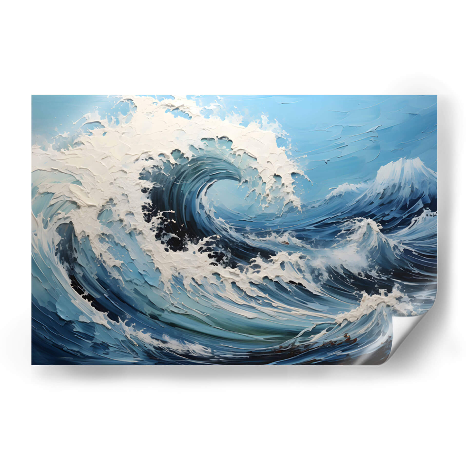 Captura la majestuosidad y la fuerza indomable del océano con "Mi Gran Ola", una obra de arte que evoca la potencia de la naturaleza. Este cuadro decorativo, del artista Dav Madrid, presenta una representación dinámica y texturizada de una ola rompiendo, llena de movimiento y vida. La paleta de azules profundos, turquesas vibrantes y blancos espumosos crea una atmósfera de energía y frescura, transportando al espectador a la orilla del mar. Las pinceladas audaces y la aplicación empastada de la pintura añaden una dimensión táctil y visual impactante, invitando a admirar cada detalle. "Mi Gran Ola" es perfecta para aquellos que buscan infundir a sus espacios una sensación de vitalidad y conexión con el poder del mar. Ideal para salones modernos, oficinas o cualquier lugar donde se desee un toque de drama natural y serenidad oceánica. Este cuadro decorativo es más que una simple pieza de arte; es una ventana a la inmensidad y la belleza salvaje del océano, diseñada para inspirar y transformar tu entorno con su cautivadora presencia.