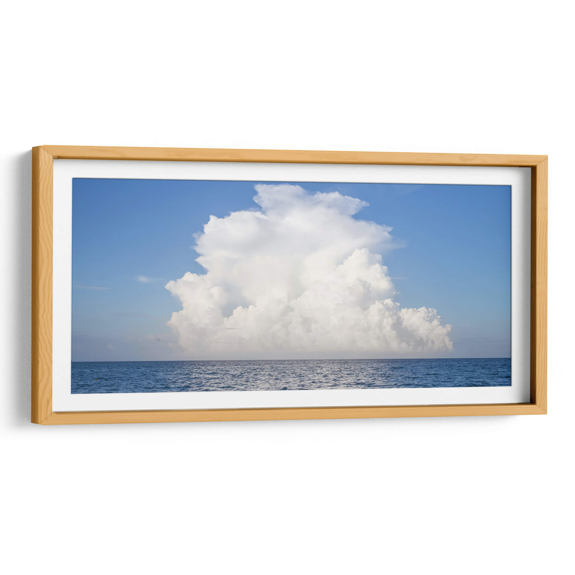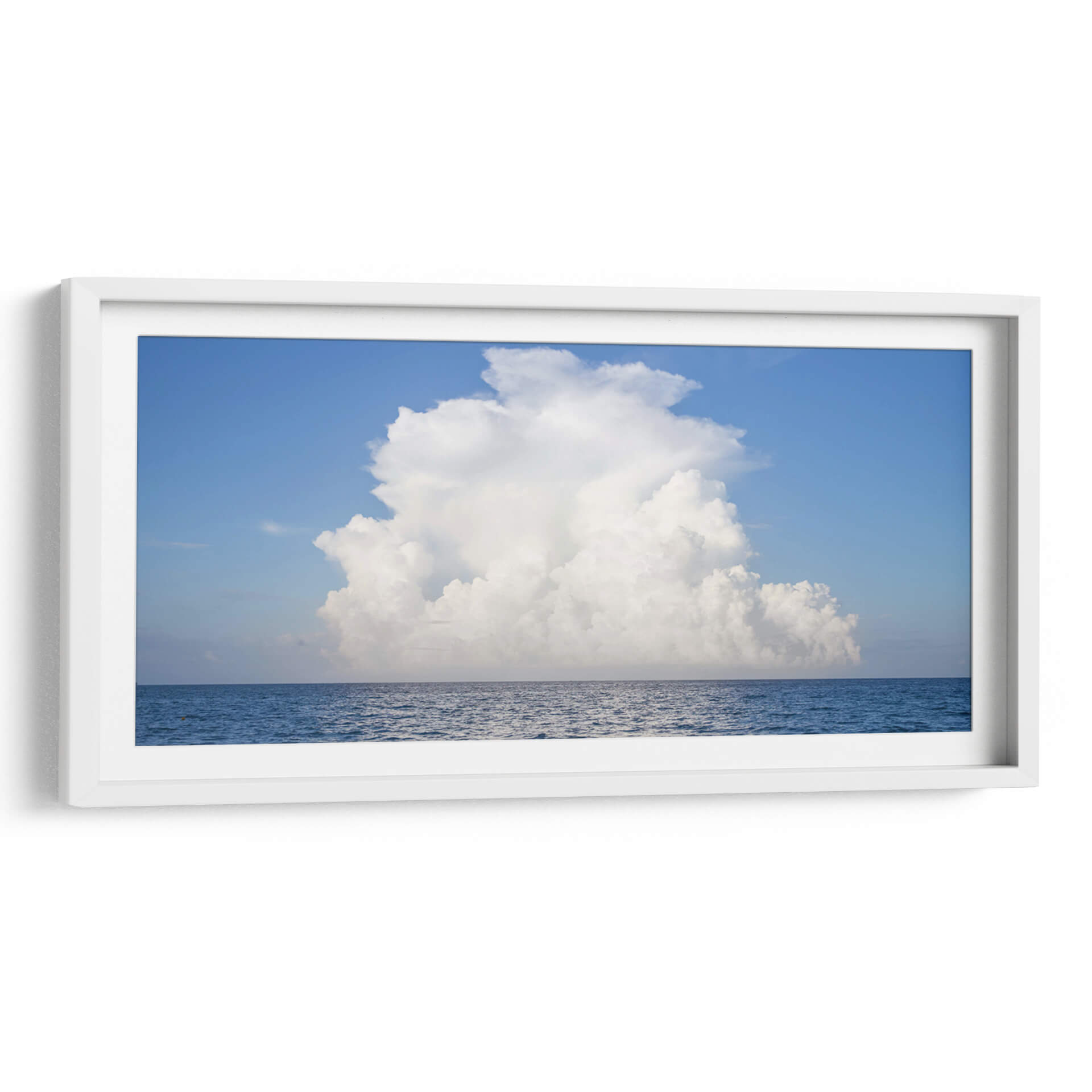 Captura la serenidad y la inmensidad del cielo con este impresionante cuadro decorativo "Nube" de Emilio Santamaria. La obra presenta una imponente nube blanca y esponjosa que se alza majestuosamente sobre un mar azul profundo y tranquilo. La paleta de colores, dominada por el azul vibrante del cielo y el océano, junto con el blanco puro de la nube, crea una atmósfera de calma y contemplación. La composición minimalista, dividida en dos tercios de cielo y un tercio de mar, realza la majestuosidad de la nube central, invitando a la reflexión y a la conexión con la naturaleza. Este cuadro decorativo es perfecto para cualquier espacio que busque transmitir paz y amplitud. Imagina cómo esta pieza puede transformar tu sala de estar en un oasis de tranquilidad, o cómo puede añadir un toque de serenidad a tu dormitorio. Ideal para amantes de la fotografía paisajística y el arte minimalista, "Nube" es una invitación a la introspección, un recordatorio de la belleza simple y poderosa que nos rodea. Añade esta obra maestra a tu colección y deja que su atmósfera pacífica llene tu hogar de luz y serenidad.