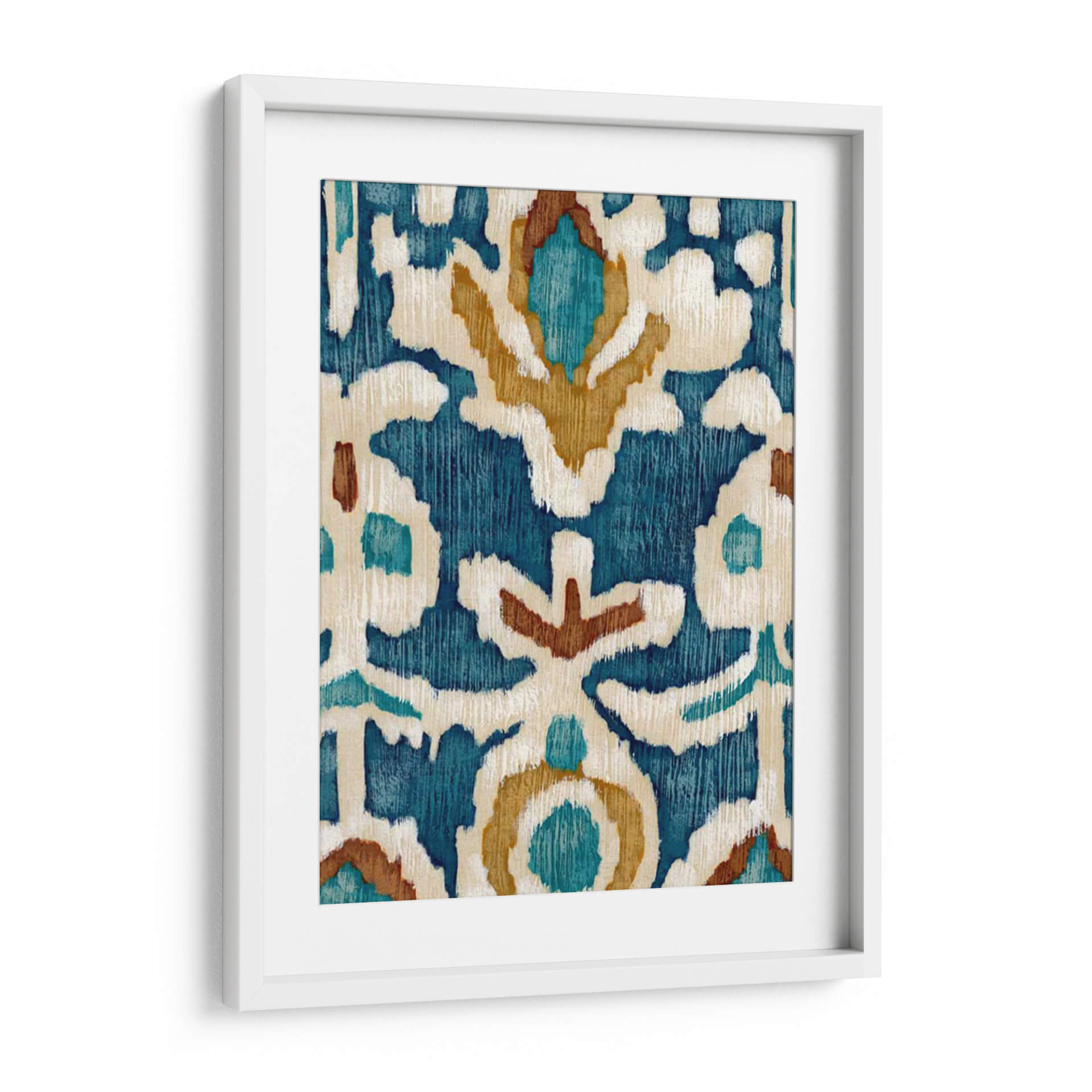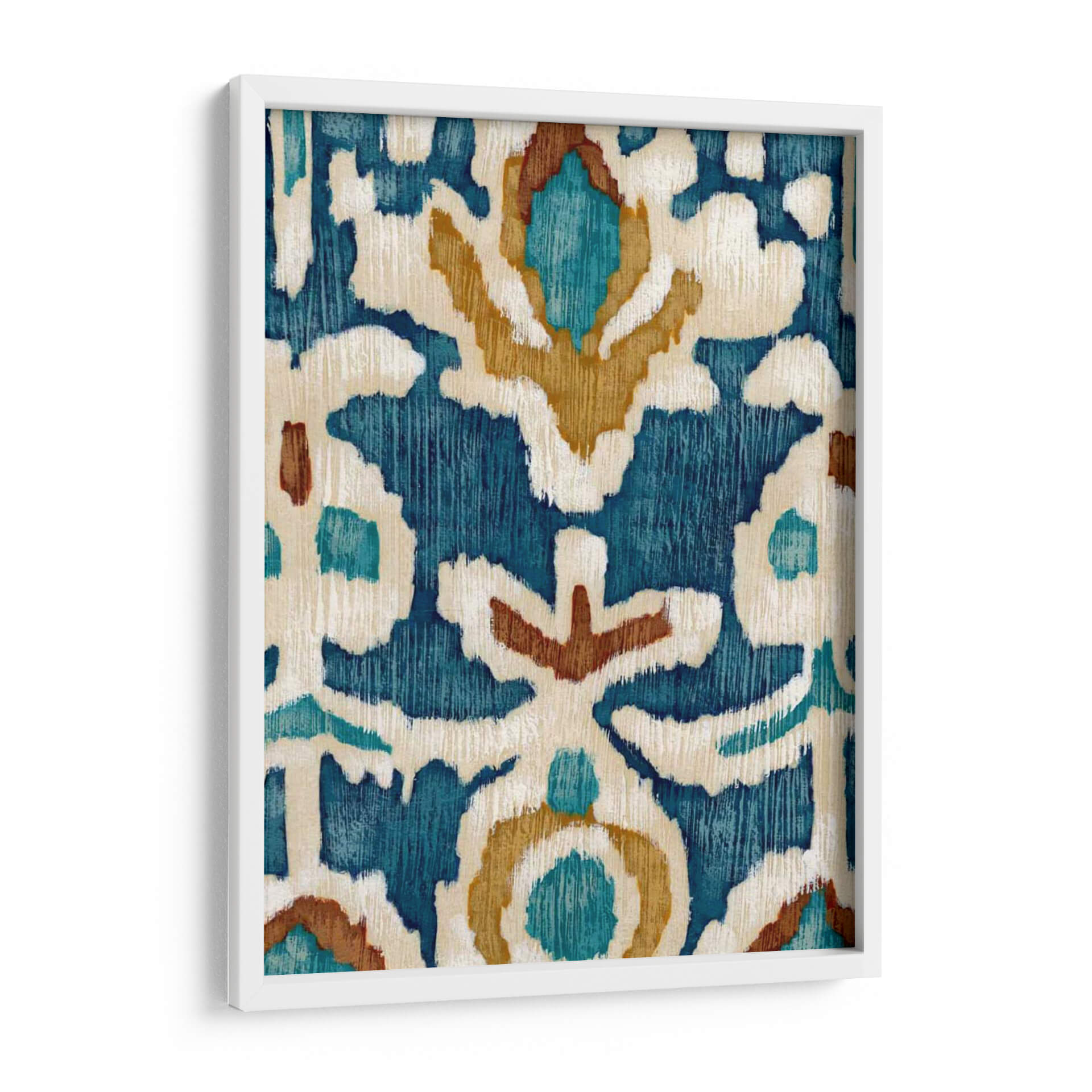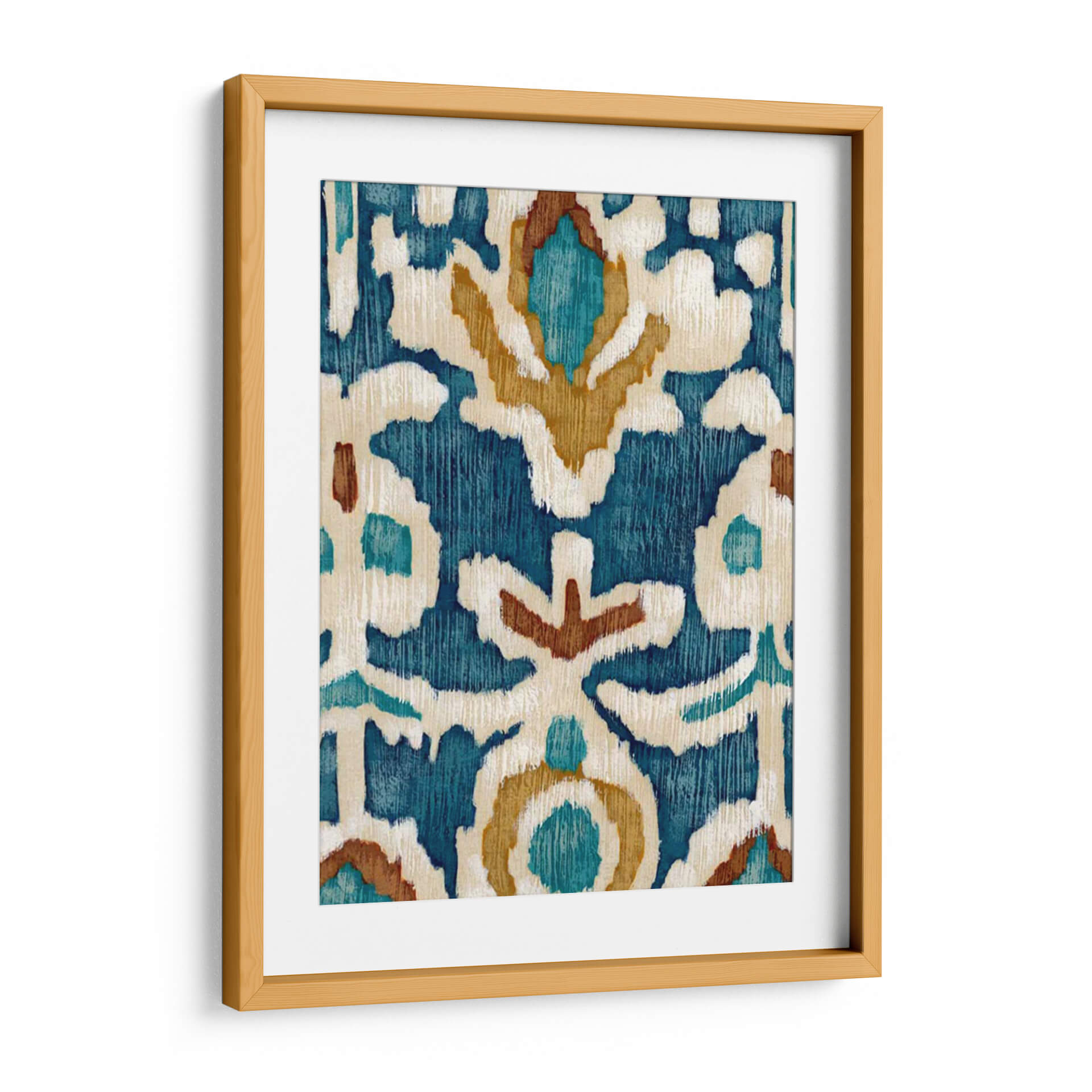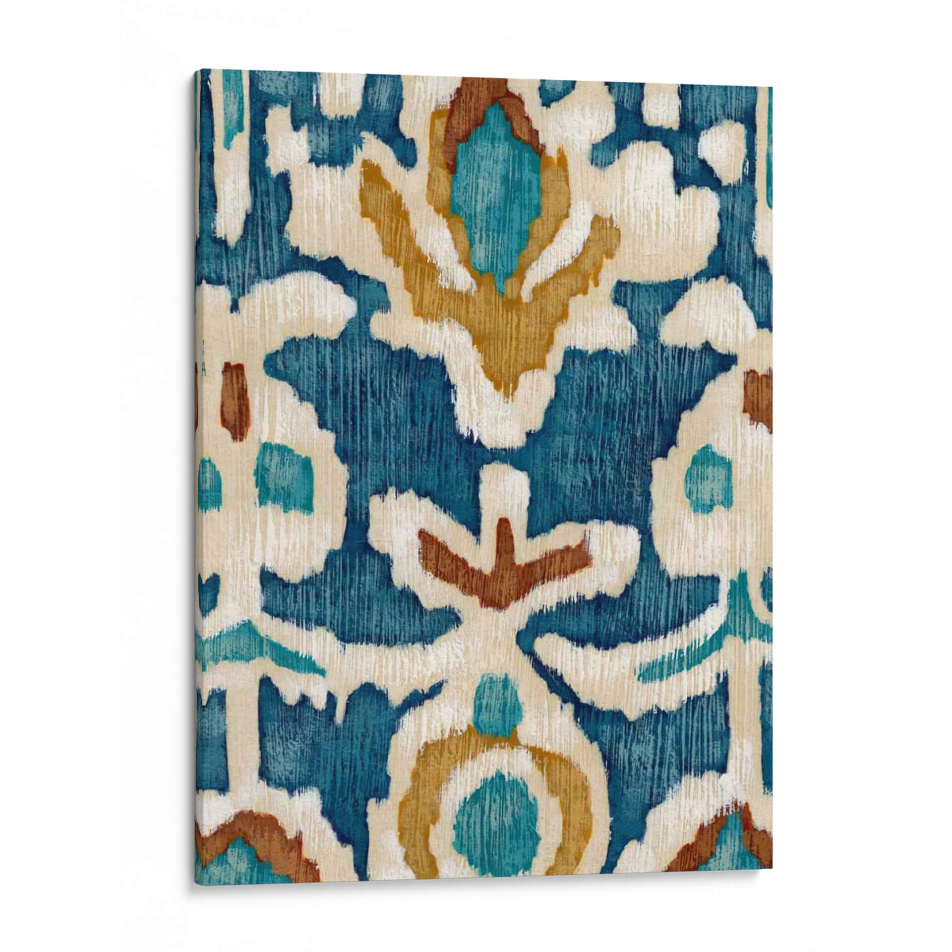 Sumérgete en la profundidad y el encanto de "Océano Ikat I", una obra de arte contemporáneo de Chariklia Zarris que evoca la mística del tejido Ikat con un toque moderno. Este cuadro decorativo presenta un patrón intrincado y dinámico, dominado por profundos tonos de azul, acentos vibrantes de turquesa y toques cálidos de ocre y terracota. Las pinceladas visibles y la textura simulada añaden una cualidad táctil y artesanal, invitando a la contemplación. La composición simétrica pero fluida crea un equilibrio visual cautivador, ideal para infundir serenidad y un aire bohemio-chic en cualquier espacio. Perfecto para salones, dormitorios o estudios que buscan una pieza con carácter y estilo, este arte de pared se convierte en un punto focal que inspira calma y creatividad. Su diseño abstracto inspirado en patrones étnicos lo hace versátil, complementando tanto decoraciones modernas como tradicionales. Añade una dimensión de sofisticación y un toque de exotismo a tu hogar con "Océano Ikat I", una pieza que transforma las paredes en lienzos de inspiración.