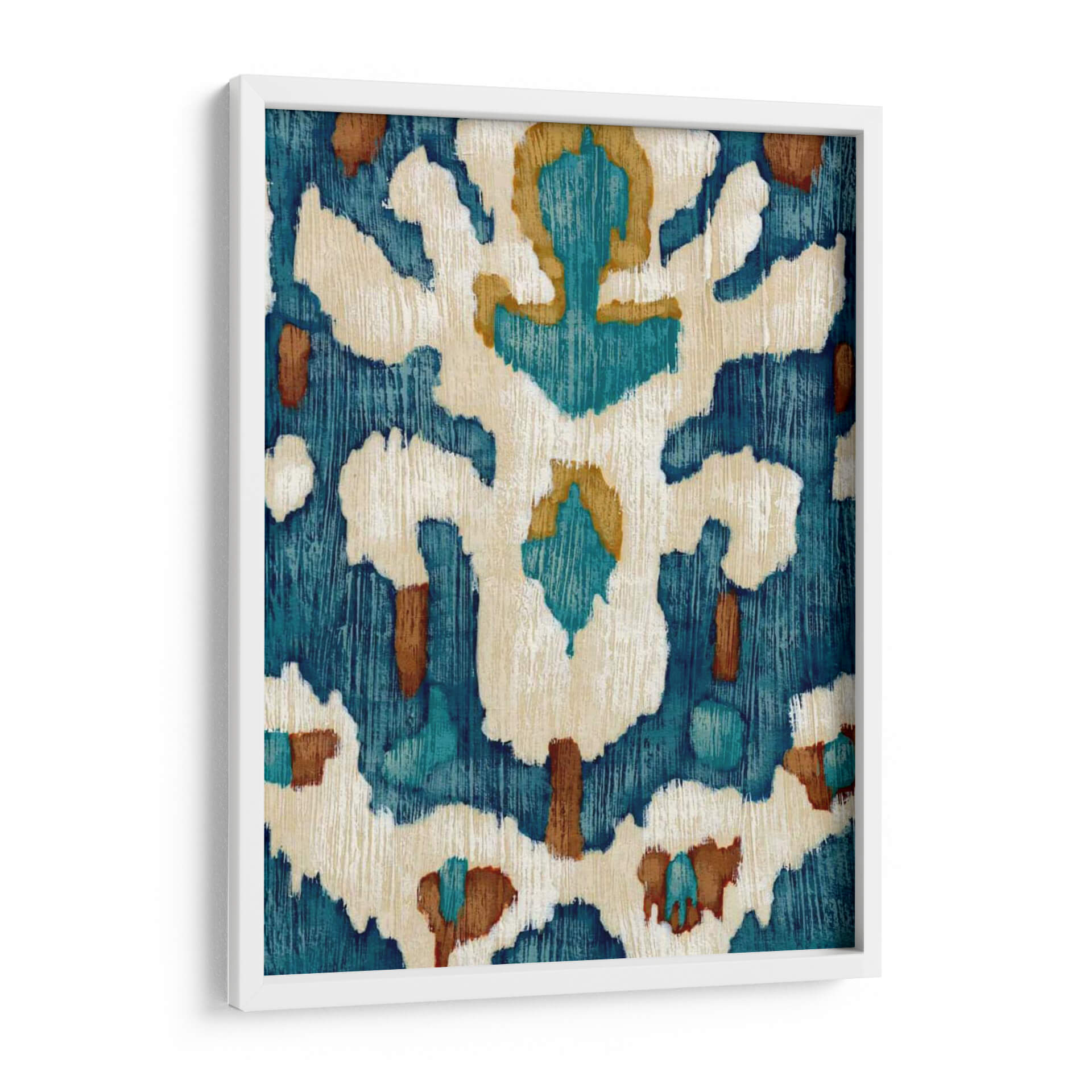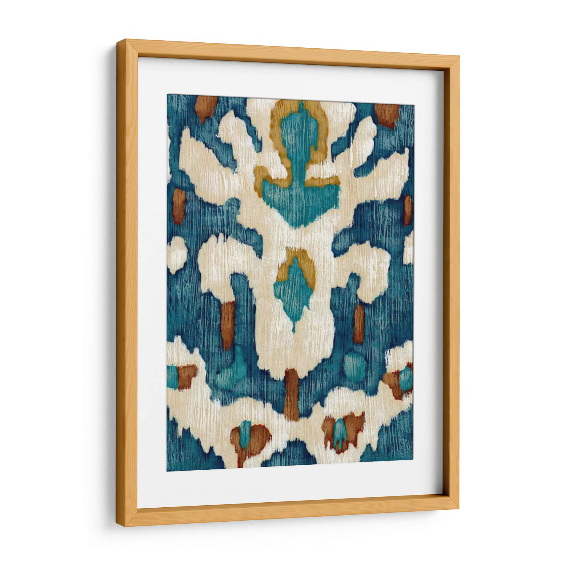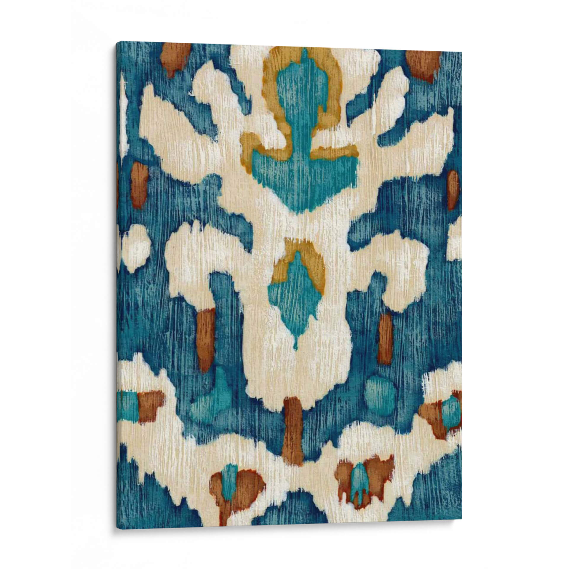 Sumérgete en la serena belleza de 'Océano Ikat IV', una obra de arte contemporáneo que evoca la profundidad y la calma del mar. Esta pieza, creada por Chariklia Zarris, presenta un diseño abstracto inspirado en la técnica Ikat, donde los patrones fluidos y orgánicos se entrelazan sobre un fondo texturizado que recuerda a las olas o las corrientes marinas. La paleta de colores, dominada por profundos tonos de azul, contrastados con toques de blanco cremoso, ocre dorado y marrón terroso, crea una atmósfera de tranquilidad y elegancia. Cada pincelada y matiz parece flotar, invitando a la contemplación y aportando una sensación de movimiento sutil pero cautivador. El estilo abstracto y la composición simétrica pero fluida hacen de este cuadro decorativo una adición versátil para cualquier espacio. Es ideal para añadir un toque de sofisticación y serenidad a una sala de estar moderna, un dormitorio o incluso un espacio de oficina, transformando el ambiente en un oasis de paz visual. 'Océano Ikat IV' no es solo una obra de arte, sino una ventana a un mundo de texturas y colores que inspiran y relajan, una pieza esencial para quienes buscan infundir a su hogar un aire de estilo y serenidad marina.