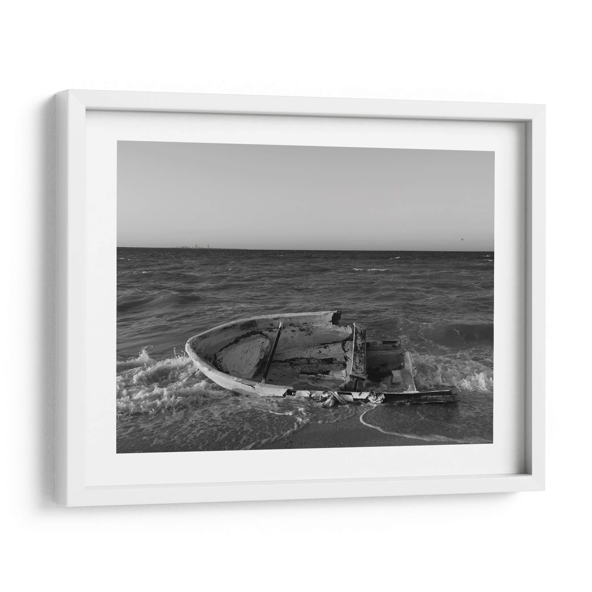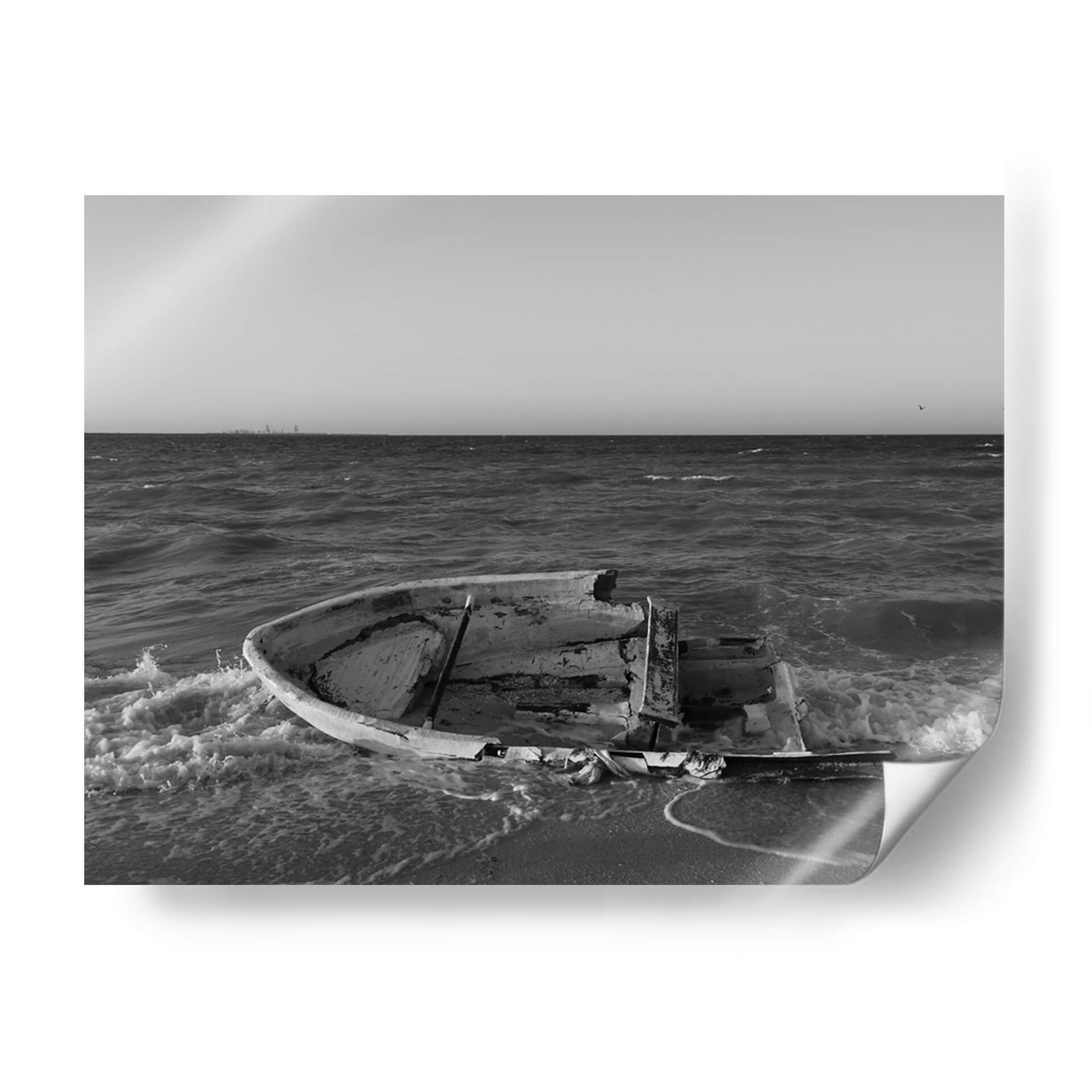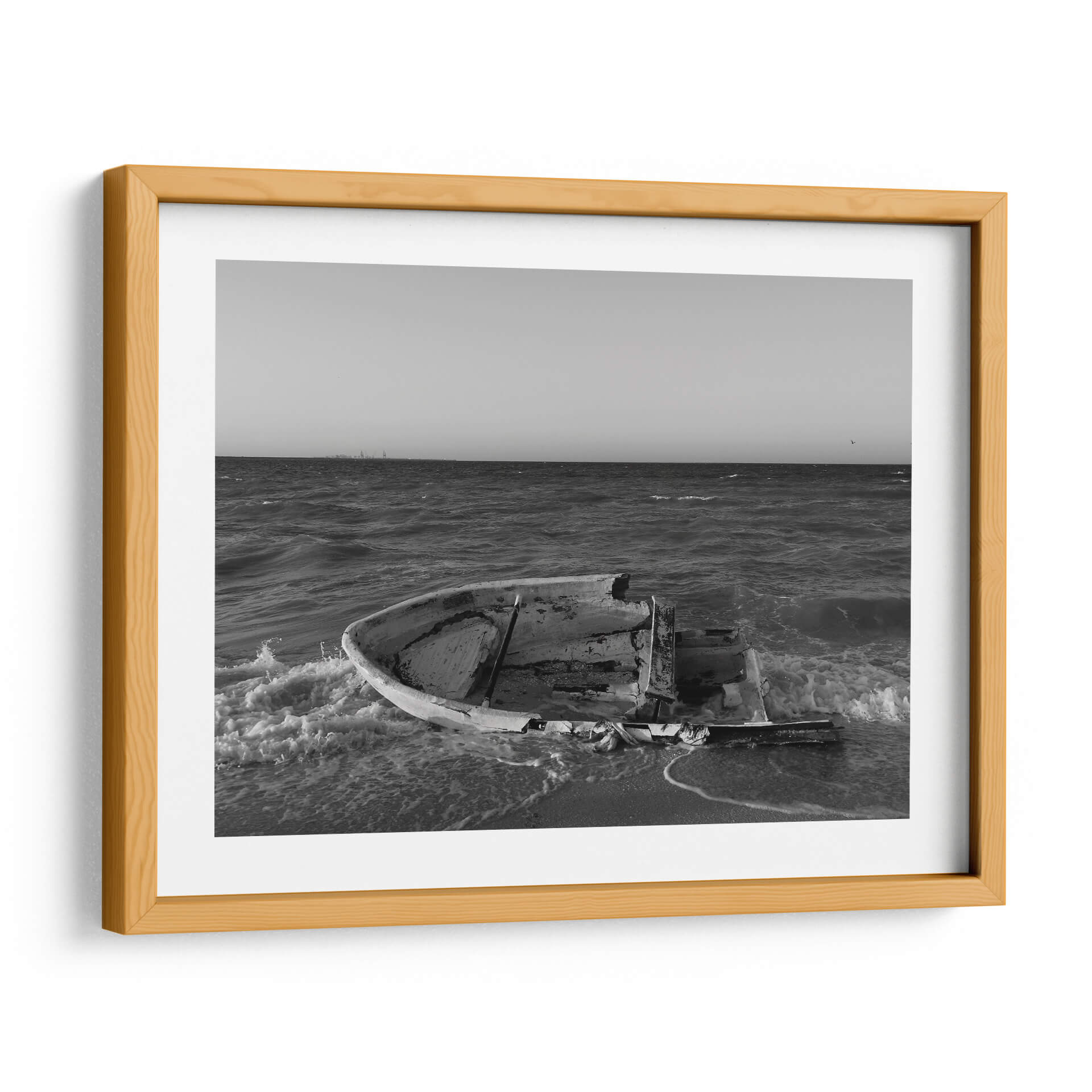 Sumérgete en la melancolía y la belleza del abandono con "Olvido", una obra fotográfica en blanco y negro del artista Hugo Segura. Esta impactante pieza captura un bote semihundido en la orilla, a merced de las olas que rompen suavemente sobre la arena. La fotografía, con su estética monocromática, realza las texturas del mar agitado y el deterioro de la embarcación, creando una atmósfera de reflexión sobre el paso del tiempo y la impermanencia. La composición, que sitúa el horizonte a dos tercios de la imagen, enfatiza la inmensidad del océano y la soledad del sujeto principal. Los sutiles detalles, como la lejanía de una silueta industrial y un pájaro diminuto en el cielo, añaden capas de significado a la narrativa visual. "Olvido" es ideal para espacios que buscan evocar introspección y serenidad, como un estudio, una biblioteca o un dormitorio, aportando un toque de profundidad y carácter. Este cuadro decorativo invita a la contemplación, convirtiéndose en un punto focal que dialoga con la quietud y la fuerza de la naturaleza, y los ecos de historias pasadas. Es una pieza que, a pesar de su temática, irradia una serena dignidad.
