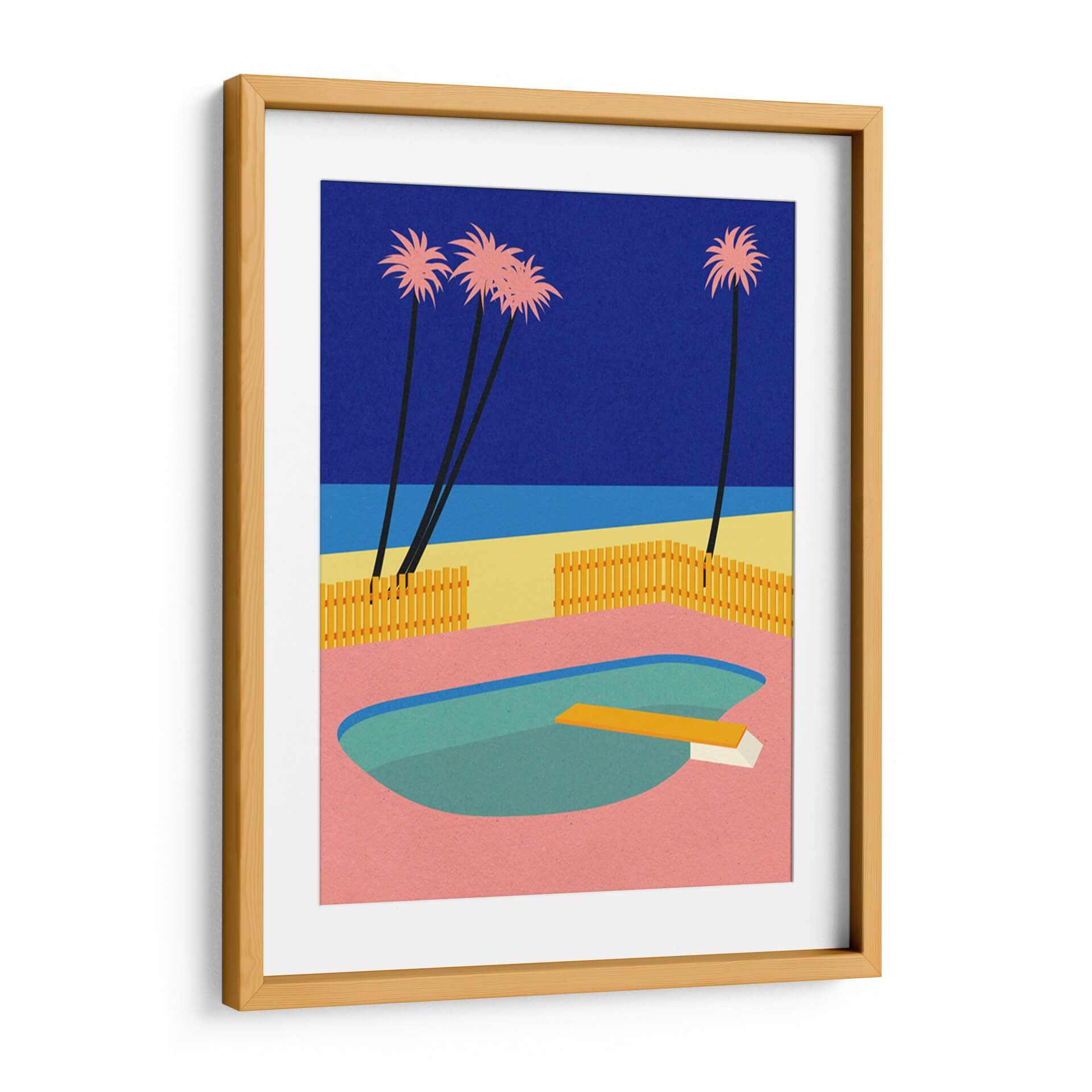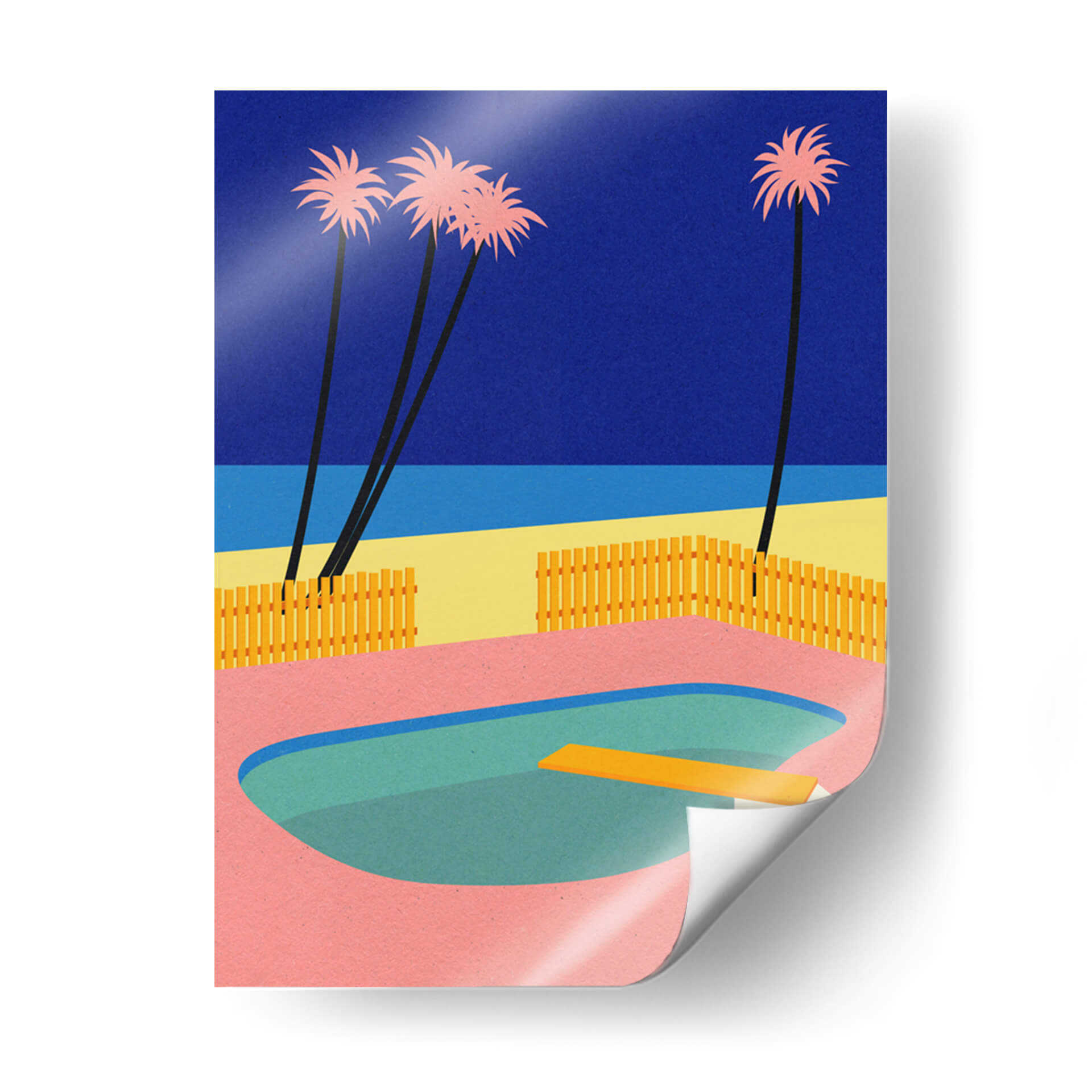 Sumérgete en la vibrante escena costera de "Playa de Malibú", una obra de arte que captura la esencia del verano y la relajación con un estilo gráfico distintivo. Esta pieza de Rosi Feist te transporta a un paraíso vacacional con su audaz paleta de colores, dominada por un profundo azul nocturno que contrasta con el cálido amarillo de la arena y el sereno tono turquesa de la piscina. Las siluetas estilizadas de palmeras se alzan contra el cielo, evocando la brisa marina y la calidez del trópico. La composición, con líneas limpias y formas geométricas, crea una atmósfera moderna y sofisticada, mientras que los vibrantes toques de rosa en el borde de la piscina y el toque de amarillo en el trampolín añaden un aire juguetón y optimista. Este cuadro decorativo es ideal para inyectar energía y un toque de escapismo a cualquier espacio, ya sea una sala de estar contemporánea, un dormitorio que busca un oasis de paz o una oficina que necesita un punto focal inspirador. "Playa de Malibú" es más que una simple decoración; es una invitación a soñar con días soleados y momentos de tranquilidad.