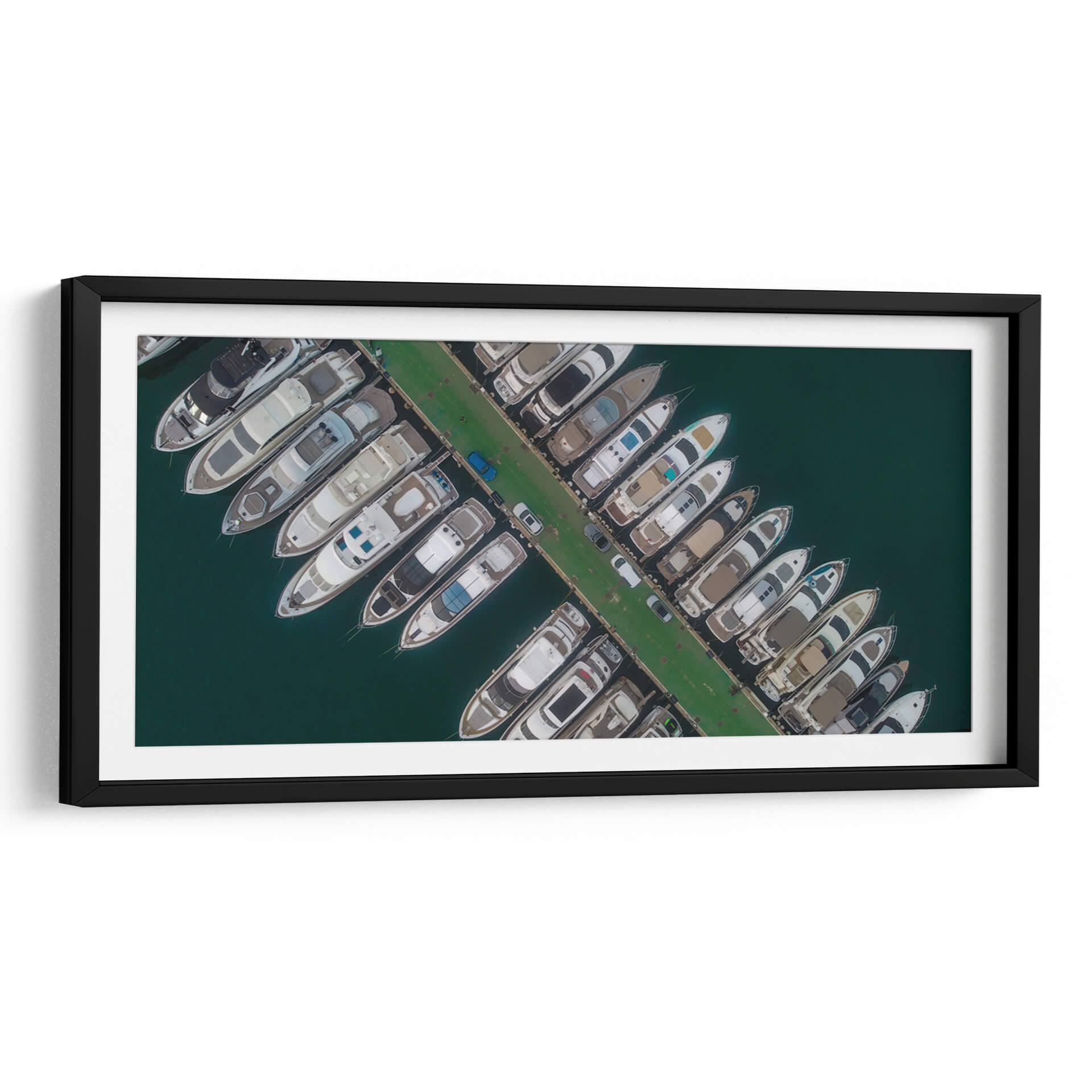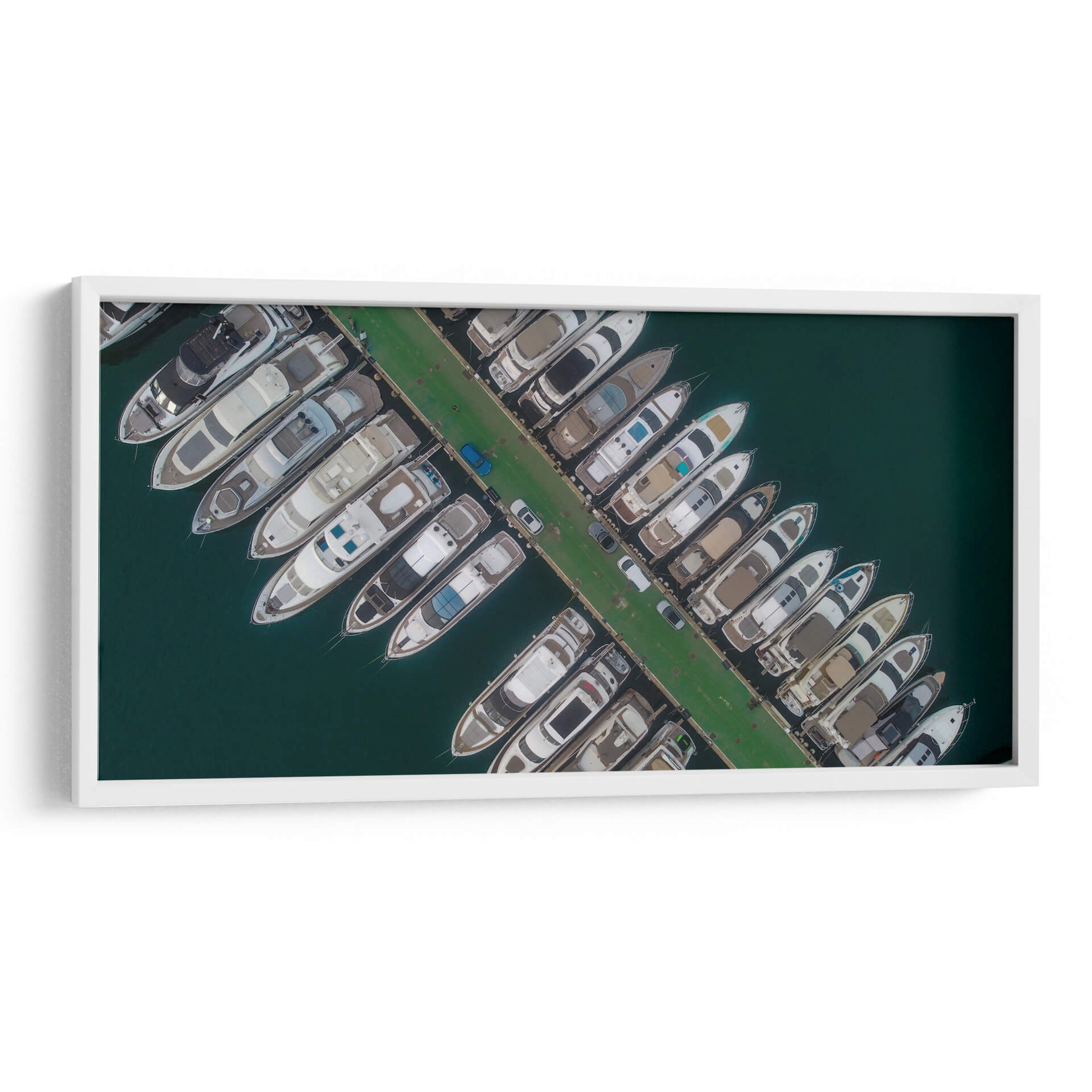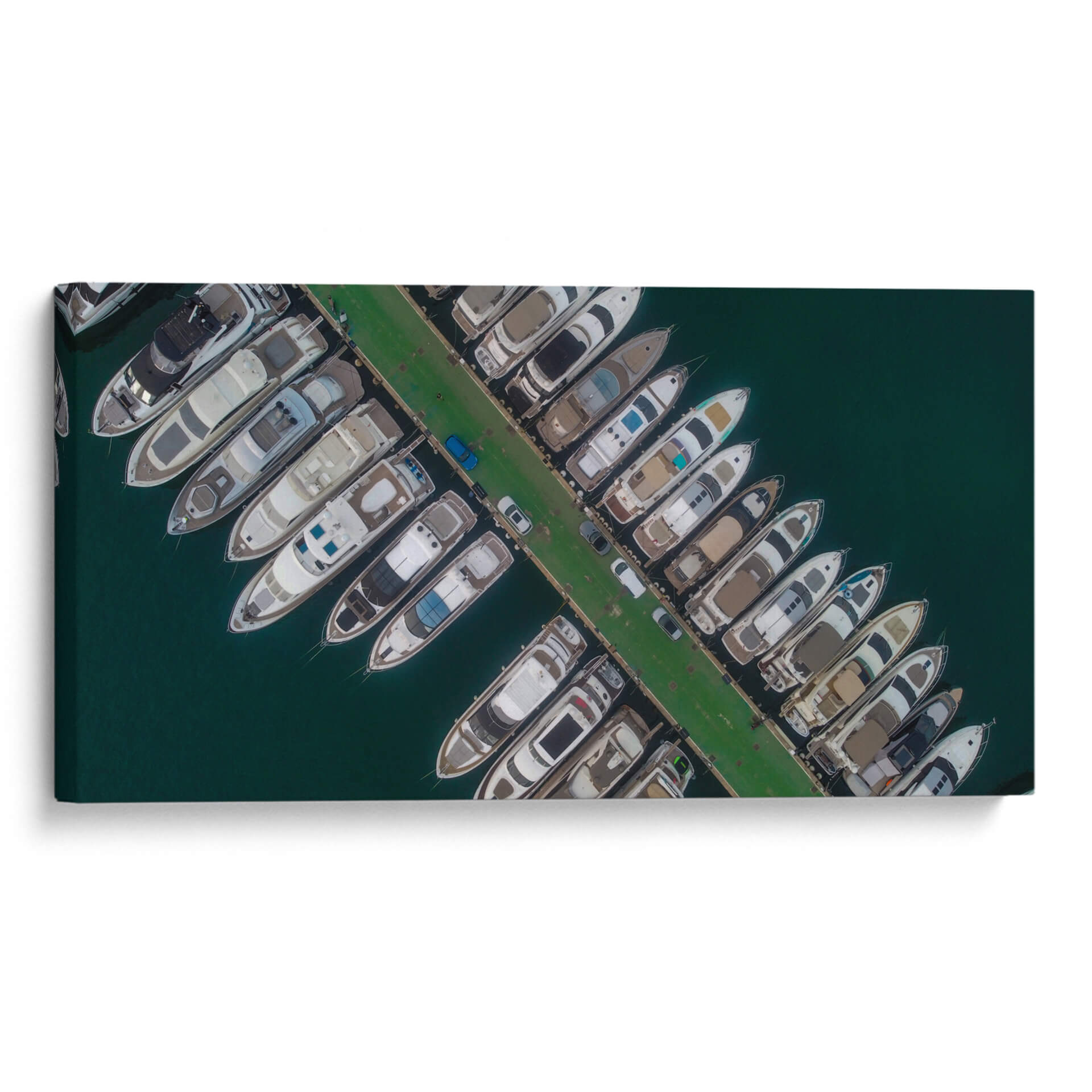 Sumérgete en la elegancia y la serenidad del mar con este cautivador cuadro decorativo que captura la esencia de un puerto deportivo al amanecer. La obra 'Portals' del artista LuisFloresPhoto te transporta a un mundo de tranquilidad y sofisticación, mostrando una hilera de yates de lujo alineados perfectamente a lo largo de un muelle verde vibrante. La composición aérea ofrece una perspectiva única, resaltando las líneas limpias de las embarcaciones y el profundo azul verdoso del agua que las rodea. Los tonos predominantes, que varían desde el blanco puro de los cascos hasta los ricos matices del mar, crean una atmósfera de calma y exclusividad. Este cuadro decorativo es ideal para añadir un toque de refinamiento y un recordatorio de las escapadas vacacionales a tu sala de estar, dormitorio o estudio. Su estilo contemporáneo y su temática náutica lo convierten en una pieza versátil, capaz de complementar tanto decoraciones modernas como clásicas. Transforma tu espacio en un oasis de paz y estilo con esta impresionante vista panorámica de un puerto lleno de promesas y belleza.