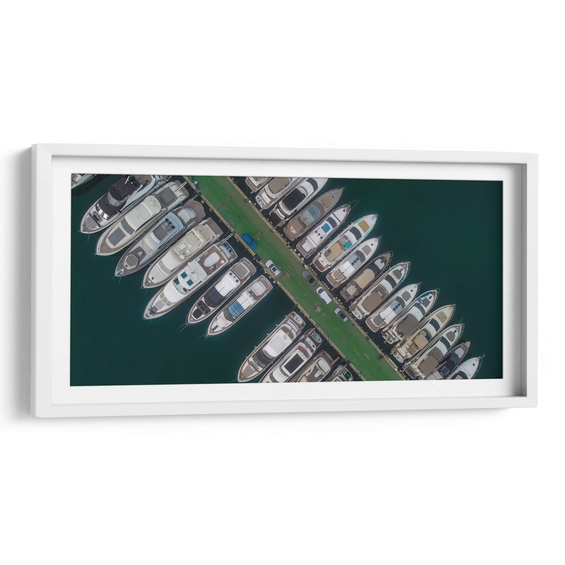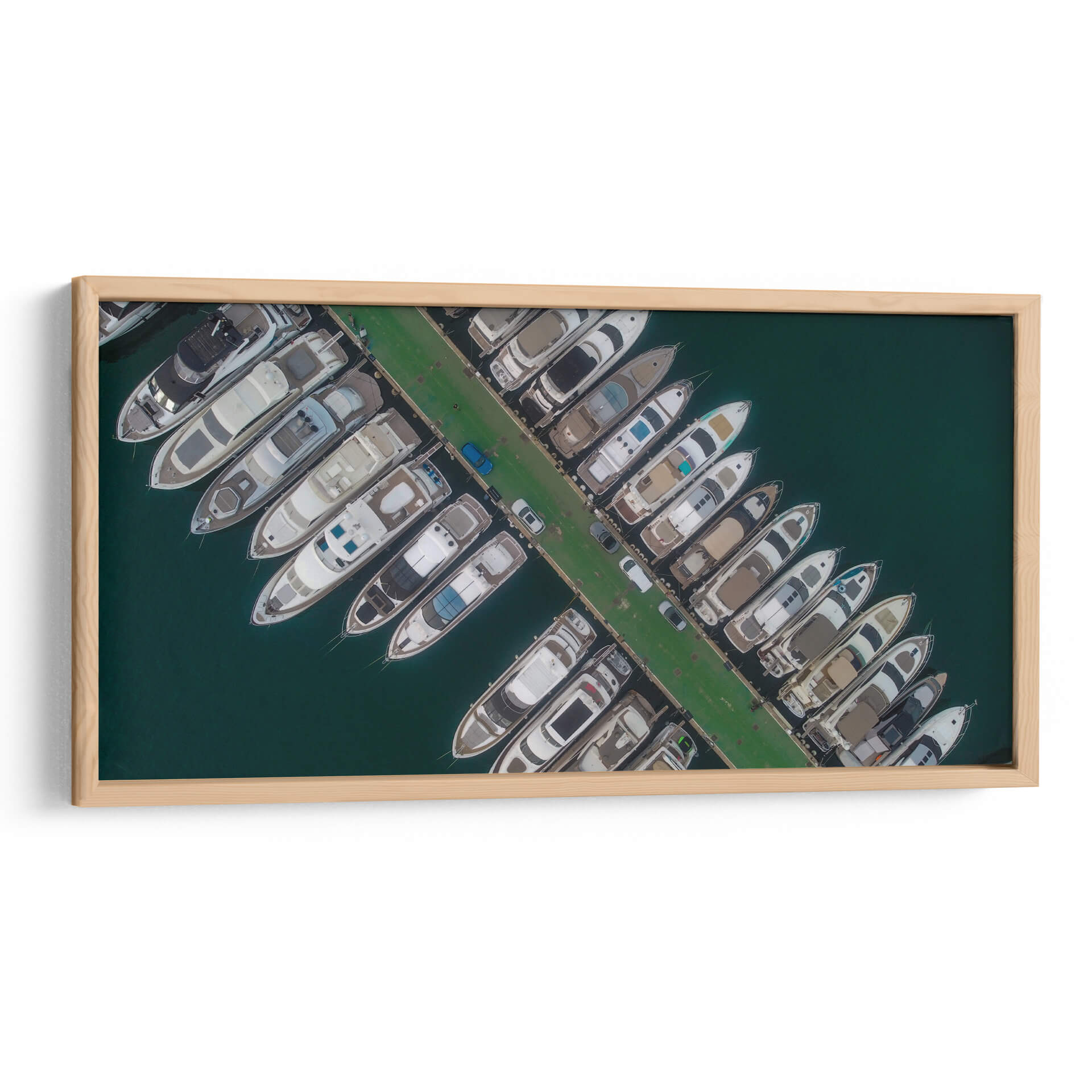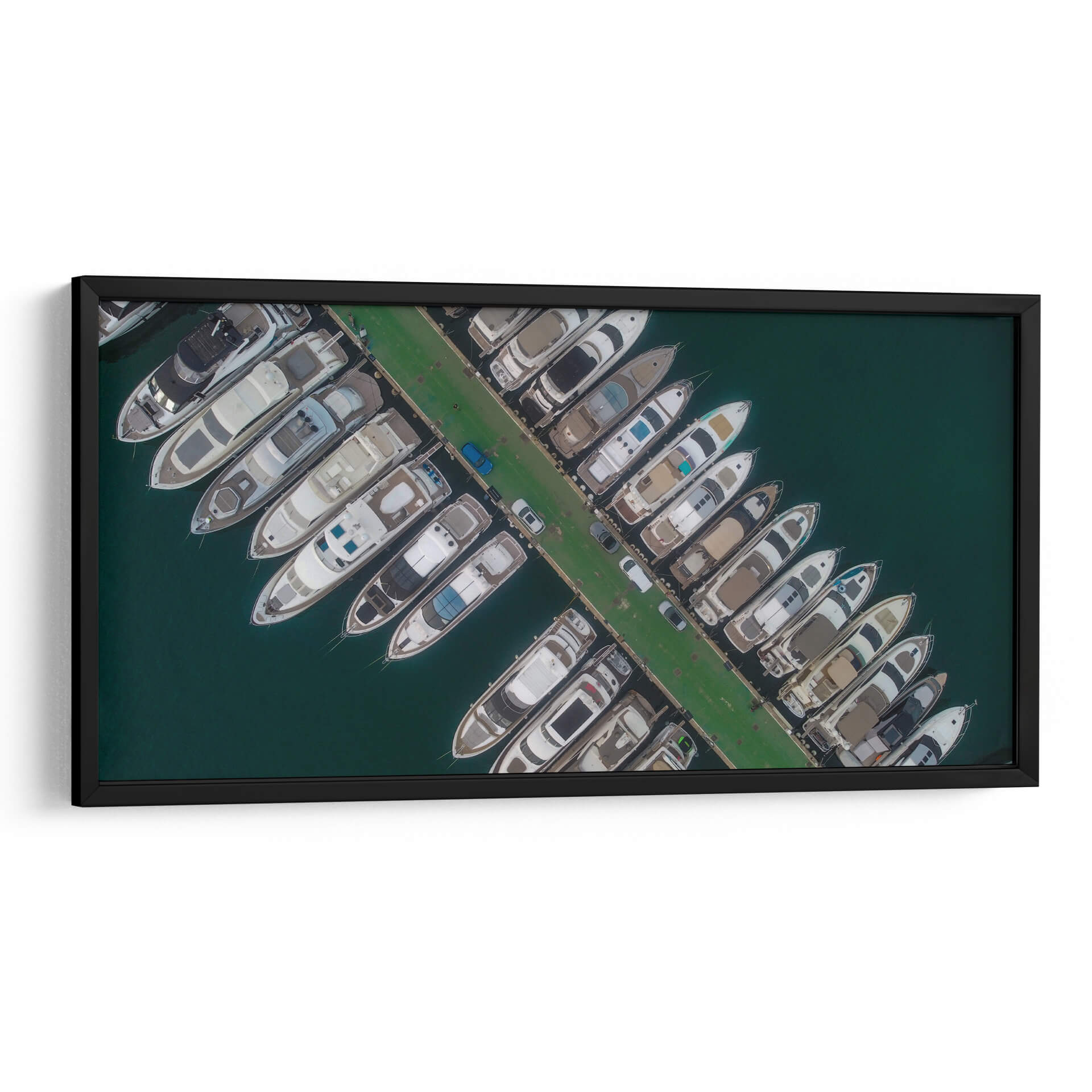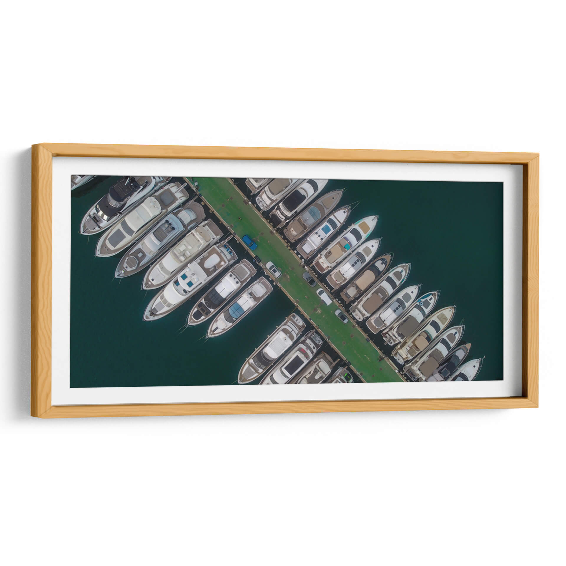 Sumérgete en la elegancia y la serenidad del mar con este cautivador cuadro decorativo que captura la esencia de un puerto deportivo al amanecer. La obra 'Portals' del artista LuisFloresPhoto te transporta a un mundo de tranquilidad y sofisticación, mostrando una hilera de yates de lujo alineados perfectamente a lo largo de un muelle verde vibrante. La composición aérea ofrece una perspectiva única, resaltando las líneas limpias de las embarcaciones y el profundo azul verdoso del agua que las rodea. Los tonos predominantes, que varían desde el blanco puro de los cascos hasta los ricos matices del mar, crean una atmósfera de calma y exclusividad. Este cuadro decorativo es ideal para añadir un toque de refinamiento y un recordatorio de las escapadas vacacionales a tu sala de estar, dormitorio o estudio. Su estilo contemporáneo y su temática náutica lo convierten en una pieza versátil, capaz de complementar tanto decoraciones modernas como clásicas. Transforma tu espacio en un oasis de paz y estilo con esta impresionante vista panorámica de un puerto lleno de promesas y belleza.