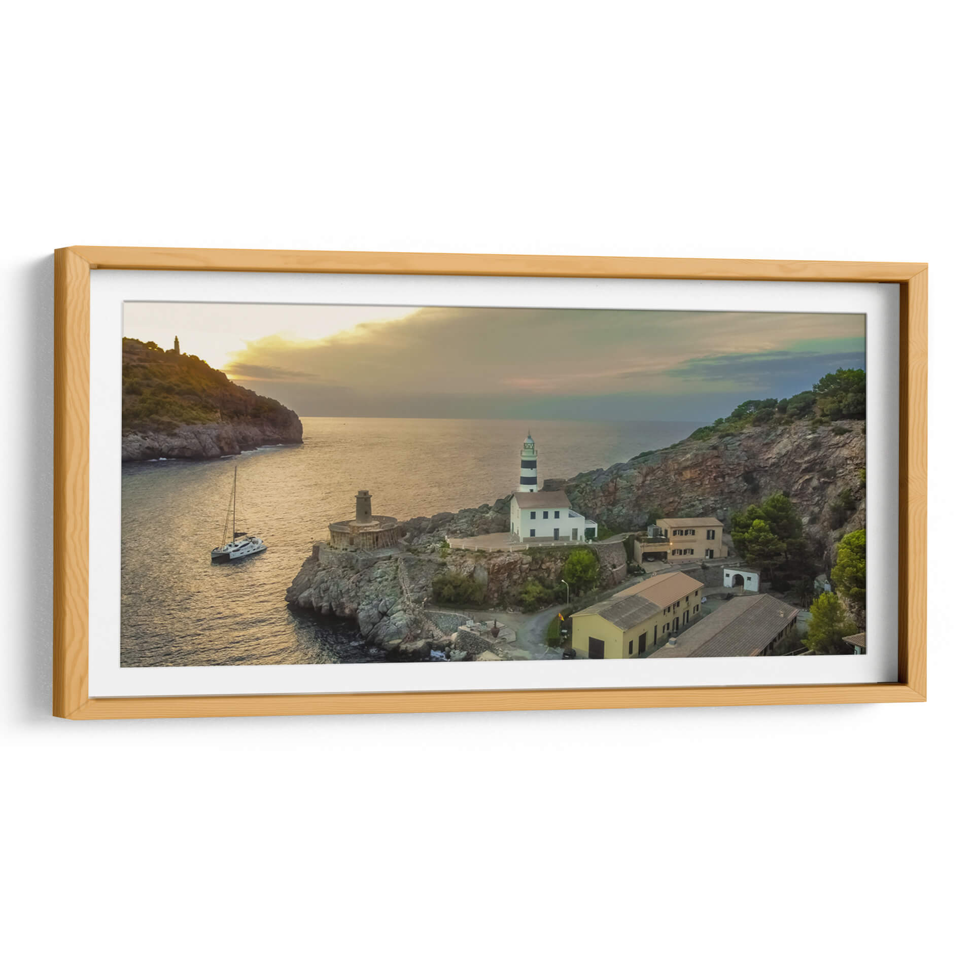 Captura la esencia de la tranquilidad mediterránea con nuestro cuadro decorativo "Puerto de Soller", una obra que evoca la serenidad de un atardecer costero. Esta pieza visualmente cautivadora muestra un pintoresco puerto dominado por un faro icónico, con una embarcación a vela navegando en las serenas aguas. La paleta de colores, dominada por tonos cálidos de dorado y ocre, junto con azules y verdes sutiles del mar y el cielo, crea una atmósfera de paz y contemplación. La composición detallada, que incluye casas de estilo mediterráneo y la majestuosidad de los acantilados, invita a la inmersión. Este cuadro decorativo es ideal para añadir un toque de escapismo y calma a tu salón, dormitorio o cualquier espacio que necesite un respiro visual. Perfecto para amantes de la fotografía paisajística y aquellos que buscan piezas que transmitan una sensación de viaje y descubrimiento.