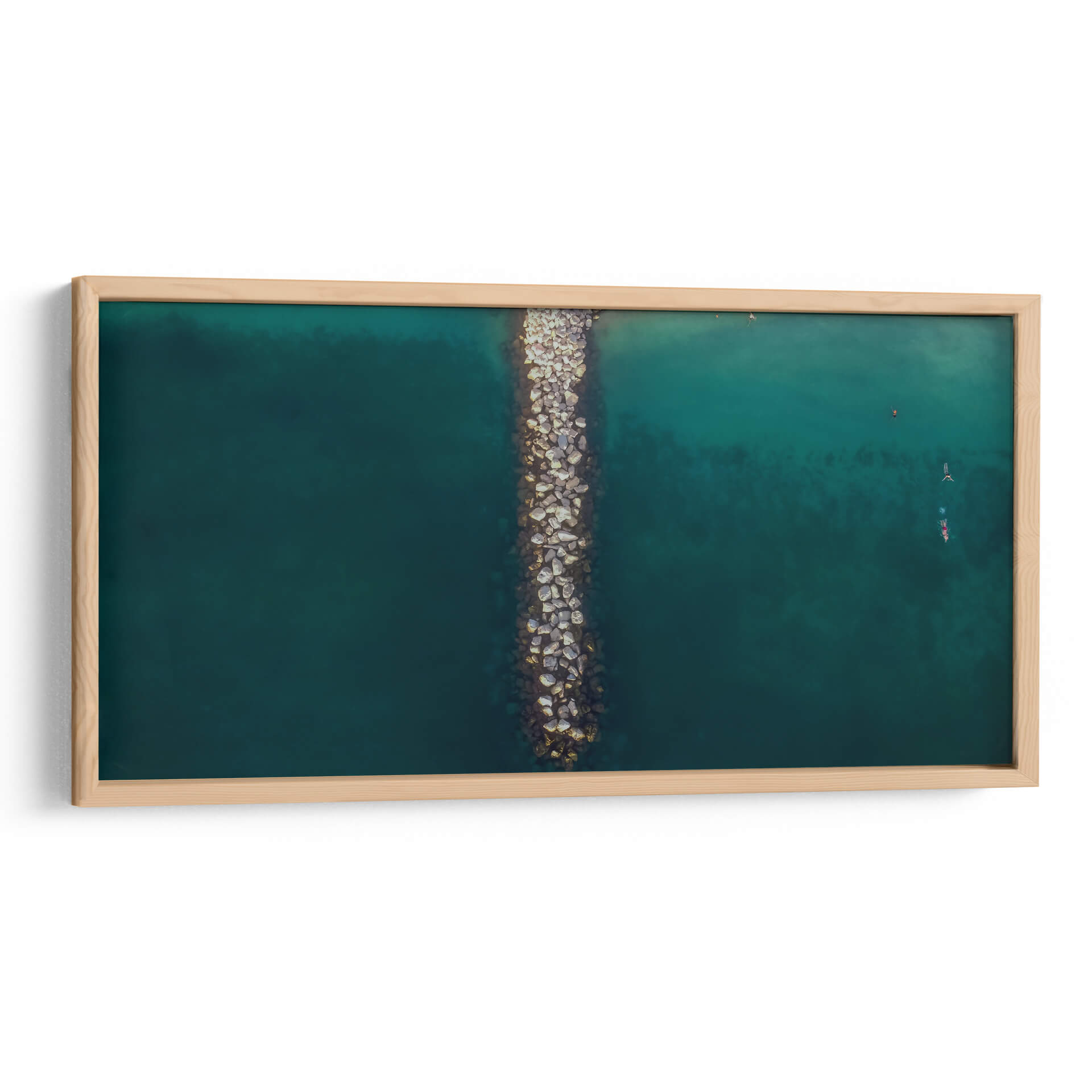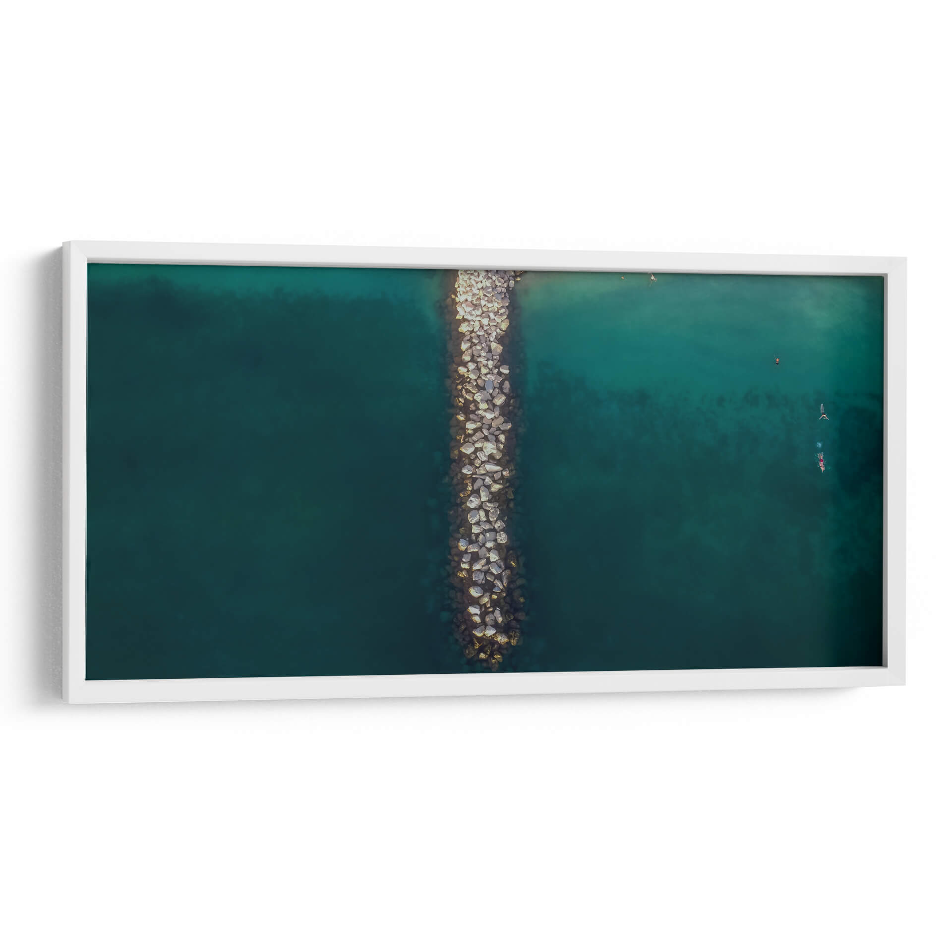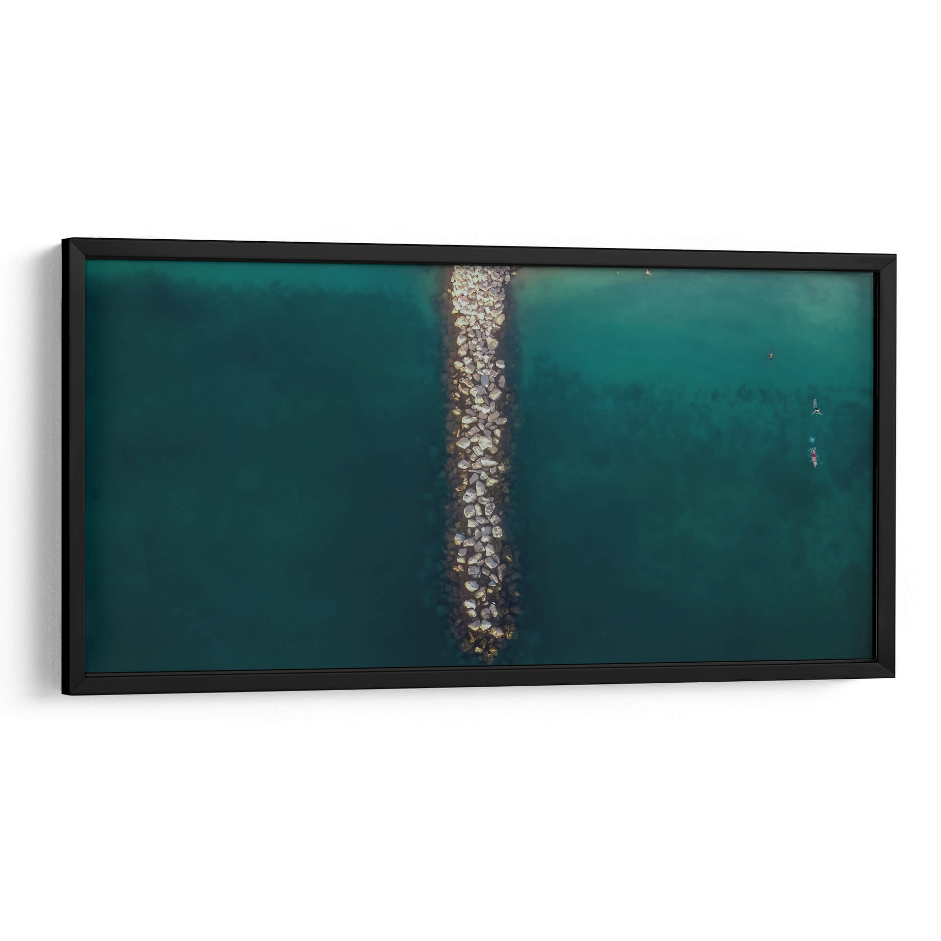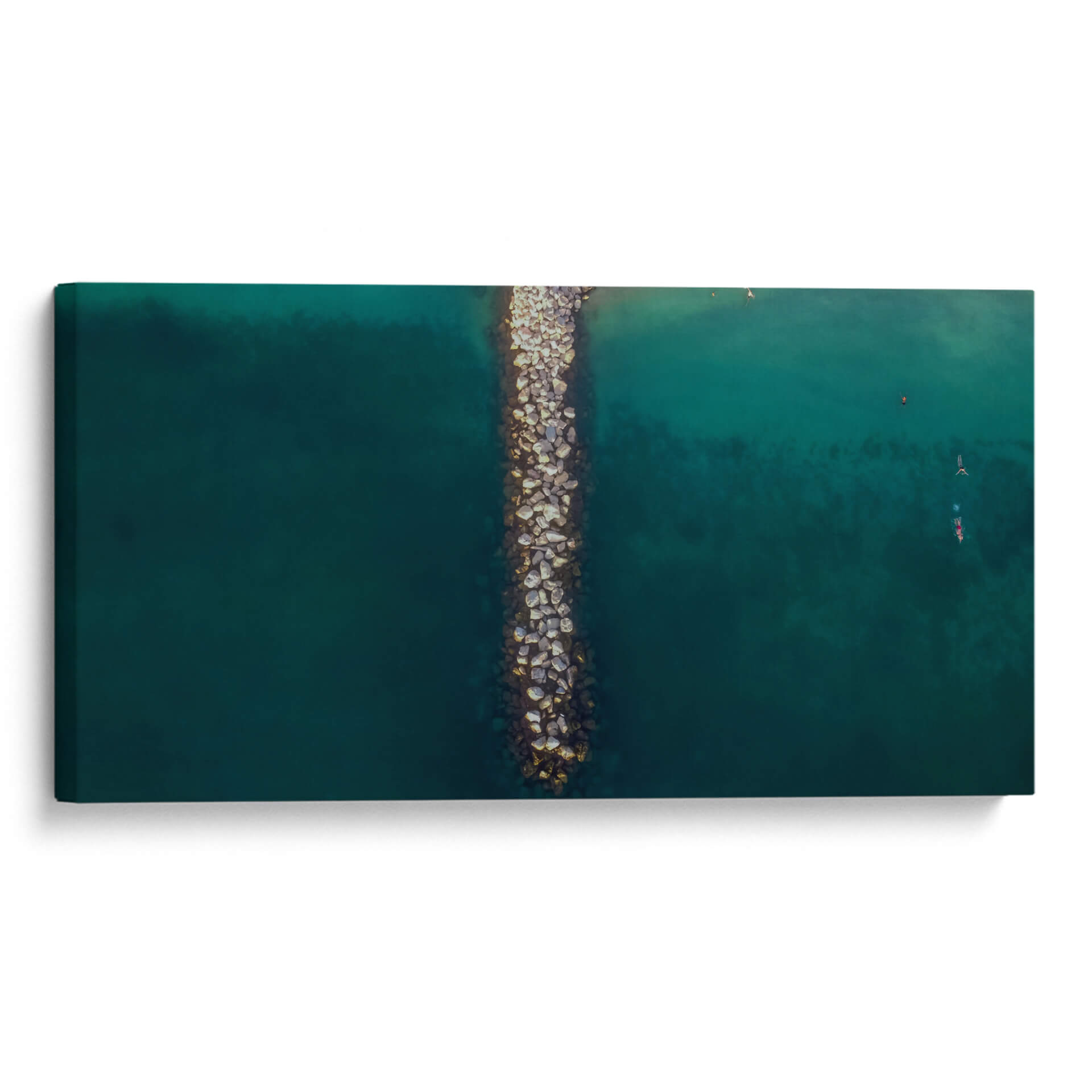 Sumérgete en la serenidad del océano con "Soller", una impresionante obra de arte fotográfico que captura la majestuosidad de un rompeolas emergiendo de aguas turquesas profundas. Desde una perspectiva aérea, la composición se centra en la textura rugosa de las rocas que forman un camino hacia el horizonte, contrastando con la calma aparente del mar. La paleta de colores, dominada por intensos azules y verdes marinos, evoca una sensación de paz y conexión con la naturaleza, ideal para cualquier espacio que busque transmitir tranquilidad y sofisticación. Pequeñas figuras humanas en la inmensidad del agua añaden una sutil escala y un toque de vitalidad, sugiriendo la libertad y el disfrute de la vida al aire libre. Este cuadro decorativo es perfecto para salones modernos, dormitorios serenos o incluso oficinas que deseen una ventana a la calma costera. "Soller" no es solo una imagen, es una invitación a la contemplación y al relax, un elemento decorativo que transformará tu hogar en un oasis de paz.