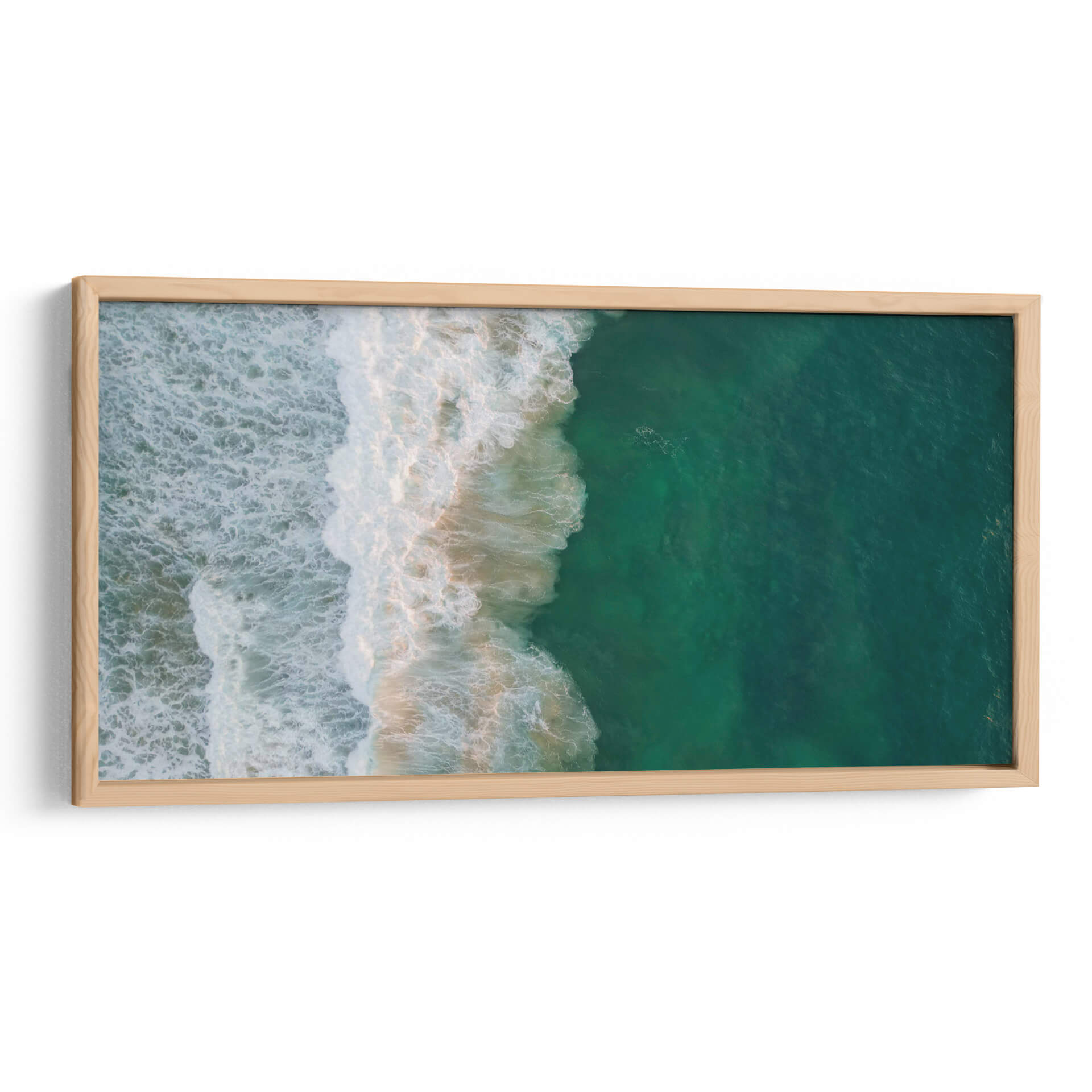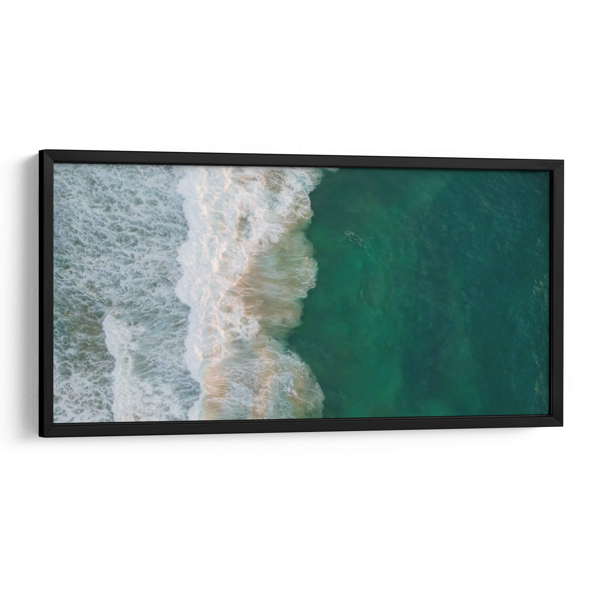 Sumérgete en la inmensidad y la serenidad del océano con "El Azul del Pacífico", una obra de arte visual que captura la dinámica fuerza de las olas al encontrarse con la costa. Desde una perspectiva aérea, este cuadro decorativo te transporta a la orilla, donde la espuma blanca y vibrante contrasta con las profundas y ricas tonalidades turquesas y esmeraldas del mar. La composición detallada de las olas, desde su cresta espumosa hasta la arena sutilmente visible, evoca una sensación de movimiento y energía natural, invitando a la contemplación de la belleza efímera del agua. El estilo fotográfico y la paleta de colores intensos pero armónicos hacen de esta pieza un elemento decorativo versátil, ideal para añadir un toque de frescura y calma a cualquier espacio. Ya sea en un salón moderno, un dormitorio que busca tranquilidad o una oficina que necesita inspiración, "El Azul del Pacífico" es una ventana abierta a la majestuosidad del mar, perfecta para quienes aprecian la naturaleza en su estado más puro y poderoso.