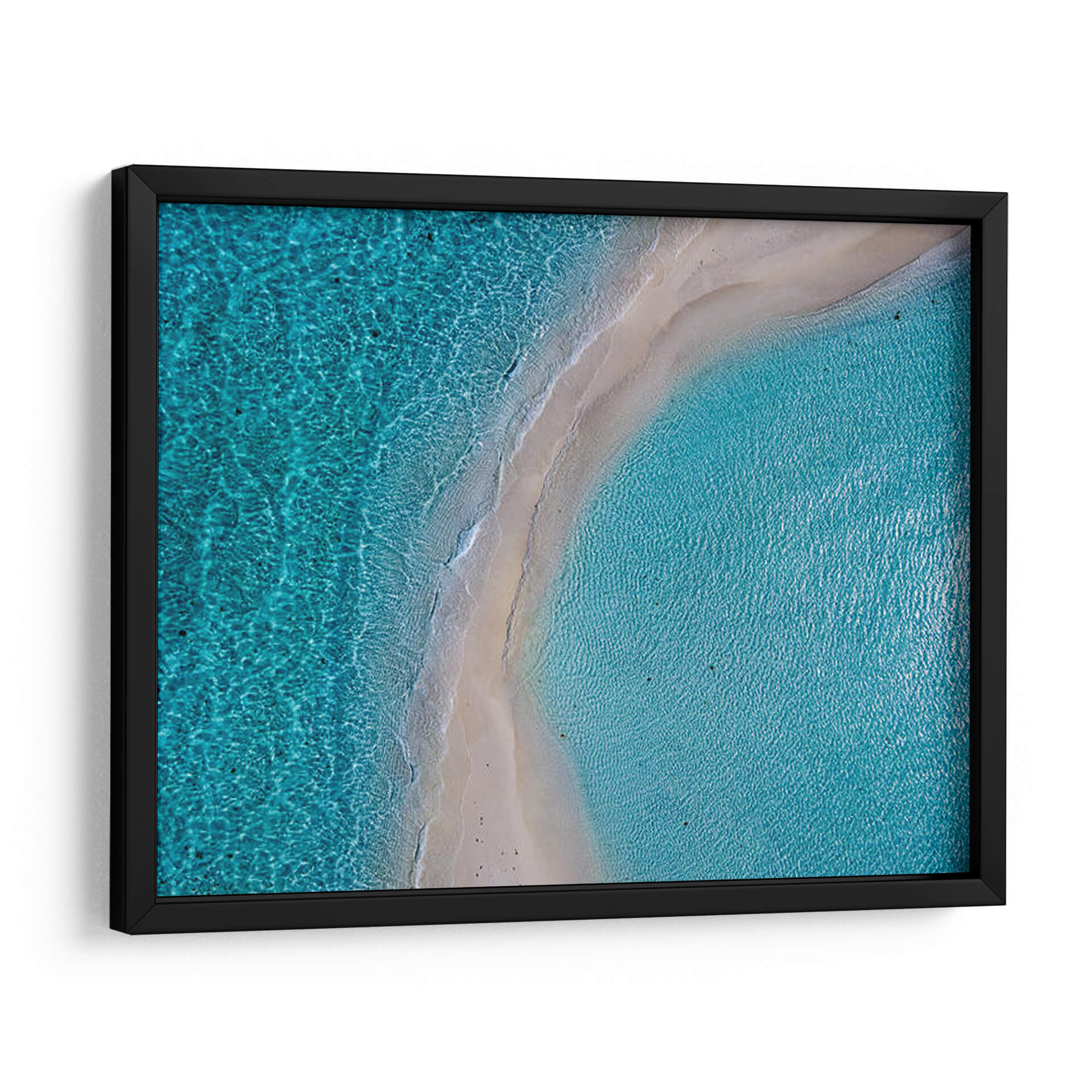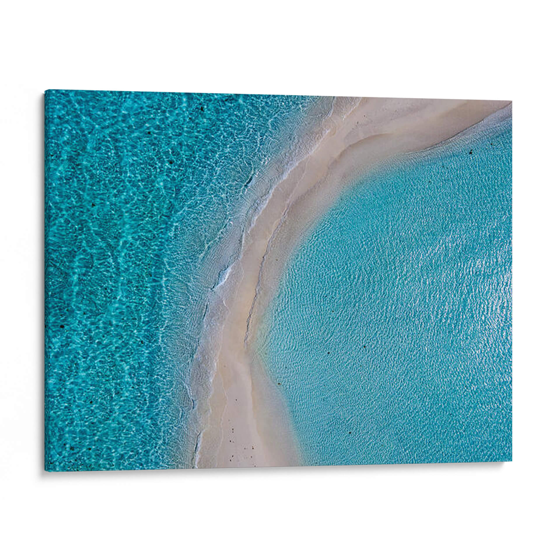 Sumérgete en la serenidad del océano con este impresionante cuadro decorativo 'No es Dos Aguas' de Cariteshop. Capturando la esencia de unas aguas cristalinas y una costa suave desde una perspectiva aérea, esta obra de arte evoca una profunda sensación de calma y escape. La paleta de colores, dominada por vibrantes tonos turquesa y azules profundos del mar, se complementa con la suave arena beige de la playa, creando un contraste visual armonioso y refrescante. La composición, que parece una vista de pájaro, ofrece una perspectiva única y cautivadora, invitando a la contemplación y al relax. Ideal para añadir un toque de naturaleza y tranquilidad a tu hogar u oficina, este cuadro es perfecto para espacios que buscan reflejar paz y belleza natural. Transforma cualquier habitación en un oasis de serenidad, transportando tu mente a días soleados y aguas tranquilas. El detalle intrincado de las olas y la claridad del agua invitan a perderse en su inmensidad. Una pieza de arte contemporáneo que atrae la mirada y eleva el ambiente.