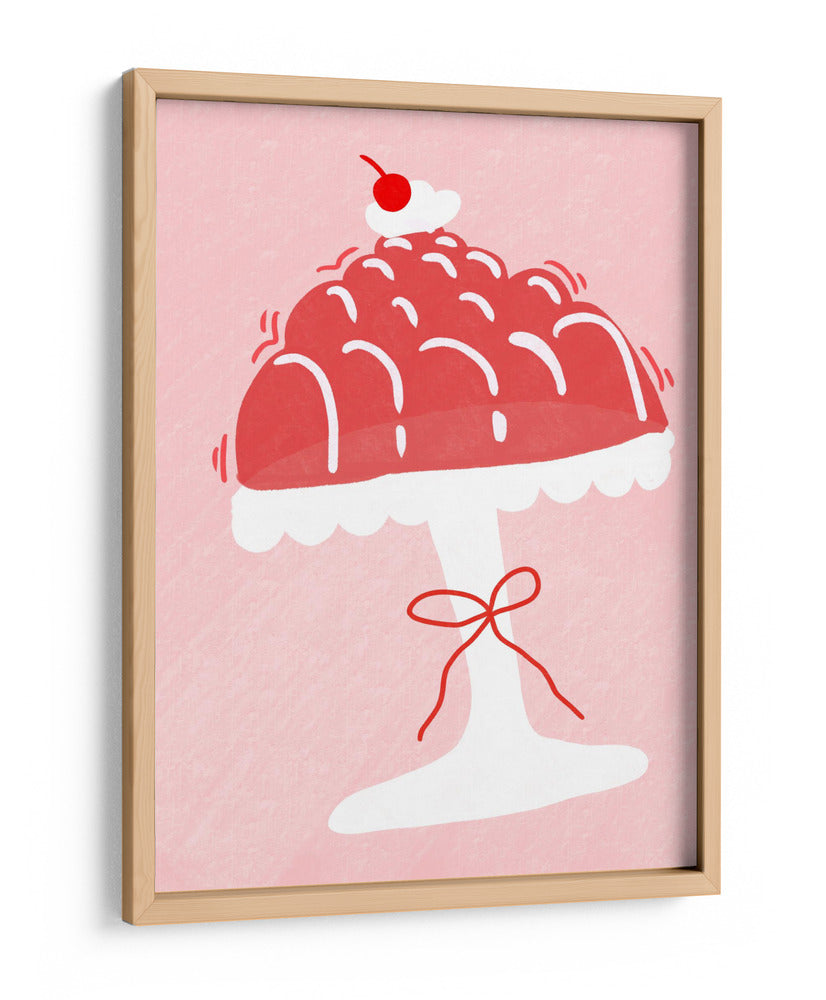 Celebra la dulzura y el encanto con "Delicia Tambaleante", una obra de arte vibrante y juguetona de Athene Fritsch. Este cuadro decorativo captura la esencia de un postre de gelatina rojo cereza, coronado con una guinda y una nube de crema, todo presentado sobre un elegante pedestal blanco adornado con un lazo rojo. La paleta de colores, dominada por tonos pastel de rosa y rojo intenso, evoca una sensación de alegría y nostalgia, perfecta para añadir un toque de diversión a cualquier espacio. El estilo gráfico y simplificado, con líneas definidas y una textura sutil, le confiere un aire moderno y accesible. "Delicia Tambaleante" es ideal para la cocina, el comedor, o incluso una habitación infantil, donde su diseño alegre y desenfadado puede inspirar sonrisas y conversaciones. Transforma tu hogar en un espacio lleno de color y optimismo con este encantador cuadro, una pieza que fusiona el arte contemporáneo con la dulzura de un capricho. Una adición deliciosa a tu colección de arte de pared.