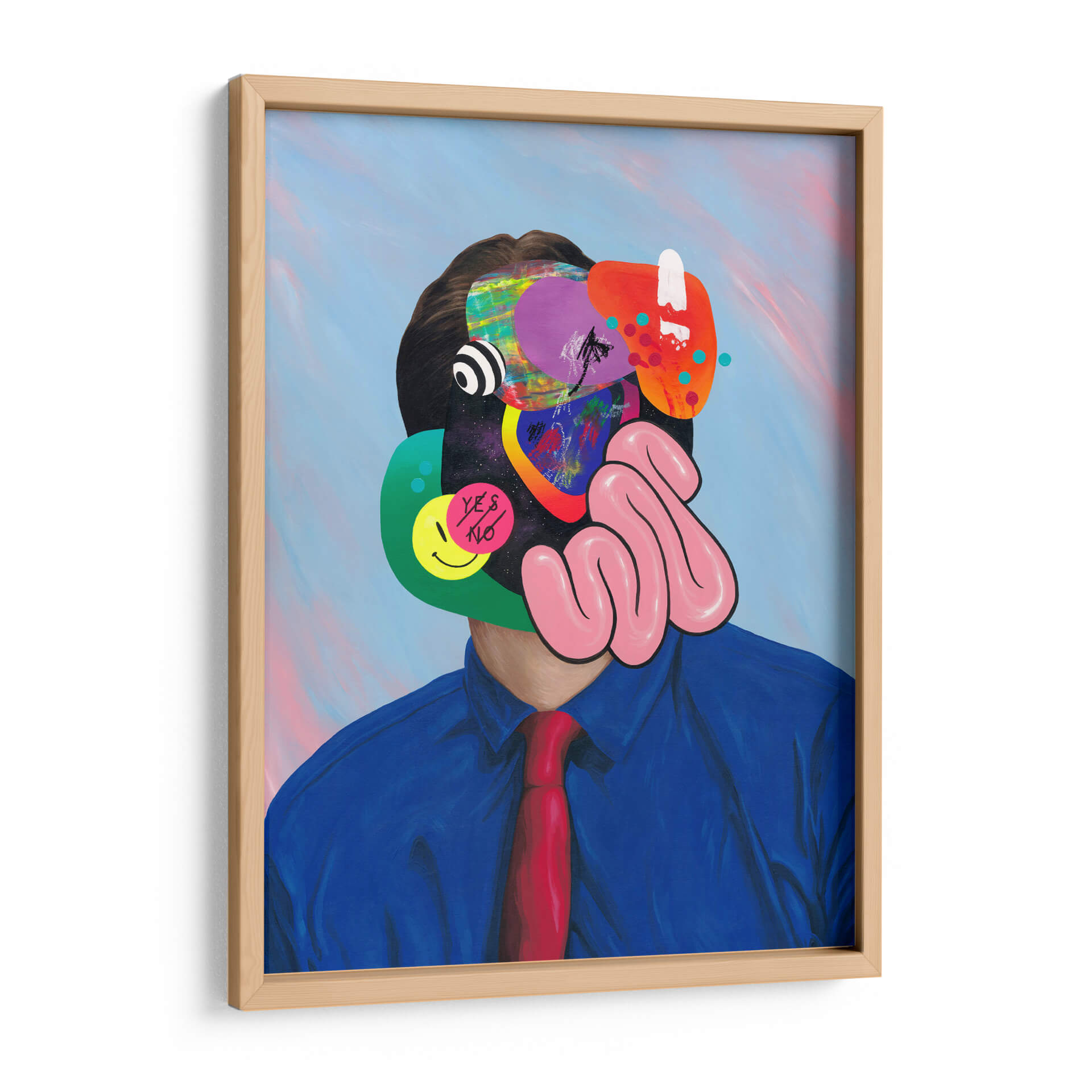 Sumérgete en la complejidad de la mente moderna con "Esforzándose por parecer ocupado", una obra de arte vibrante y conceptual que desafía las percepciones. Este cuadro decorativo presenta un retrato fragmentado, donde un rostro humano se disuelve en un torbellino de formas abstractas, colores audaces y texturas eclécticas. La paleta de colores, dominada por un cielo azul pastel salpicado de tonos rosados, contrasta con la explosión de colores primarios y secundarios que adornan la zona del rostro, creando una tensión visual fascinante. Las formas orgánicas y geométricas se entrelazan, sugiriendo un estado de constante actividad mental y la presión social por proyectar una imagen de productividad. El uso de elementos como un emoji sonriente con las palabras "YES NO" añaden una capa de ironía y reflexión sobre la dualidad de las decisiones y las apariencias. Ideal para espacios que buscan un toque de originalidad y conversación, como una sala de estar moderna, una oficina creativa o un estudio personal. Este cuadro es una pieza de arte contemporáneo que invita a la introspección y celebra la naturaleza multifacética de la experiencia humana.