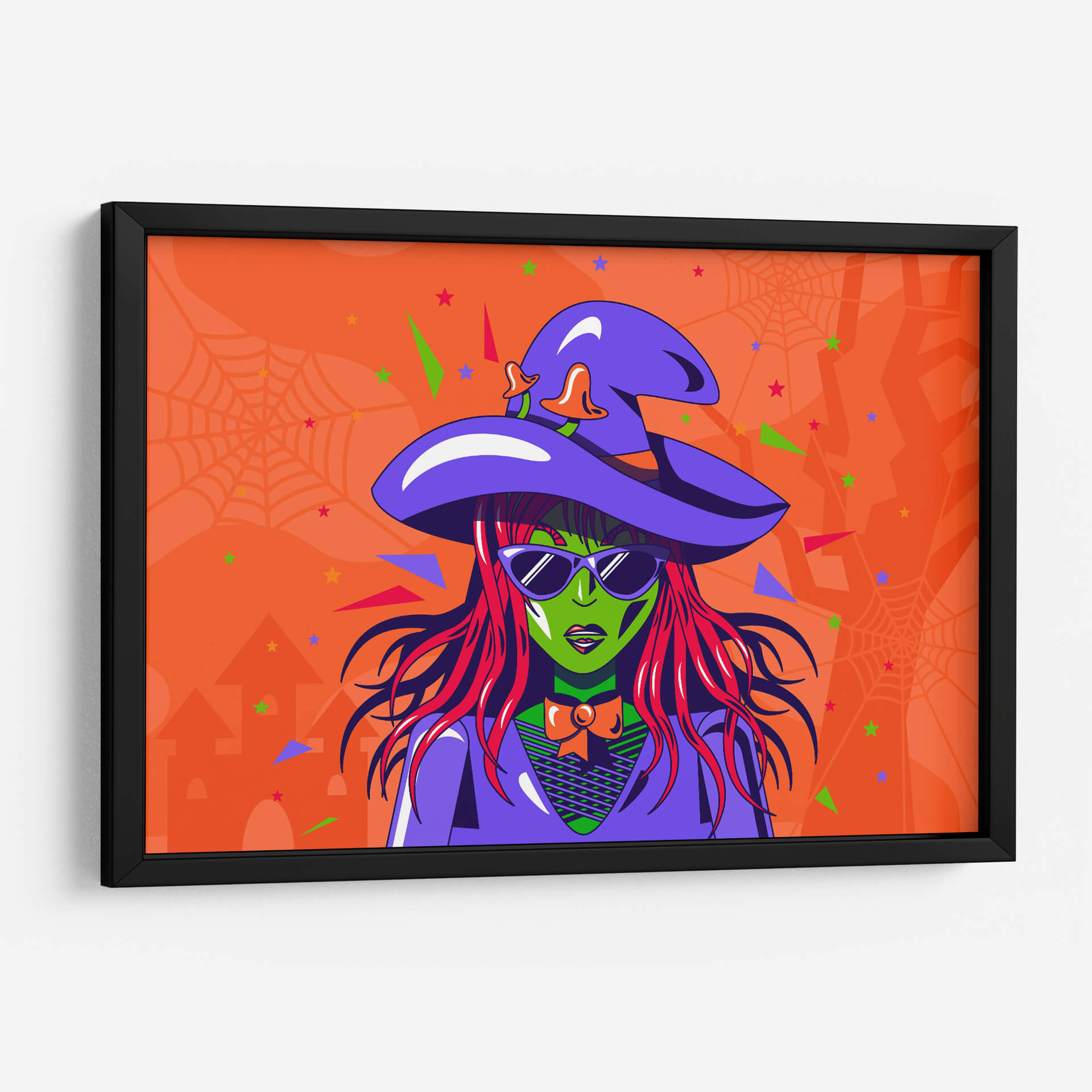 Sumérgete en el espíritu festivo con esta vibrante ilustración de personaje de bruja de Halloween, una obra de arte digital que irradia un estilo pop y audaz. La pieza presenta a una bruja moderna con gafas de sol y una icónica sombrero puntiagudo, todo ello en una paleta de colores naranja intenso, morado eléctrico y verde lima. Los detalles como las telarañas y las estrellas dispersas en el fondo añaden un toque lúdico y encantador, perfecto para la temporada de Halloween o para aquellos que aman un estilo gráfico atrevido durante todo el año. Su composición frontal y el uso de líneas definidas la convierten en un punto focal cautivador para cualquier espacio, desde una sala de estar moderna hasta un rincón de estudio creativo. Este cuadro decorativo es ideal para inyectar personalidad y un toque de misterio divertido en tu hogar u oficina. Es una pieza versátil que celebra la iconografía de Halloween con un giro contemporáneo, atrayendo a quienes buscan arte que sea a la vez festivo y chic. Añade un toque de magia y color a tus paredes con esta representación única y llena de carácter.