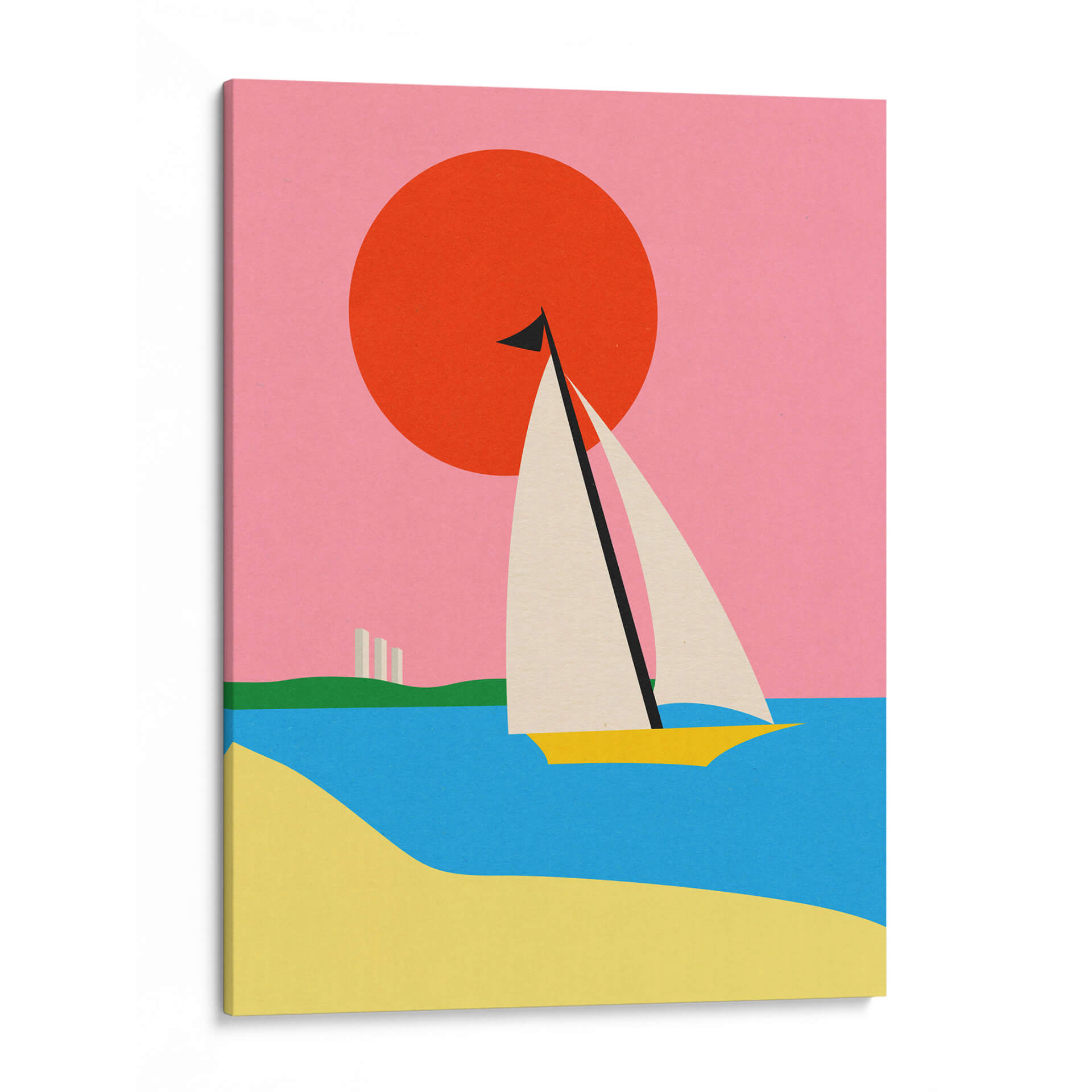 Sumérgete en la serena belleza del "Mar Báltico", una obra de arte que captura la esencia de un día tranquilo junto al mar con un estilo artístico distintivo. Esta pieza visualmente cautivadora presenta un velero solitario navegando en aguas azules vibrantes, bajo un cielo rosa pálido coronado por un sol naranja intenso y prominente. La composición minimalista, con una costa verde y una playa de arena amarilla, crea un contraste de colores audaz y moderno. La obra evoca una sensación de paz, aventura y la simplicidad de la vida costera. Su estilo gráfico y la paleta de colores vibrantes la convierten en un acento perfecto para cualquier espacio moderno, ya sea una sala de estar, un dormitorio o una oficina. "Mar Báltico" no es solo un cuadro decorativo, es una invitación a la contemplación, ideal para quienes buscan añadir un toque de color y serenidad a su entorno. Transforma tu hogar con este cuadro decorativo que inspira calma y evoca la libertad del océano. Una elección perfecta para amantes del arte que aprecian la estética contemporánea y los paisajes evocadores.