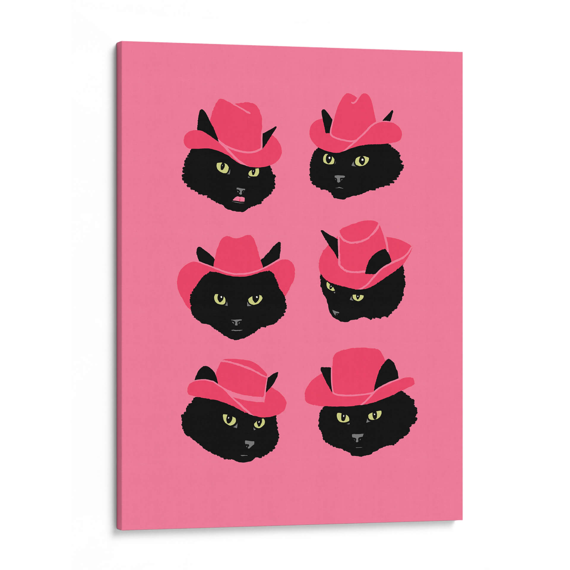 Embárcate en un viaje de estilo y personalidad con "Marcy la Gata Vaquera", una obra de arte digital vibrante y cautivadora. Este cuadro decorativo presenta una composición audaz y juguetona de seis retratos de gatos negros, cada uno ataviado con un sombrero vaquero rosa fucsia. El contraste entre el negro profundo de los felinos y el rosa intenso del fondo y los sombreros crea una paleta de colores llamativa y moderna que irradia energía y un toque de irreverencia. Las expresiones de los gatos varían desde la picardía hasta la curiosidad, añadiendo una capa de carácter individual a cada uno. El estilo es decididamente pop y contemporáneo, con líneas limpias y una estética minimalista que permite que la imagen principal resalte con fuerza. Esta pieza es perfecta para añadir un punto focal audaz y lleno de alegría a cualquier espacio, ya sea una sala de estar, una oficina creativa o incluso un dormitorio con un toque divertido. "Marcy la Gata Vaquera" es ideal para quienes buscan una decoración de pared que desafíe lo convencional, que sea un tema de conversación y que infunda un ambiente de optimismo y diversión.
