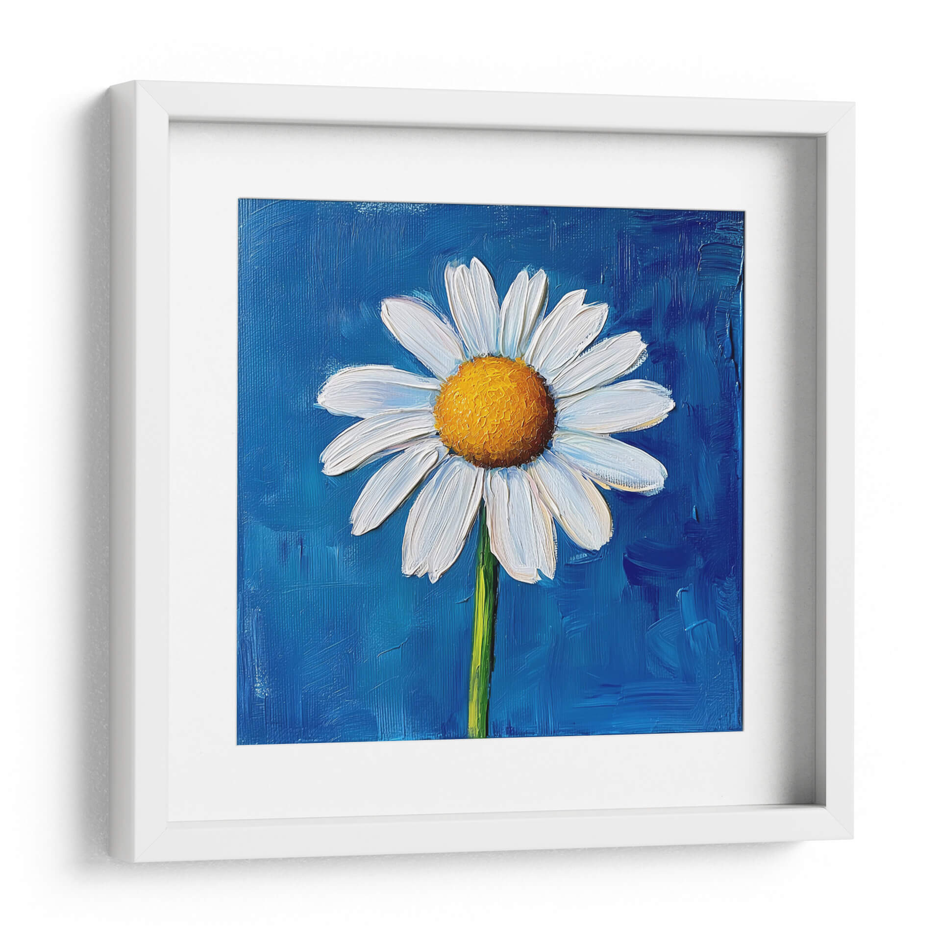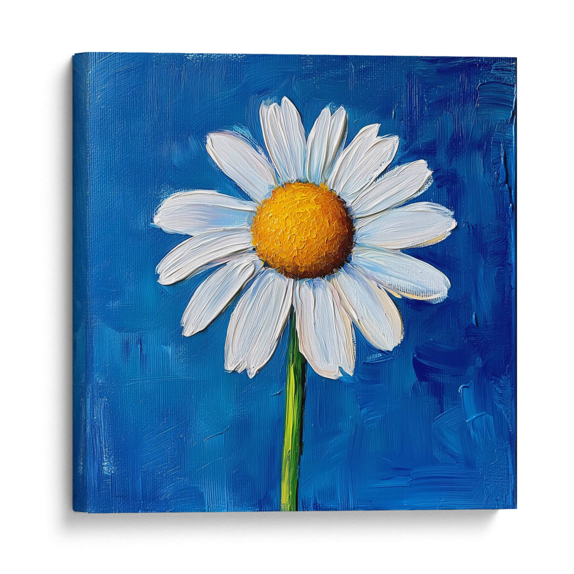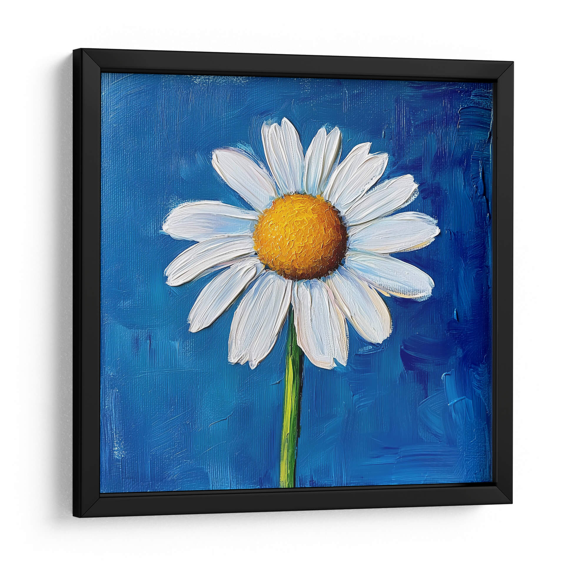 Sumérgete en la vibrante simplicidad de "Margarita", una obra de arte que captura la esencia de una flor icónica con una audacia cromática cautivadora. El artista Dav Madrid presenta una margarita blanca de pétalos texturizados y un centro dorado, emergente sobre un fondo de azules intensos y dinámicos. La pincelada empastada y visible confiere a la obra una cualidad táctil y expresiva, evocando la técnica del impresionismo moderno con un toque contemporáneo. El contraste entre la pureza del blanco de la flor y la profundidad del azul crea una composición visualmente impactante, llena de energía y serenidad a la vez. Este cuadro decorativo es ideal para infundir vitalidad y un toque de naturaleza estilizada a cualquier espacio, ya sea un salón moderno, una oficina inspiradora o un dormitorio que busque un acento de color sofisticado. "Margarita" no es solo una representación floral, sino una explosión de color y emoción que transforma cualquier pared en un lienzo de arte vivo.