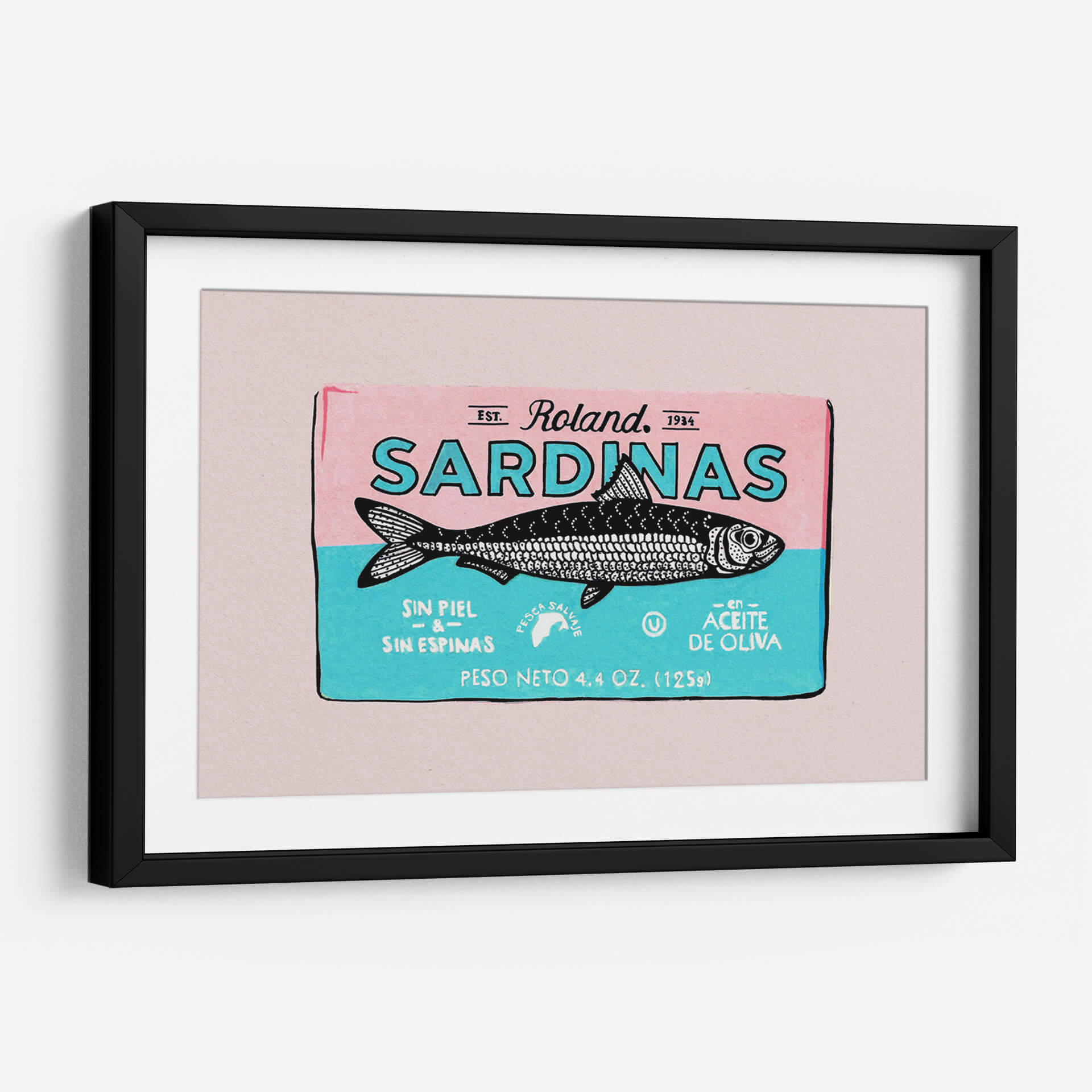 Este cuadro decorativo, titulado "Roland Sardinas" por Studio Mandariini, es una pieza vibrante y nostálgica que evoca la estética retro de las latas de conservas vintage. La obra presenta una ilustración estilizada de una lata de sardinas, con la sardina principal destacada en tonos oscuros sobre un fondo dividido en rosa pastel y azul turquesa. Los detalles en blanco y negro, como las escamas de la sardina y el texto descriptivo "SIN PIEL & SIN ESPINAS" y "PESCA SALVAJE", añaden un toque de autenticidad y encanto. La tipografía, con la palabra "SARDINAS" en letras mayúsculas y un diseño llamativo, junto a "EST. Roland. 1934", transporta al espectador a una época pasada. Esta obra de arte es ideal para cocinas, comedores o espacios temáticos que busquen un toque de humor, originalidad y un aire vintage. Su paleta de colores pop, con contrastes definidos, la convierte en un punto focal atractivo y conversacional, perfecta para añadir personalidad a cualquier ambiente moderno o ecléctico. "Roland Sardinas" es una pieza que combina arte pop con un guiño a la cultura culinaria, ofreciendo una decoración única y llena de carácter.