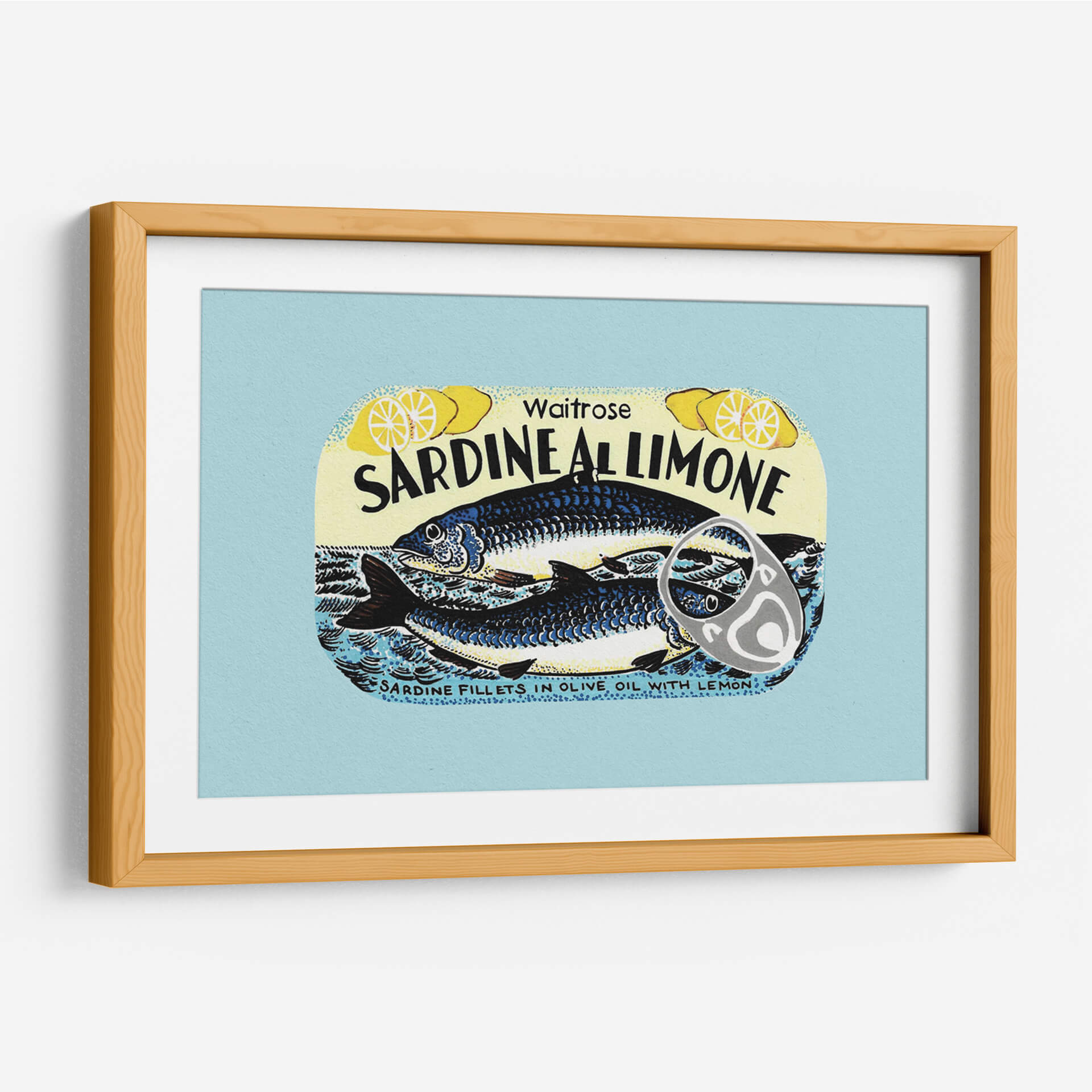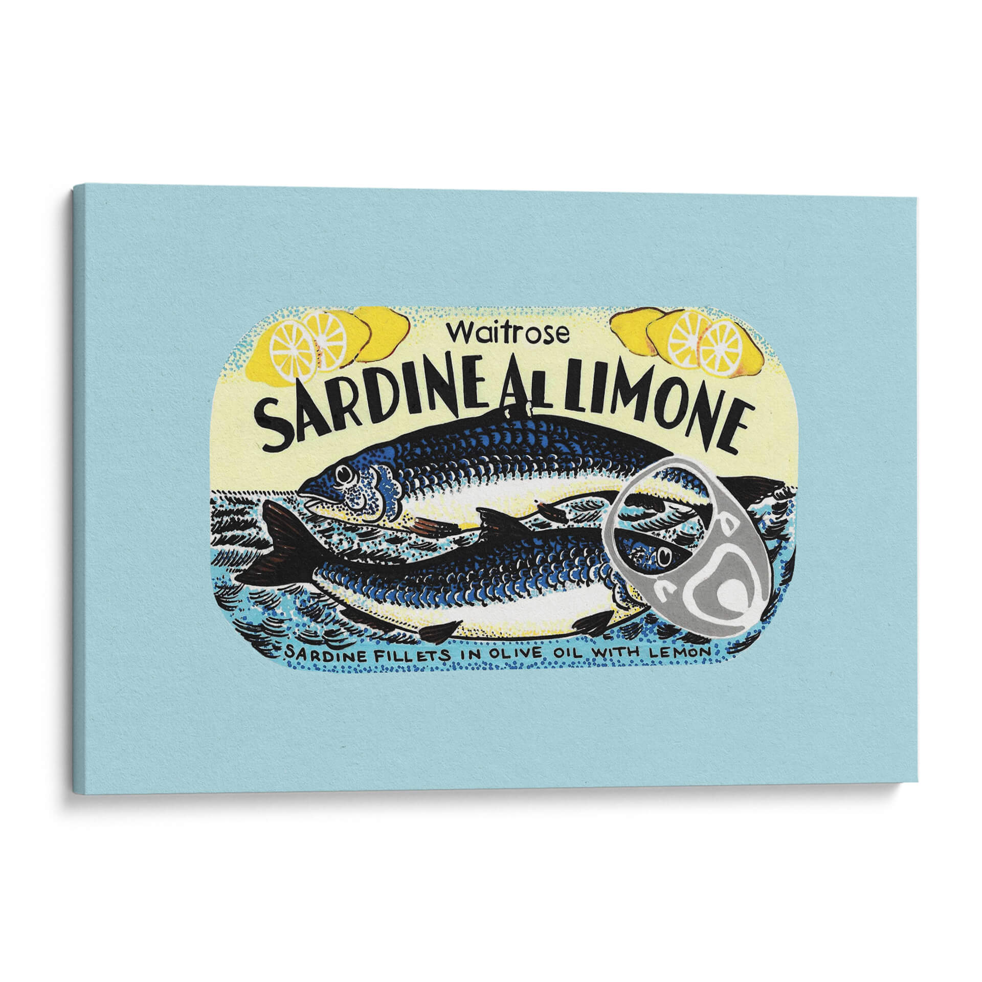 Transforma tu espacio con el vibrante cuadro decorativo "Sardina Al Limone" de Studio Mandariini. Esta obra de arte captura la esencia de una lata de conservas retro, presentando dos sardinas estilizadas nadando en un mar azul dinámico, con rodajas de limón que aportan un toque cítrico y fresco. La paleta de colores, dominada por azules profundos, amarillos brillantes y toques de negro y blanco, crea un contraste audaz y una atmósfera alegre y nostálgica. El estilo distintivo de Studio Mandariini, con líneas definidas y una composición que recuerda a ilustraciones clásicas, aporta un encanto único a cualquier pared. Este cuadro decorativo es ideal para cocinas, comedores o cualquier espacio que busque un acento de color y personalidad. Su diseño retro y la temática marina lo convierten en una pieza de conversación, perfecta para añadir un toque de originalidad y buen humor a tu decoración. "Sardina Al Limone" no es solo arte, es una invitación a disfrutar de la vida con estilo y sabor.