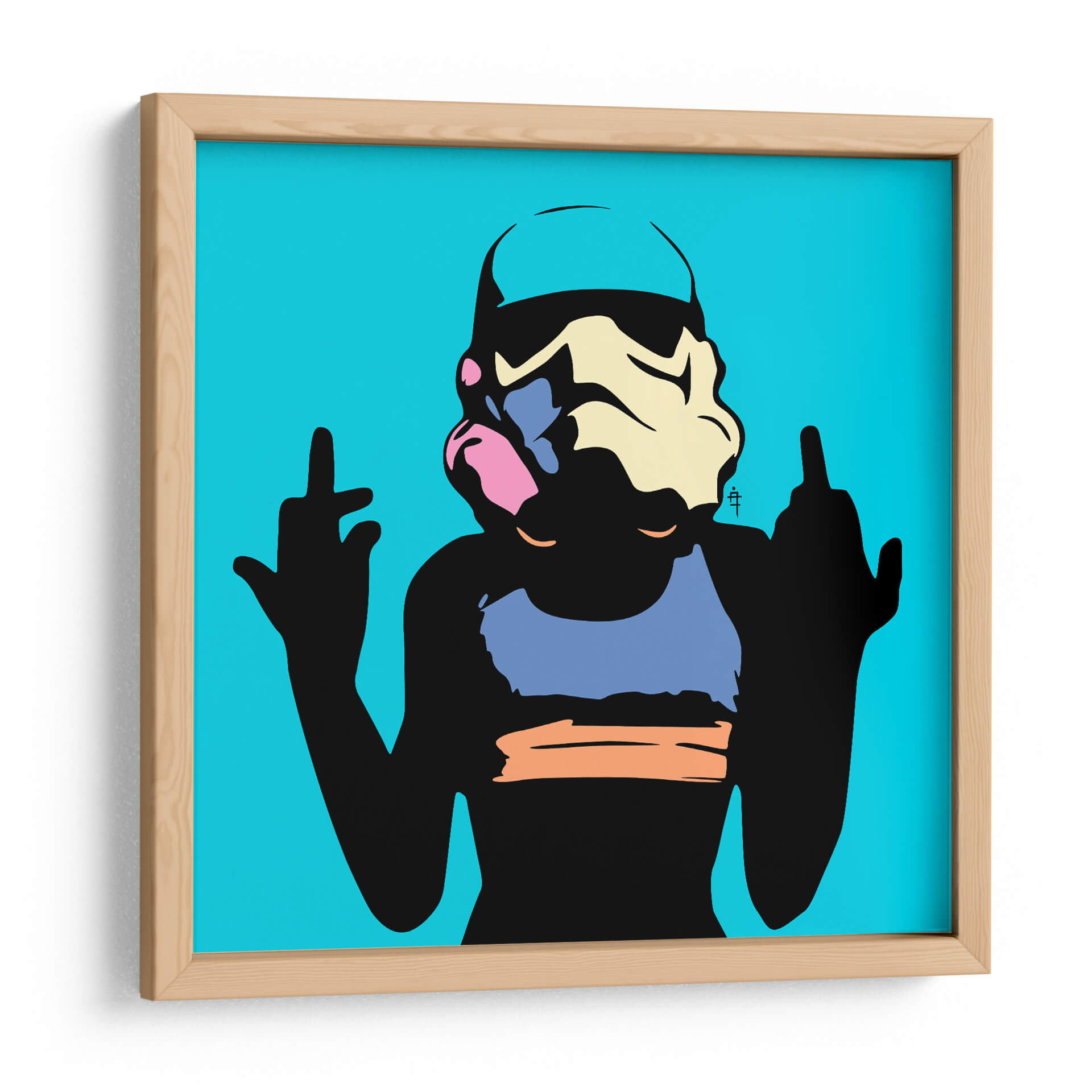 Captura la esencia de la cultura pop con "StormChick B", una obra de arte contemporáneo que desafía las convenciones. Esta pieza vibrante presenta una figura audaz en silueta negra, adornada con toques de colores vivos como azul, rosa y amarillo pálido, evocando una estética pop art moderna y atrevida. El fondo de un azul eléctrico intenso contrasta con la figura central, creando una composición dinámica y llamativa que sin duda se convertirá en el punto focal de cualquier habitación. El estilo gráfico y simplificado, con líneas definidas y bloques de color, recuerda a las obras de artistas icónicos del pop art, pero con un toque contemporáneo y rebelde. "StormChick B" es perfecta para espacios que buscan una declaración audaz y un aire de irreverencia juvenil. Imagina esta obra en una sala de estar moderna, un estudio creativo o incluso un dormitorio con carácter, añadiendo un estallido de color y personalidad. Es más que una imagen; es una actitud, una pieza que invita a la conversación y celebra la individualidad. Ideal para quienes aprecian el arte que combina influencias de la cultura popular con una sensibilidad estética única y un mensaje subyacente de empoderamiento y desafío.